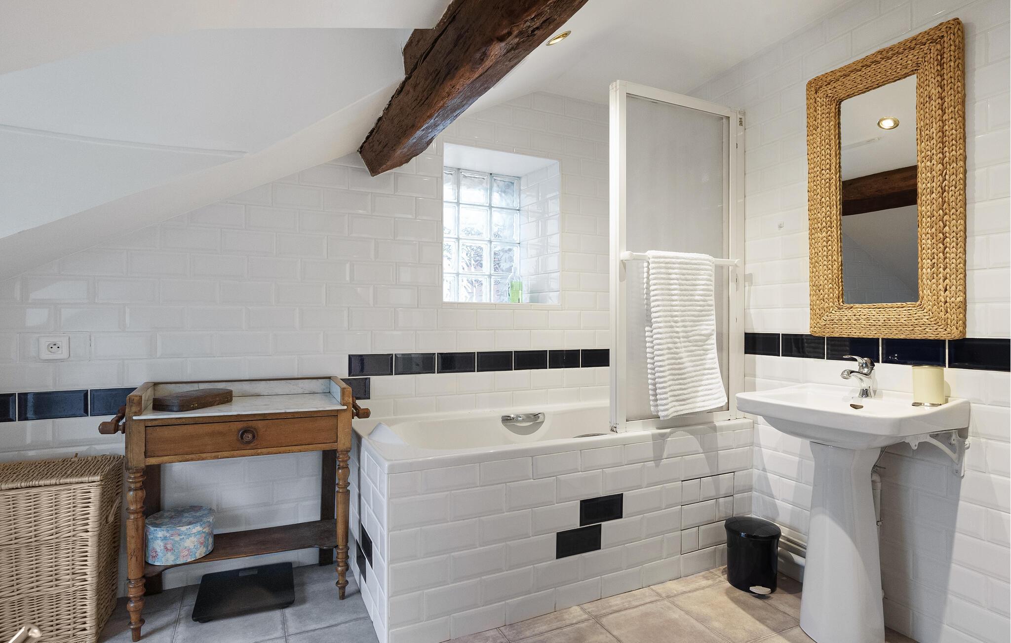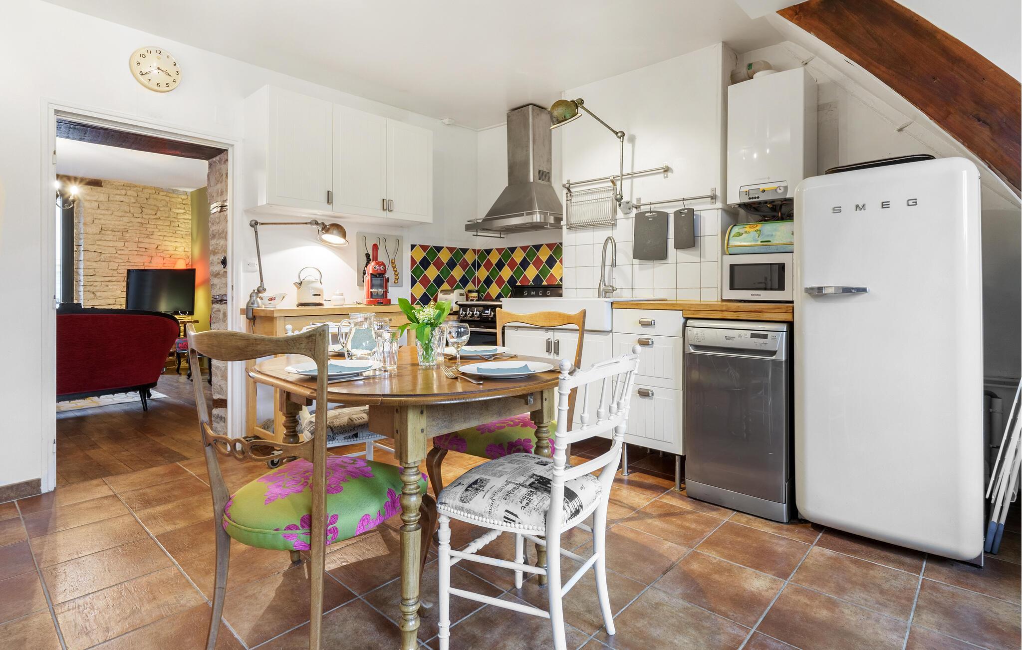 Nyt en fredelig ferie i dette koselige og sjarmerende feriehuset. I to etasjer kan du oppdage kjærlig innredede og velutstyrte rom som raskt føles som hjemme. Enten dere lager mat sammen på kjøkkenet, tar et boblebad på badet eller ser på film i stuen, byr dette huset på mange fine kroker og områder der dere kan føle dere som hjemme.