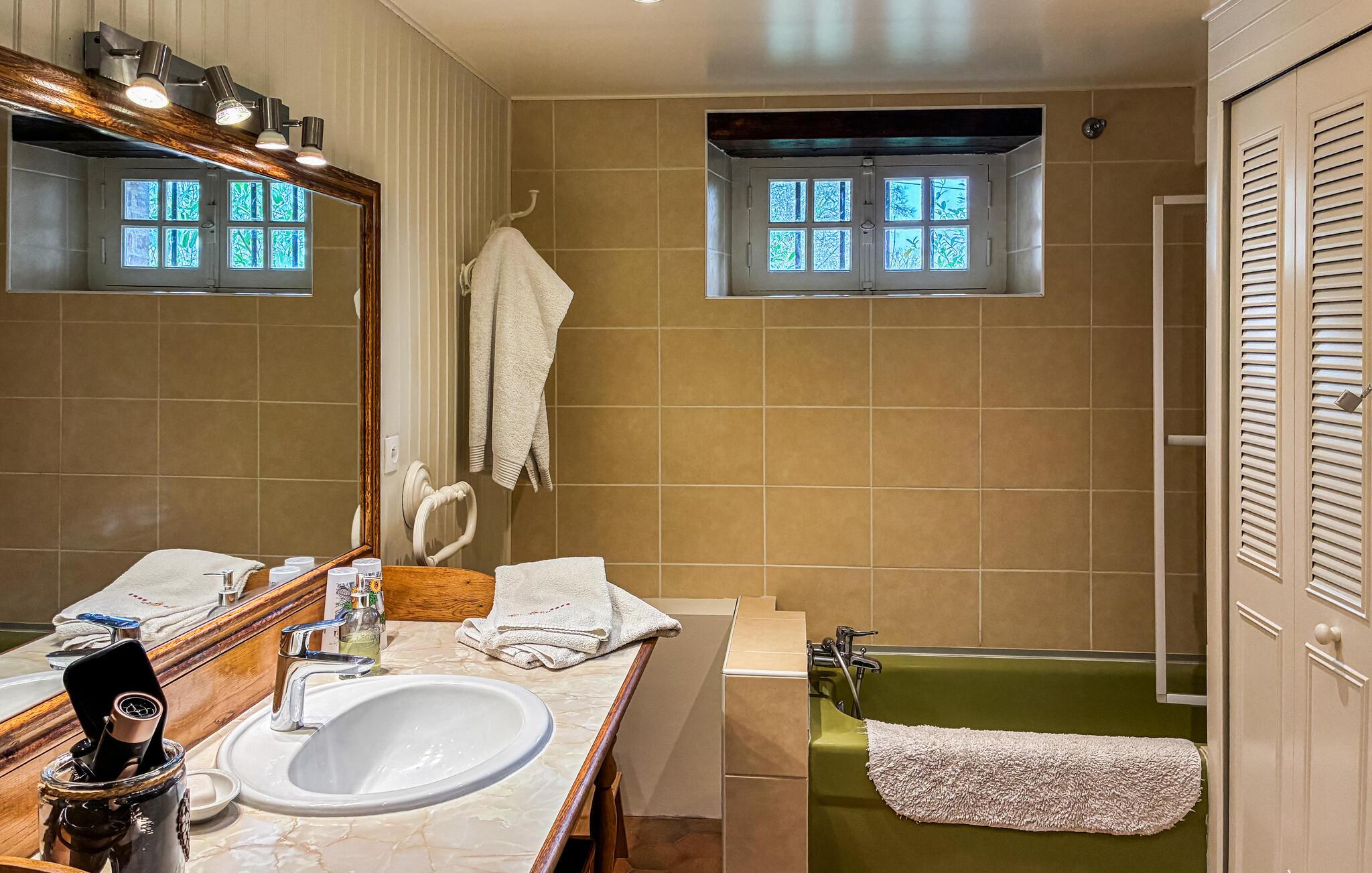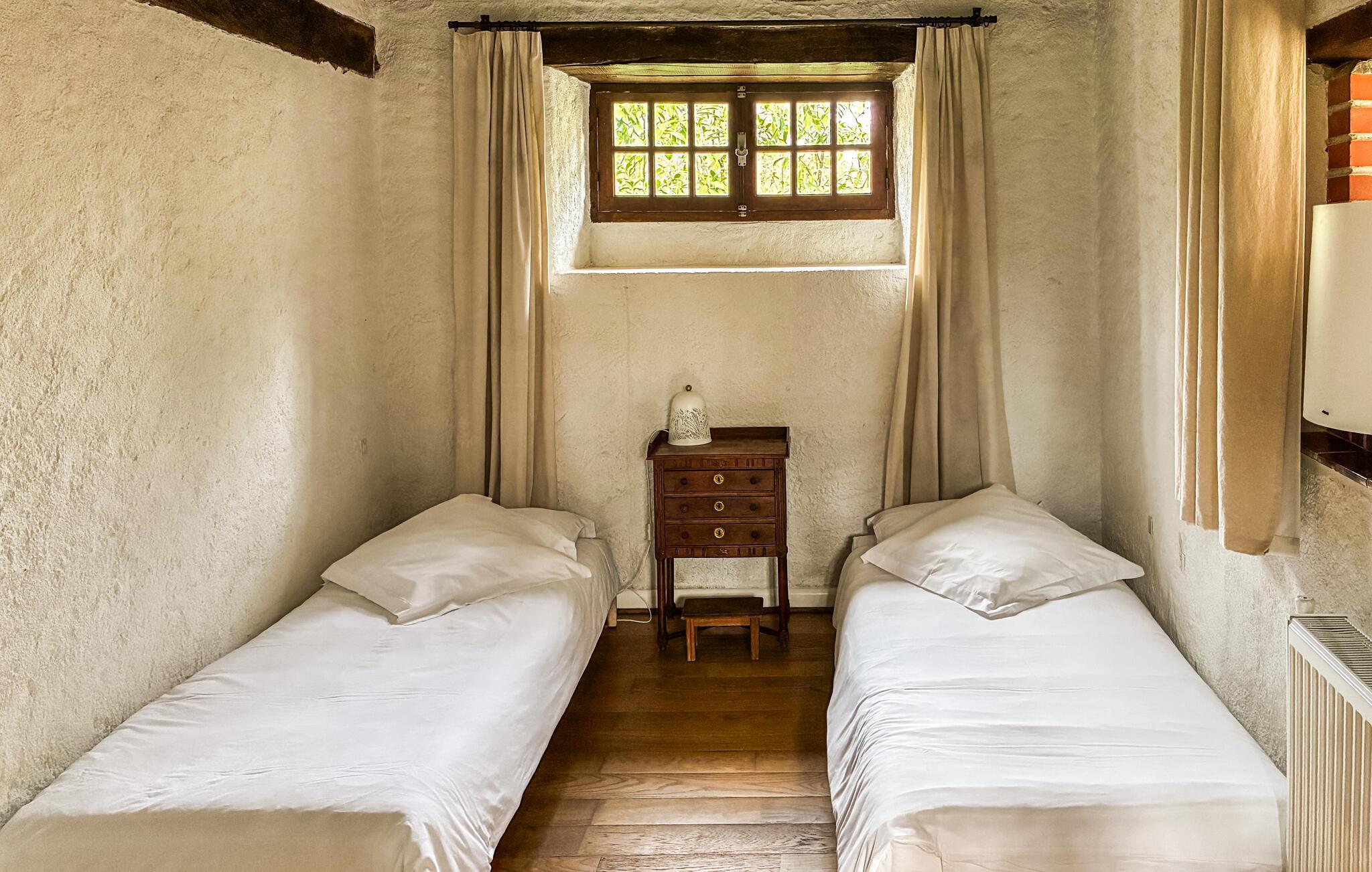 Dette sjarmerende feriehuset med privat basseng er den ideelle basen for en uforglemmelig ferie i Loiredalen. Det er svært romslig, komfortabelt og ønsker gjestene velkommen 22 kilometer fra Vendôme. I tillegg til bassenget kan du også se frem til en romslig, grønn hage samt koselige grillmuligheter og massevis av avslapning på terrassen. Regionen har en eksepsjonell kulturarv. Verdt å se i Vendôme er slottet, den gotiske Treenighetskirken og Porte Saint-Georges, en slående relikvie fra de tidligere byfestningene. Musée du Vendôme, som ligger i en del av klosterkirken, er også verdt et besøk. Litt lenger unna ligger Blois, som tiltrekker seg besøkende med sitt vakre slott, Saint-Louis-katedralen og parken Jardins de l'Ancien Evêché. I Maison de la Magie, et museum dedikert til tryllekunstneren Robert Houdin, får du og barna dine en innføring i magiens historie, og det naturhistoriske museet i Blois er også en opplevelse for både store og små. Det spektakulære Château de Chambord, som står på UNESCOs verdensarvliste, er et must å se. Bare noen få kilometer fra feriehuset venter en kuriositet: Le Puits qui parle, eller fontenen som snakker.