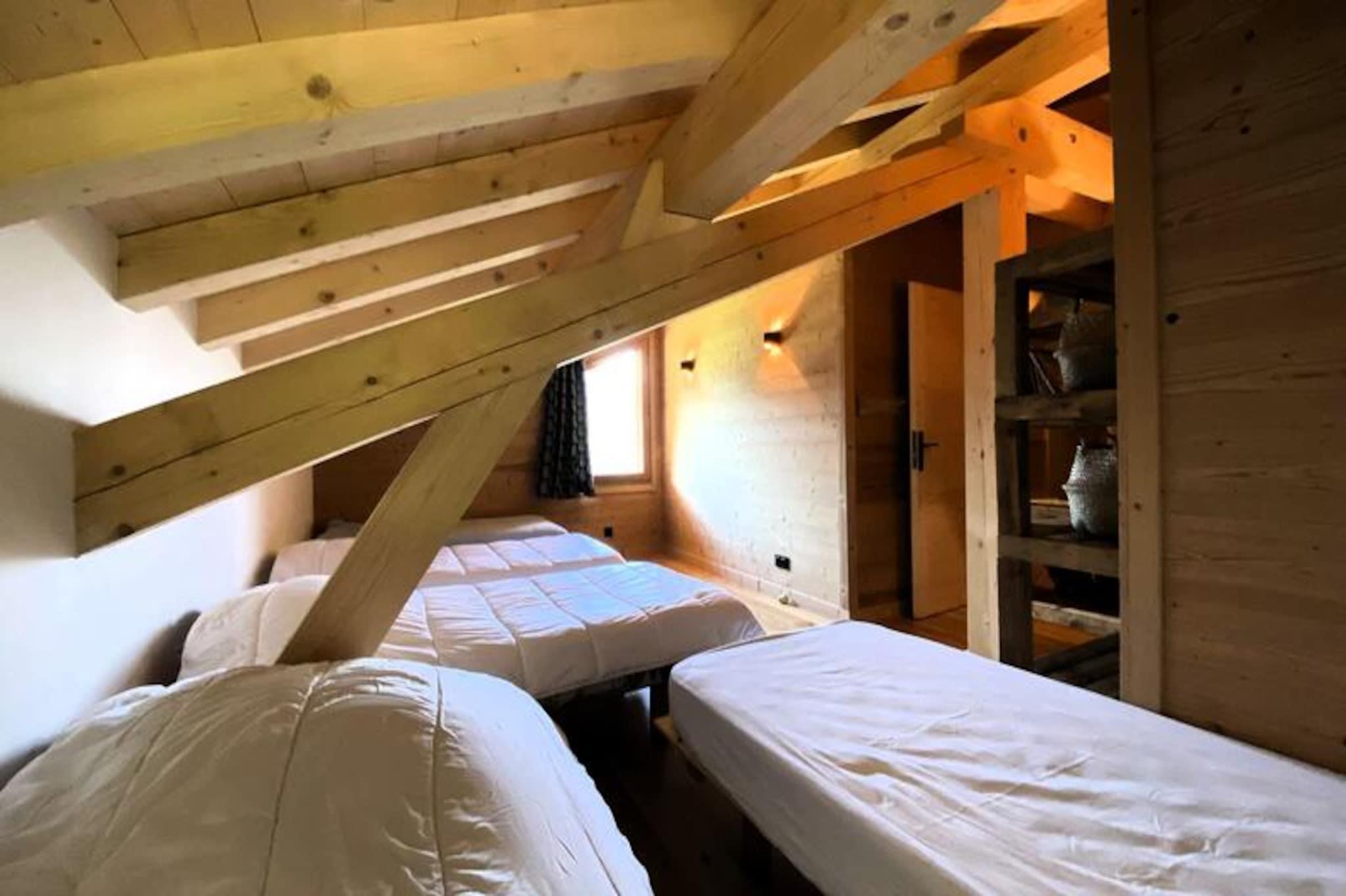 I hjertet av de franske Alpene tilbyr denne sjarmerende hytta et idyllisk tilfluktssted for familier og grupper som søker både eventyr og avslapning. Omgitt av fantastisk fjellutsikt kombinerer eiendommen rustikk alpin sjarm med moderne komfort, noe som gjør den til den perfekte basen for din neste ferie. Enten du besøker om vinteren for å oppleve verdensklasse ski eller om sommeren for å oppleve de endeløse tur- og sykkelstiene, lover denne hytta et uforglemmelig opphold. Hytta strekker seg over tre romslige etasjer og er 147 m² stor, og har komfortabel plass til opptil 14 gjester. Første etasje har et skirom, et queen-size soverom, et barnerom med fire enkeltsenger, et bad med dusj og et separat toalett. I første etasje finner du en innbydende stue på 60 m² med en koselig pelletsovn, en spisestue og et fullt utstyrt kjøkken som åpner ut mot en balkong og en overbygd terrasse på 25 m². Toppetasjen har et barnerom med fem enkeltsenger, to queen-size soverom (ett med eget bad), et ekstra bad og et separat toalett. Moderne fasiliteter som Wi-Fi, Chromecast og gulvvarme sikrer et komfortabelt og praktisk opphold. Hytta har også en overbygd garasje med stikkontakt for én bil, et ski-/sykkelrom og en asfaltert parkeringsplass for tre biler, som ryddes for snø om vinteren. I nærheten finner du enkel tilgang til skibakker, sjarmerende alpelandsbyer og lokale spisesteder. Om sommeren kan du utforske det frodige landskapet, krystallklare innsjøene og de pulserende fjellfestivalene. Enten du er her for spenningen i bakkene eller roen i fjellene, tilbyr denne hytta den perfekte blandingen av luksus og natur for en virkelig minneverdig alpinferie.