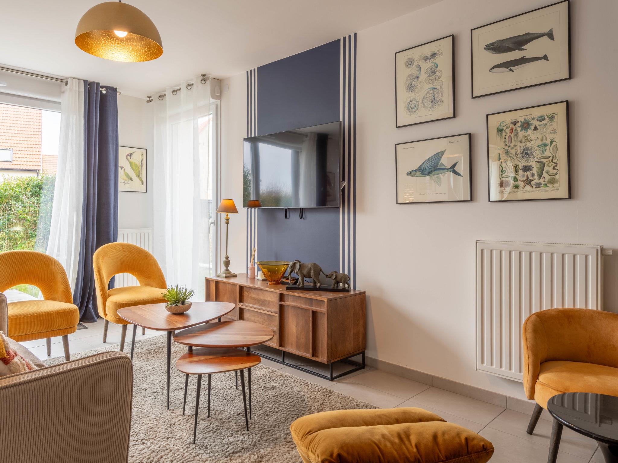 Cosy, comfortable house terraced. In the resort, 300 m from the centre, residential area (villas), 1.8 km from the sea, 1.8 km from the beach. Private: natural state property 100 m2 (fenced). Supermarket 1 km, shopping centre 1 km, restaurant 300 m, bar 1 km, bakery 300 m, bus stop 1.5 km, sandy beach "La baie d'Authie et les Phoques" 1 km. Golf course (18 hole) 3 km, sailing school 600 m, tennis 500 m, riding stable 300 m. Nearby attractions: Casino 1 km, Fort mahon 18 km, Boulogne sur mer 50 km, Cap blanc nez 75 km, Le Touquet 17 km, Amiens 75 km.
