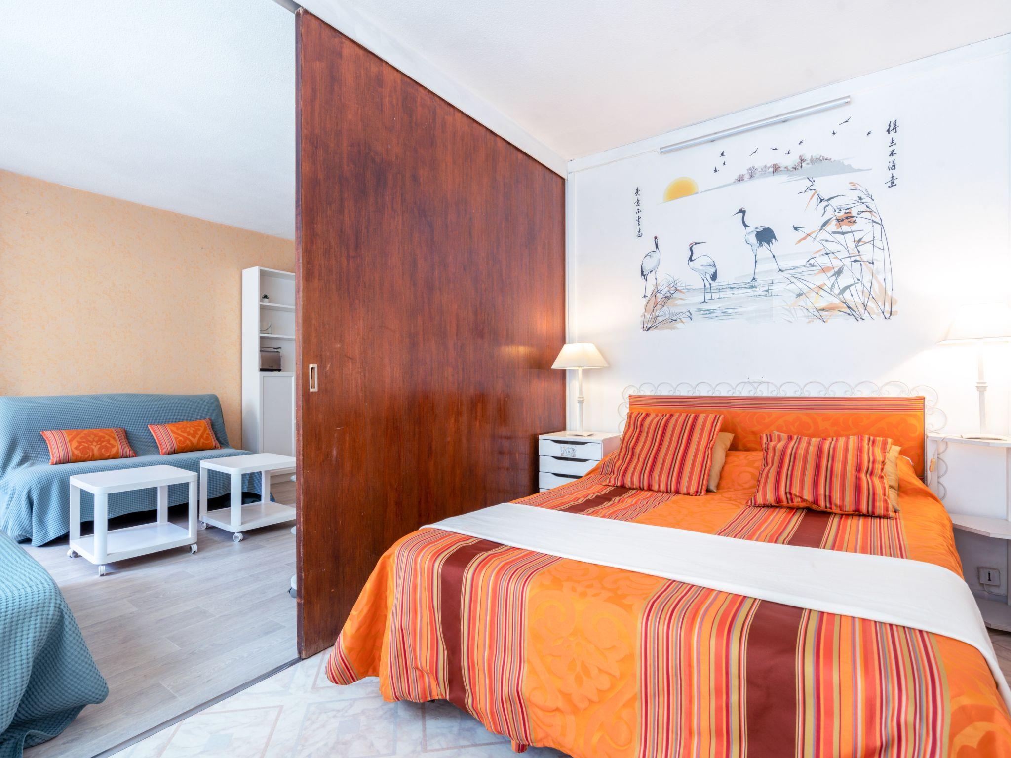 2-room apartment 47 m2 on 2nd floor. Simple furnishings: living/dining room with TV (flat screen). Exit to the terrace. 1 room with 1 french bed (140 cm, length 190 cm). Exit to the terrace. Alcove with 1 x 2 bunk beds (90 cm, length 190 cm). Kitchenette (4 hot plates, oven, dishwasher, toaster, kettle, microwave, freezer). Bathroom, sep. WC. Terrace 7 m2. Terrace furniture. View of the resort. Facilities: washing machine, iron, hair dryer. Internet (WiFi, extra). Parking space n 37 (roofed). Please note: non-smokers only. Smoke alarm. Offer by a private individual according to Art. 155, IV of CGI. 64122171817YN