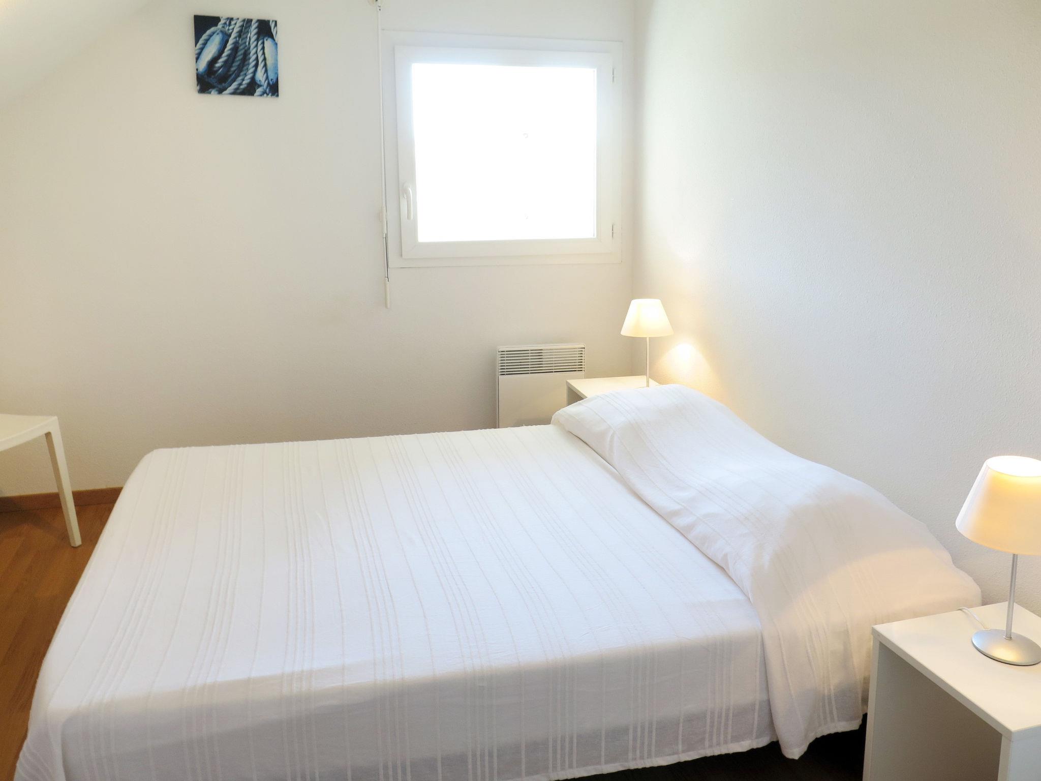 "Résidence Belle Dune", 4-room apartment 50 m2 on 2 levels on 2nd floor. Living/dining room with dining table and TV (flat screen). Exit to the balcony. 1 small room with 1 x 2 bunk beds (80 cm, length 190 cm). Kitchenette (dishwasher, 2 ceramic glass hob hotplates, toaster, kettle, microwave, freezer, electric coffee machine). Bathroom, sep. WC. Upper floor: 1 room with sloping ceilings with 1 french bed (140 cm, length 190 cm). 1 room with sloping ceilings with 2 beds (90 cm, length 190 cm). Electric heating. Balcony or terrace. Balcony furniture. Facilities: washing machine, iron, children's high chair, baby cot (extra). Internet (WiFi, free). Please note: non-smokers only. Maximum 1 pet/ dog allowed. Smoke alarm.