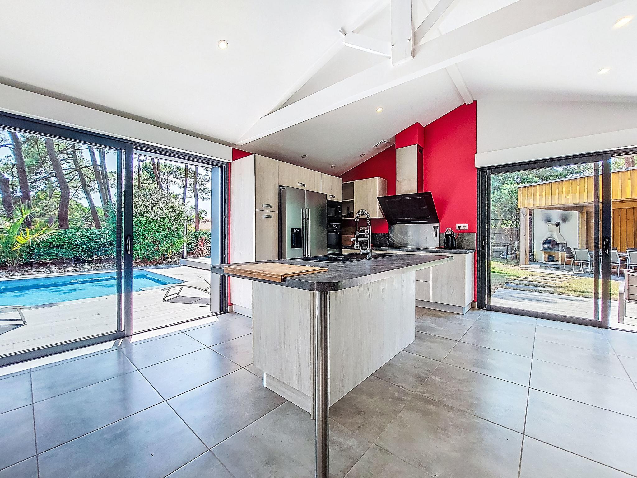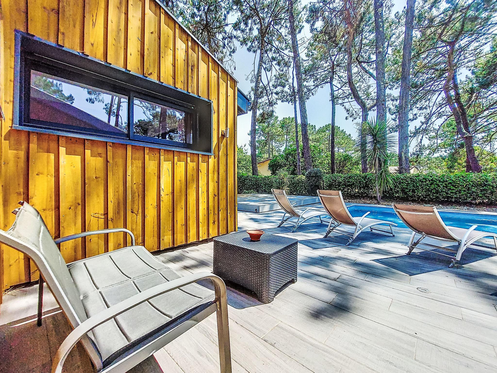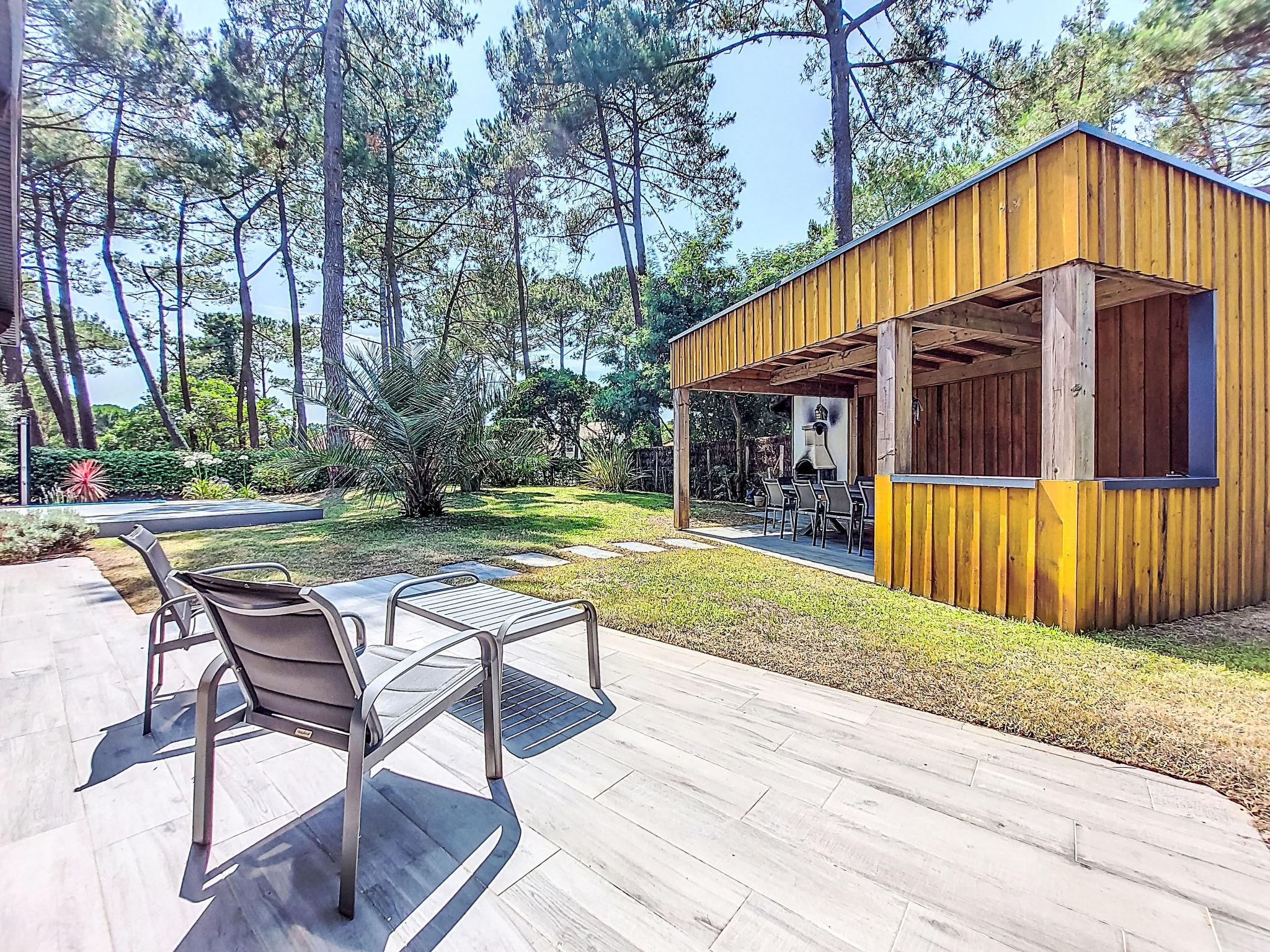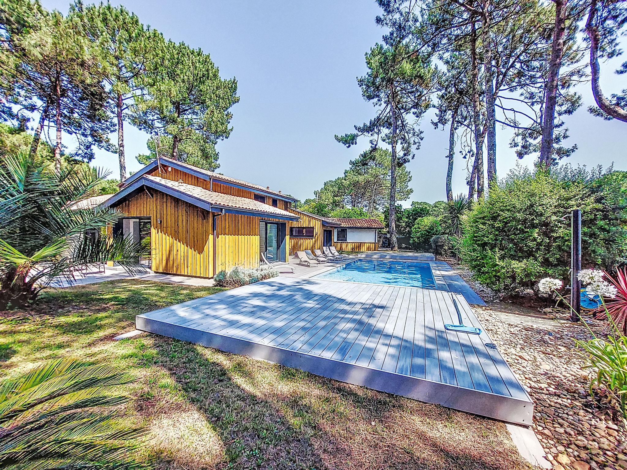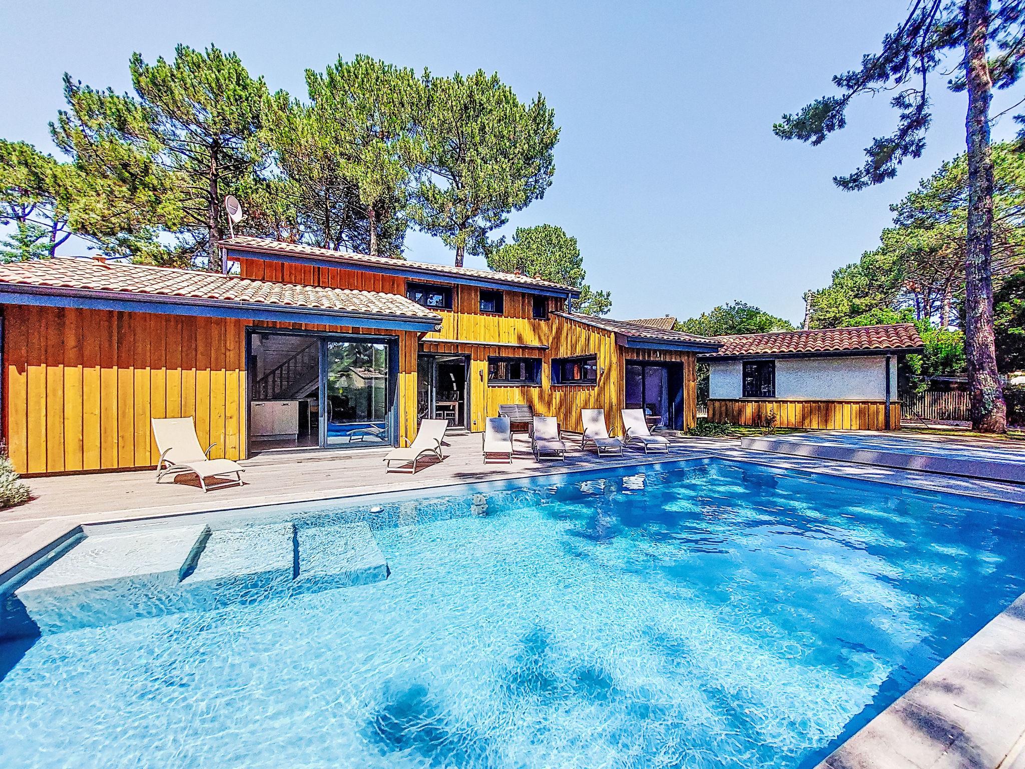 Villa "Villa les Verdiers". 1 km from the sea, 1 km from the beach. Private: property, garden 1'265 m2 (fenced), swimming pool heated (9 x 4 m, depth 110 - 140 cm, seasonal availability: 01.Jun. - 30.Sep.). Outdoor shower, pool house, parking (for 4 cars) on the premises. Carport. Shop, supermarket 200 m, restaurant 800 m, bakery 200 m, bus stop 400 m, railway station "La Teste De Buch" 26 km, sandy beach "Plage du Vivier" 1 km. Golf course (18 hole) 6 km, surf school 230 m, sailing school 10 km, tennis 850 m, riding stable 8.2 km. Nearby attractions: La Teste De Buch 26 km, Arcachon 27 km, Dune du Pilat 17 km. Well-known lakes can easily be reached: Lac de Biscarosse 9 km.