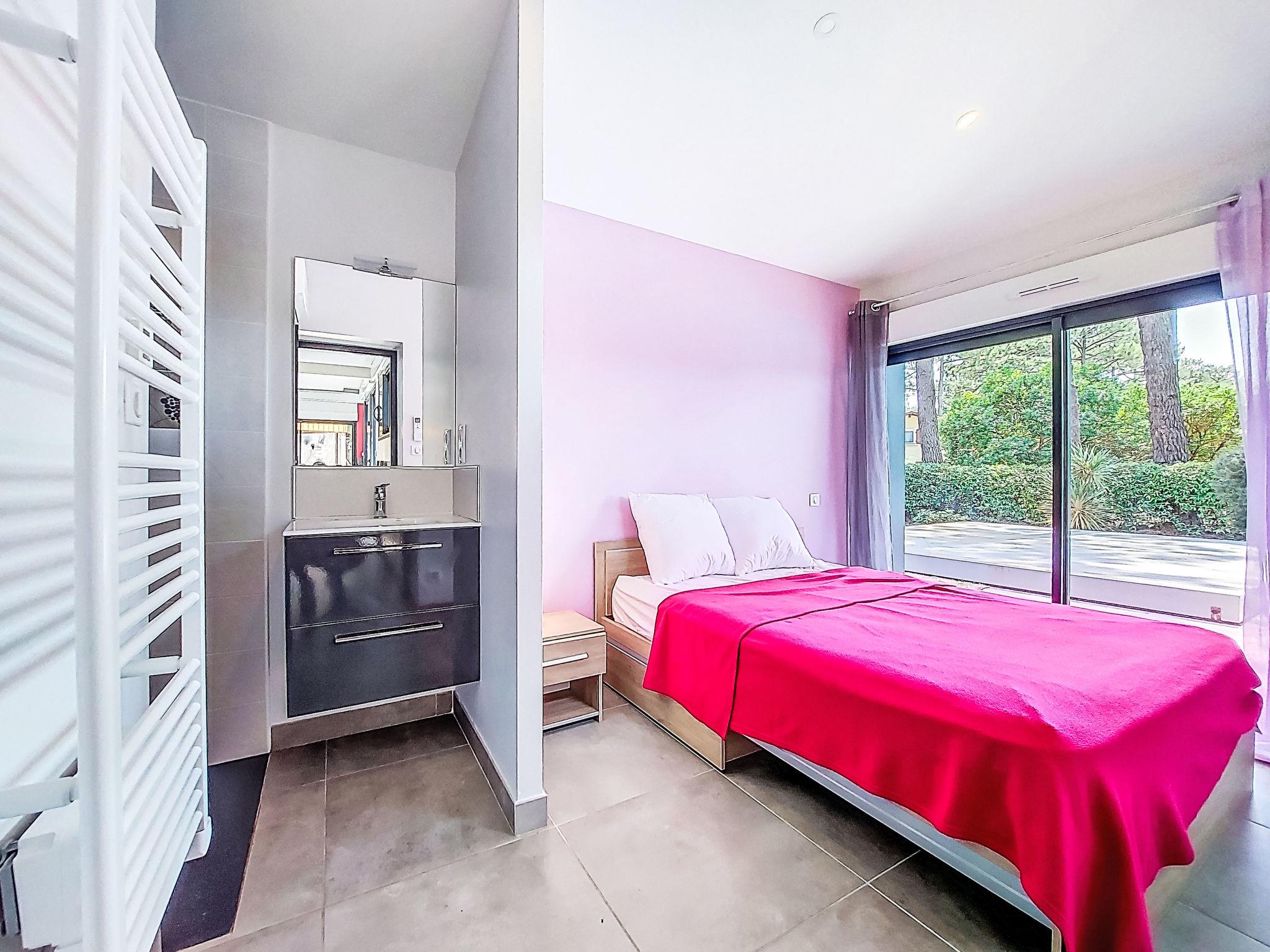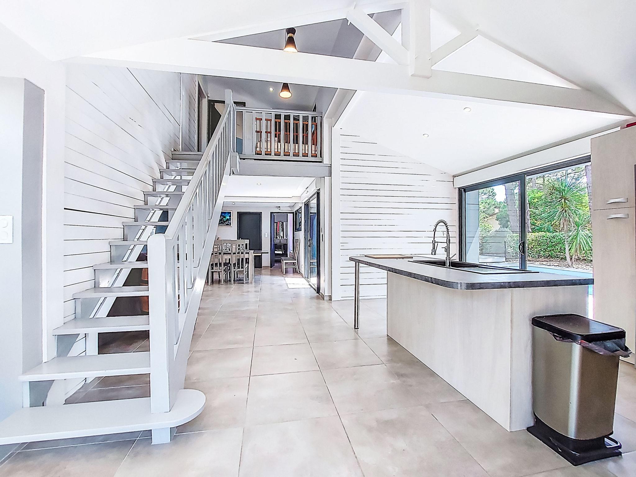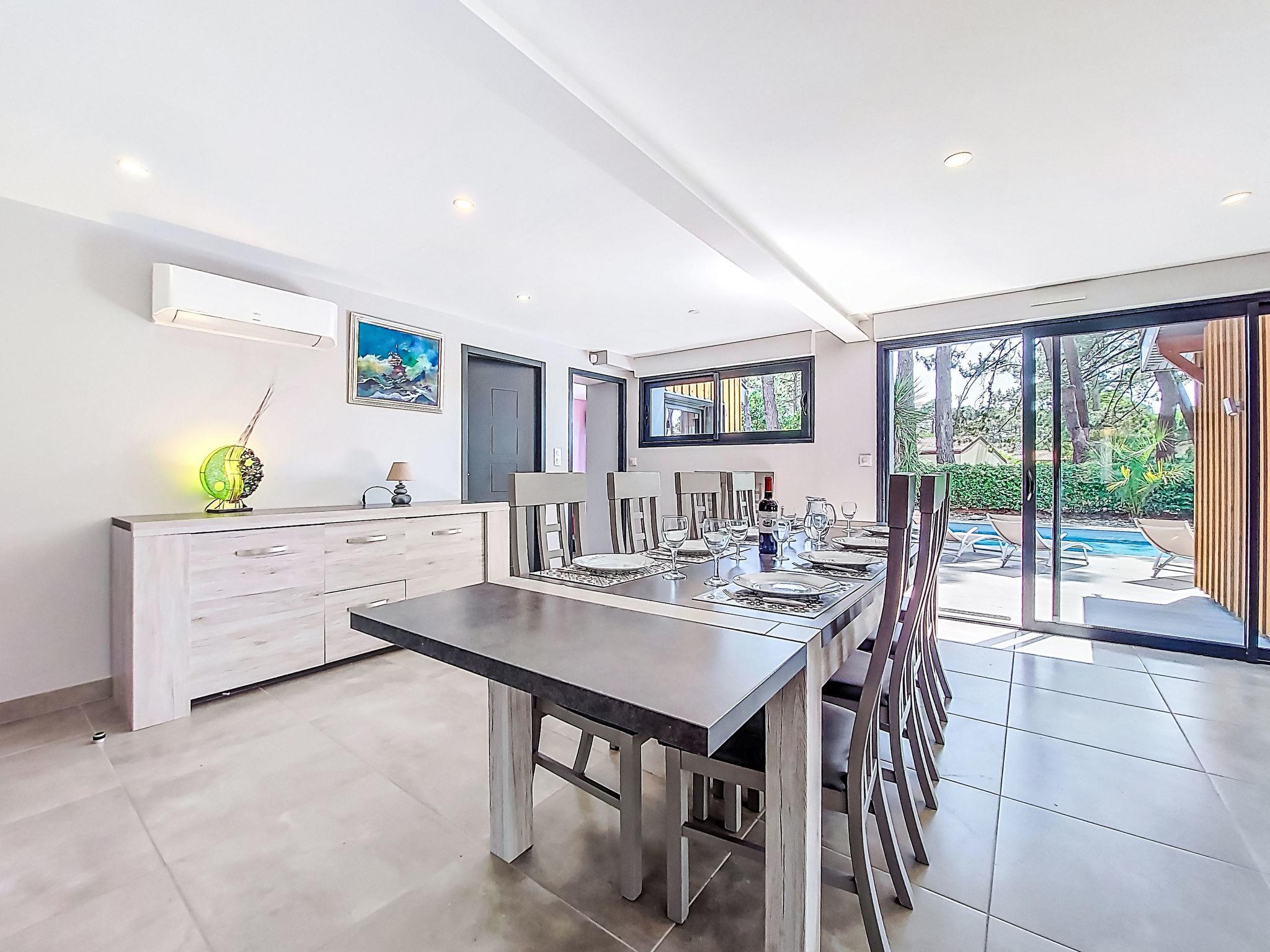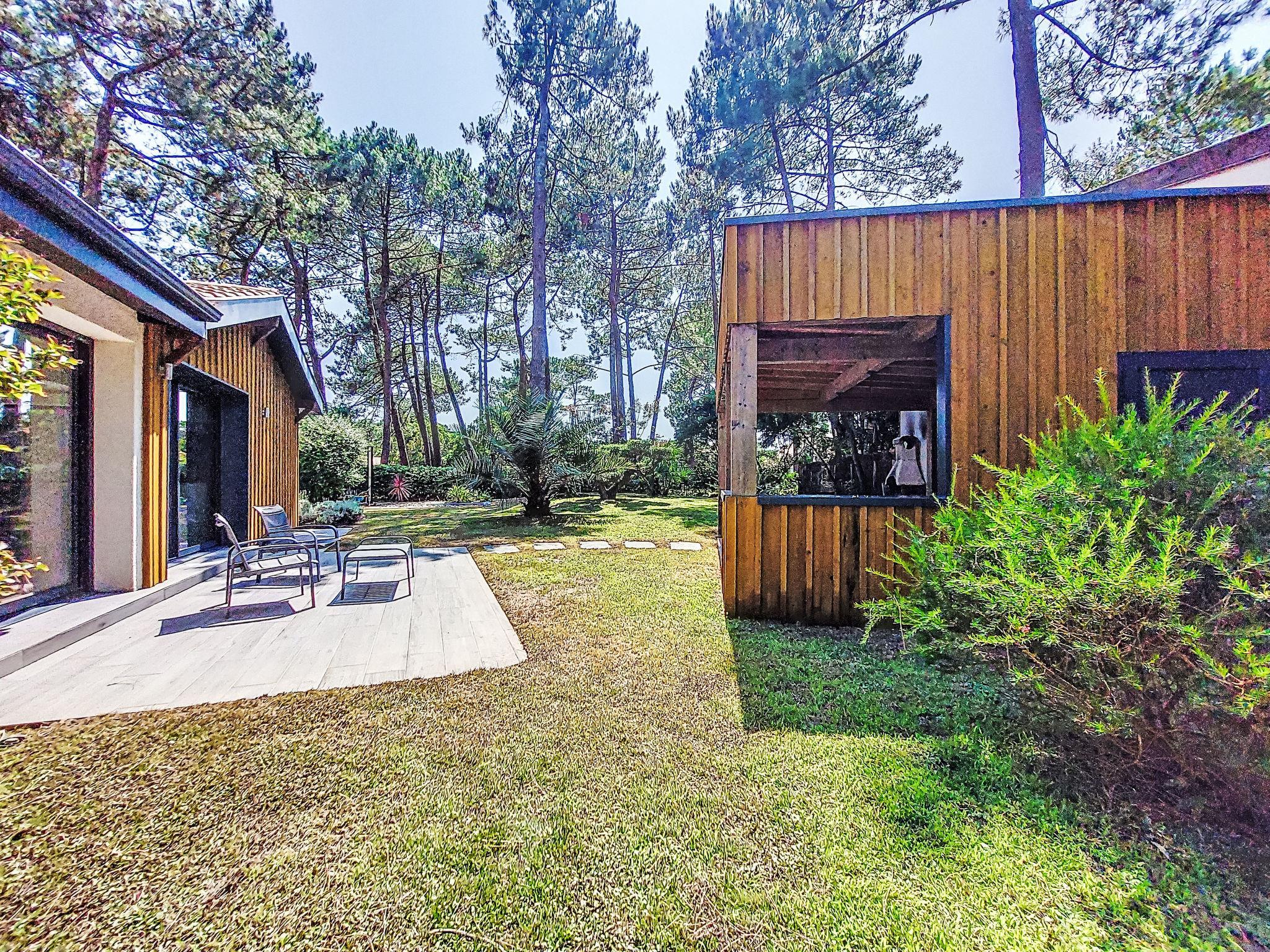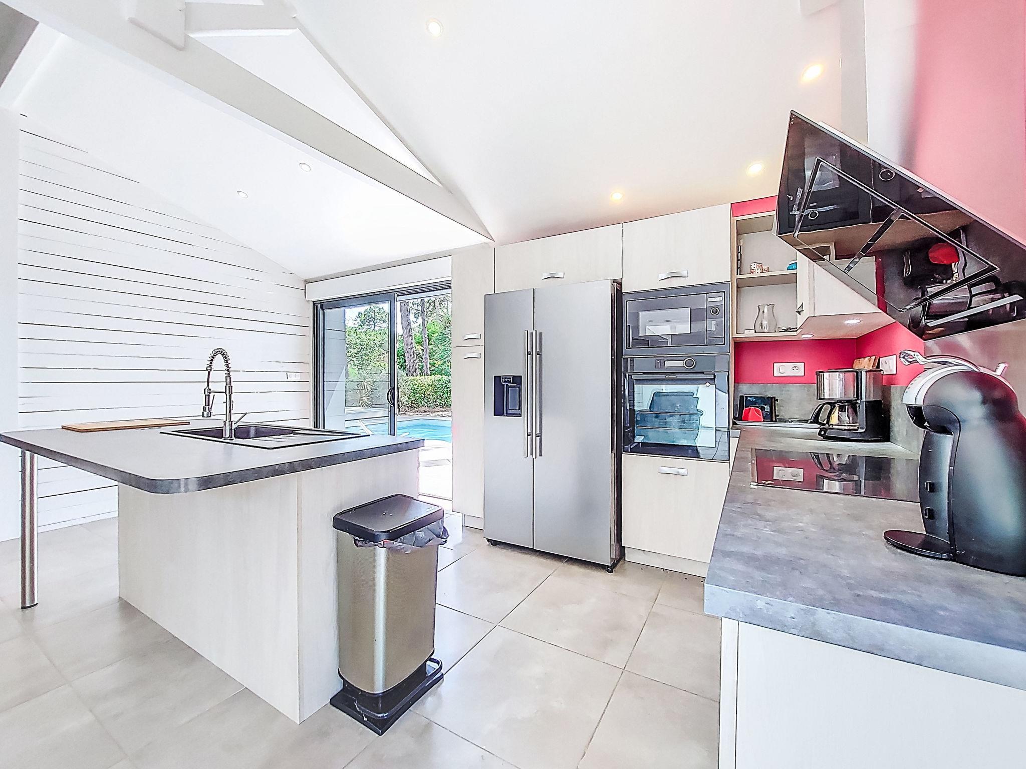 Villa "Villa les Verdiers". 1 km from the sea, 1 km from the beach. Private: property, garden 1'265 m2 (fenced), swimming pool heated (9 x 4 m, depth 110 - 140 cm, seasonal availability: 01.Jun. - 30.Sep.). Outdoor shower, pool house, parking (for 4 cars) on the premises. Carport. Shop, supermarket 200 m, restaurant 800 m, bakery 200 m, bus stop 400 m, railway station "La Teste De Buch" 26 km, sandy beach "Plage du Vivier" 1 km. Golf course (18 hole) 6 km, surf school 230 m, sailing school 10 km, tennis 850 m, riding stable 8.2 km. Nearby attractions: La Teste De Buch 26 km, Arcachon 27 km, Dune du Pilat 17 km. Well-known lakes can easily be reached: Lac de Biscarosse 9 km.
