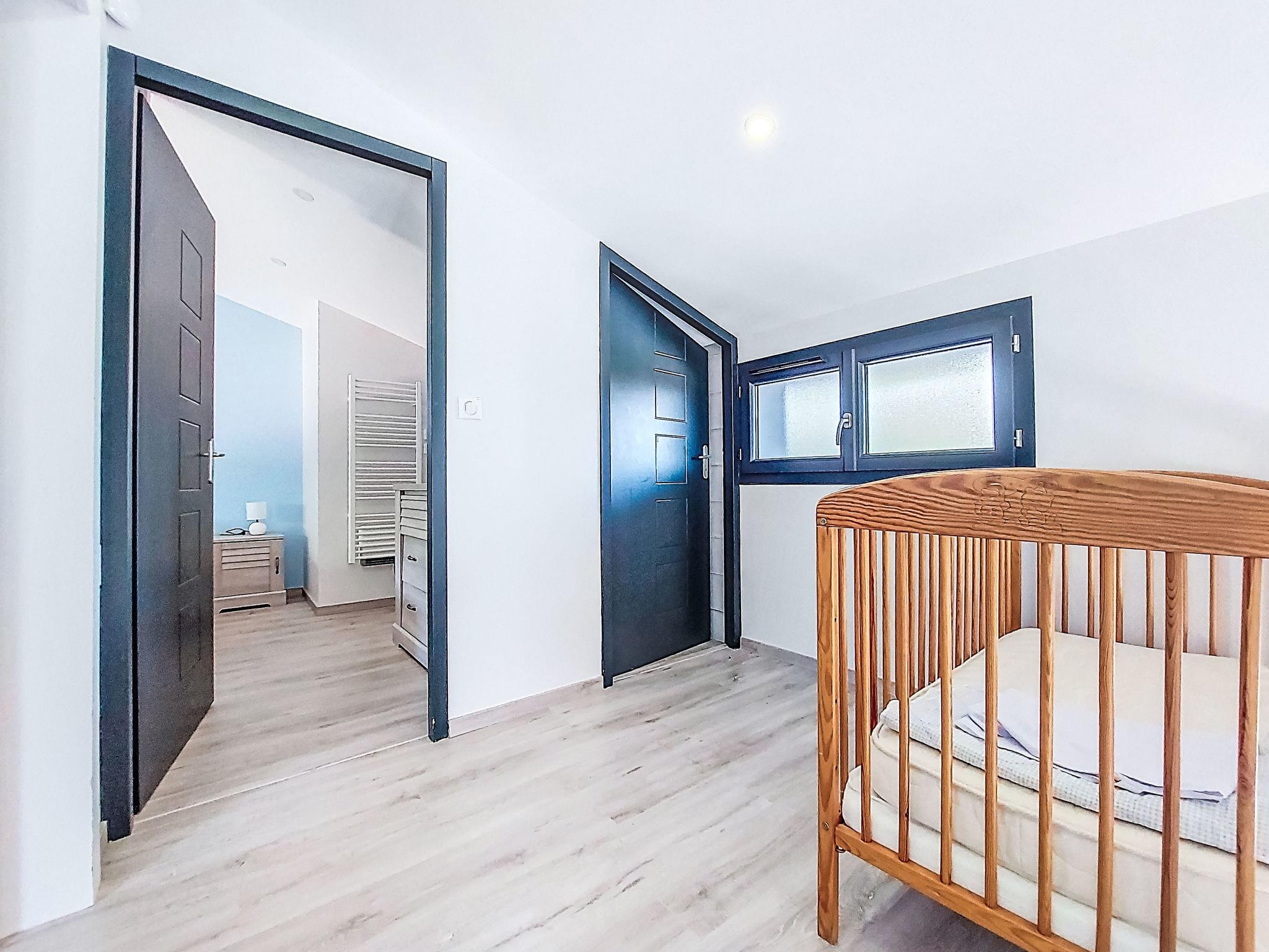 6-room villa 150 m2 on 2 levels. Comfortable and beautiful furnishings: dining room with TV (flat screen). 1 room with (140 cm, length 190 cm), shower. Exit to the terrace, to the swimming pool. 2 rooms, each room with (160 cm, length 200 cm), shower. Large, open kitchen (oven, 4 induction hot plates, toaster, kettle, microwave, electric coffee machine, Capsules for coffee machine (Dolce Gusto) extra). Sep. WC. Upper floor: 1 room with (160 cm, length 200 cm), shower. 1 room with (160 cm, length 200 cm), shower. Exit to the terrace. Sep. WC. Air-conditioning. Large terrace 105 m2, south facing position. Terrace furniture, barbecue, deck chairs (6). Facilities: washing machine, iron. Internet (WiFi, free). Parking (fenced 4 cars). Please note: non-smokers only. Maximum 2 pets/ dogs allowed. Smoke alarm. Offer by a private individual according to Art. 155, IV of CGI.