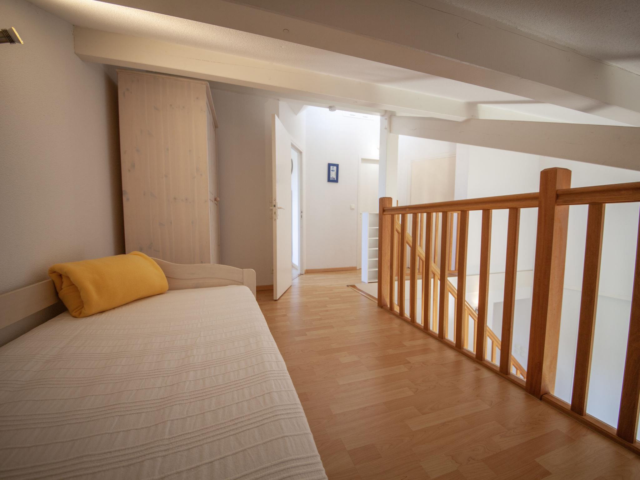 "Résidence Dune Blanche - Sable", 4-room semi-detached house 75 m2 on 2 levels. Object suitable for 6 adults. Practical and cosy furnishings: living/dining room with dining table and TV (flat screen). Exit to the terrace. 1 room with 1 french bed (140 cm, length 190 cm). Kitchenette (dishwasher, 4 ceramic glass hob hotplates, toaster, kettle, microwave, freezer, electric coffee machine). Bathroom, sep. WC. Upper floor: open gallery with 2 pull-out beds (1 pers. 2 x 90 cm, length 190 cm). 1 room with 1 french bed (140 cm, length 190 cm). 1 room with 2 beds (80 cm, length 190 cm). Shower/WC. Electric heating. Terrace. Terrace furniture. Facilities: washing machine, iron, children's high chair, baby cot (extra). Internet (WiFi, free). Parking (1 car). Please note: non-smokers only. Maximum 1 pet/ dog allowed. Smoke alarm. Instead of an enclosed bedroom, some sleeping areas are located in an open-plan area (gallery, alcove, etc.).