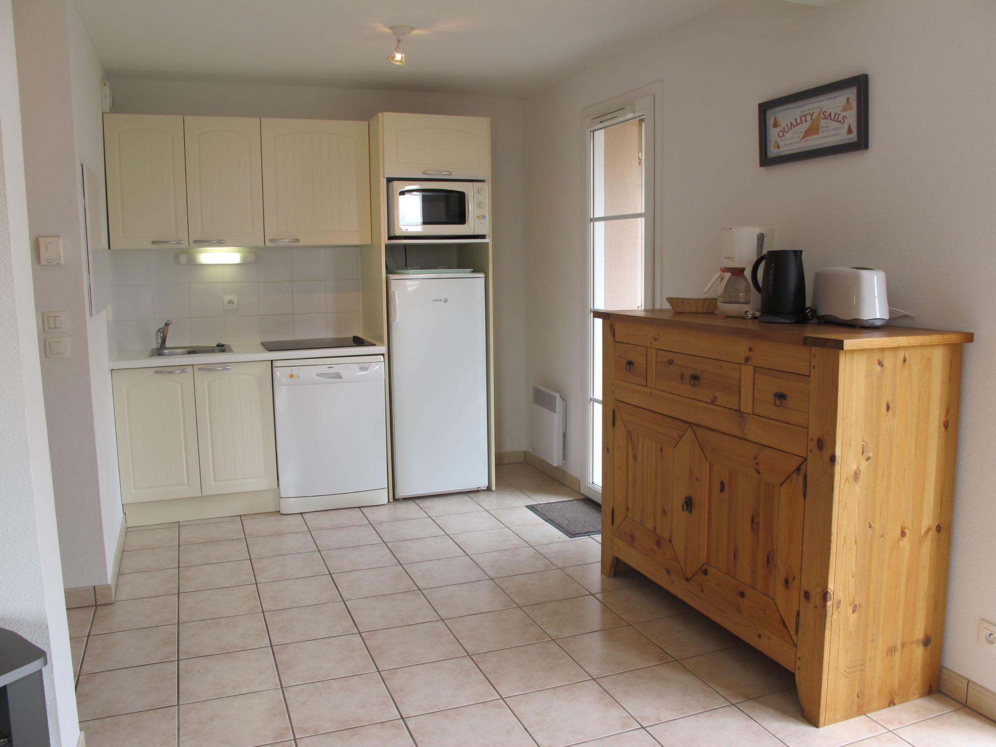 Beautiful, cosy resort "Résidence Dune Blanche". 500 m from the centre of Biscarrosse-Plage, 10 km from the centre of Biscarrosse, 30 km from the centre of Arcachon, 400 m from the sea, 400 m from the beach, road to cross, direct access to the beach. For shared use: swimming pool fenced (12 x 6 m, depth 150 cm, seasonal availability: 01.May. - 30.Sep.). Terrace. In the complex: reception, breakfast room, WiFi, washing machine (extra), tumble dryer (extra). Bread roll service, beverage service and breakfast (extra). Parking (limited number of spaces). Shop 500 m, supermarket 10 km, bus stop "Parc Segot" 19.6 km, sandy beach "Biscarrosse-Plage" 400 m, bathing lake "Etang de Cazaux et de Sanguinet" 6 km. Golf course (27 hole) 7 km. Please note: the photograph shows a typical example.