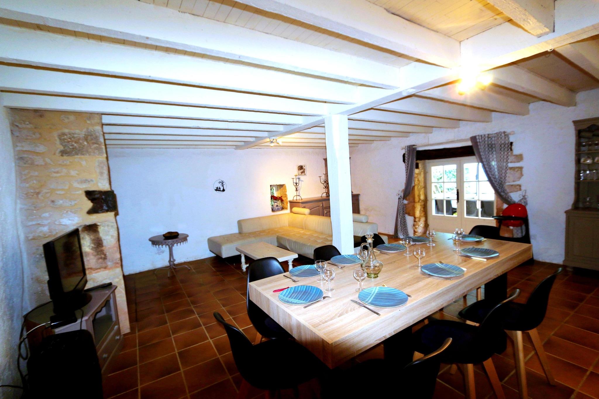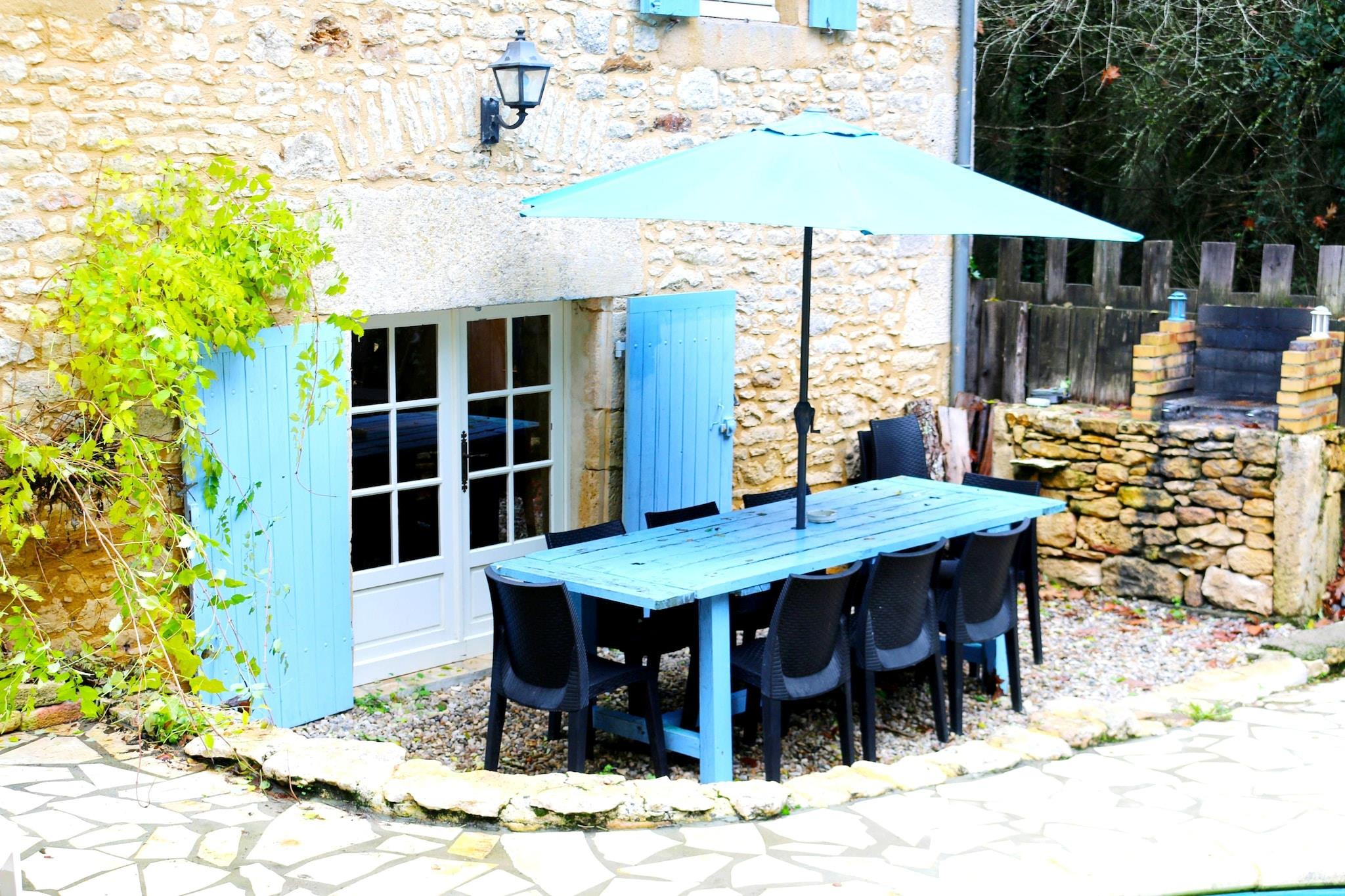 Dette romslige 5-roms feriehuset i Blanquefort-sur-Briolance ligger i rolige omgivelser med panoramautsikt over skogkledde åser, og har komfortabel plass til opptil 12 gjester. Enten du reiser med familie eller venner, tilbyr denne villaen den perfekte blandingen av avslapning, eventyr og kulturell utforskning. Nyt solfylte dager ved det private svømmebassenget og solterrassen, komplett med en steingrill for utendørs servering. Hjemmet har en peis (ved følger med), et treningsrom, vaskemaskin og fryser. Seks sykler (inkludert en for barn) er tilgjengelig for naturskjønne turer gjennom det kuperte, skogkledde landskapet – ideelt for både turgåere og syklister. I nærheten kan du oppdage Château de Bonaguil (14 km), bastidebyen Monpazier (13 km) og de underjordiske fangehullene i Belvès (23 km). Monflanquin (33 km) og badelandet i Le Bugue (41 km) tilbyr moro for alle aldre. Følg Napoleons fotspor ved hans tidligere herskapshus bare 8 km unna. Unn deg regionens berømte valnøtter, trøfler og foie gras, og slapp av i et hjem som feirer natur, historie og gastronomi.