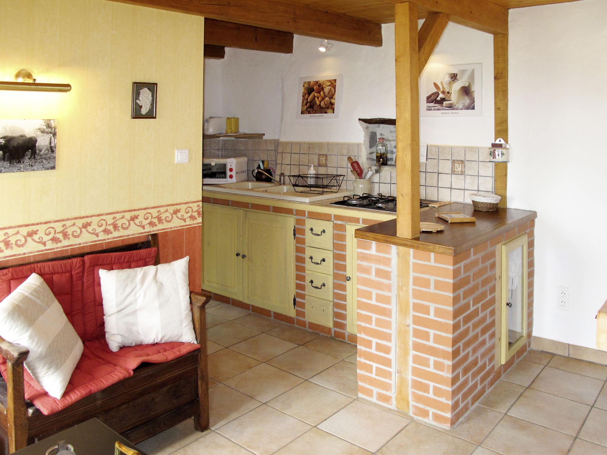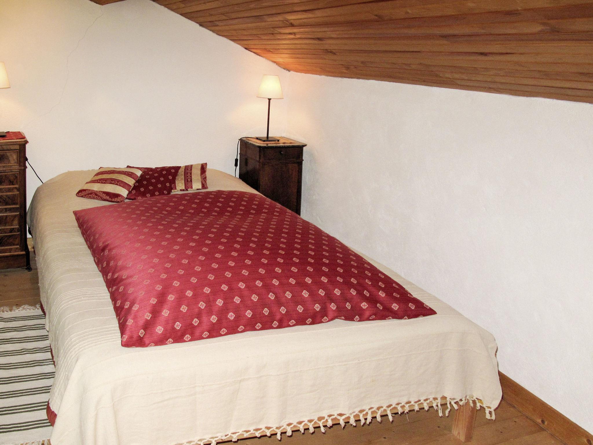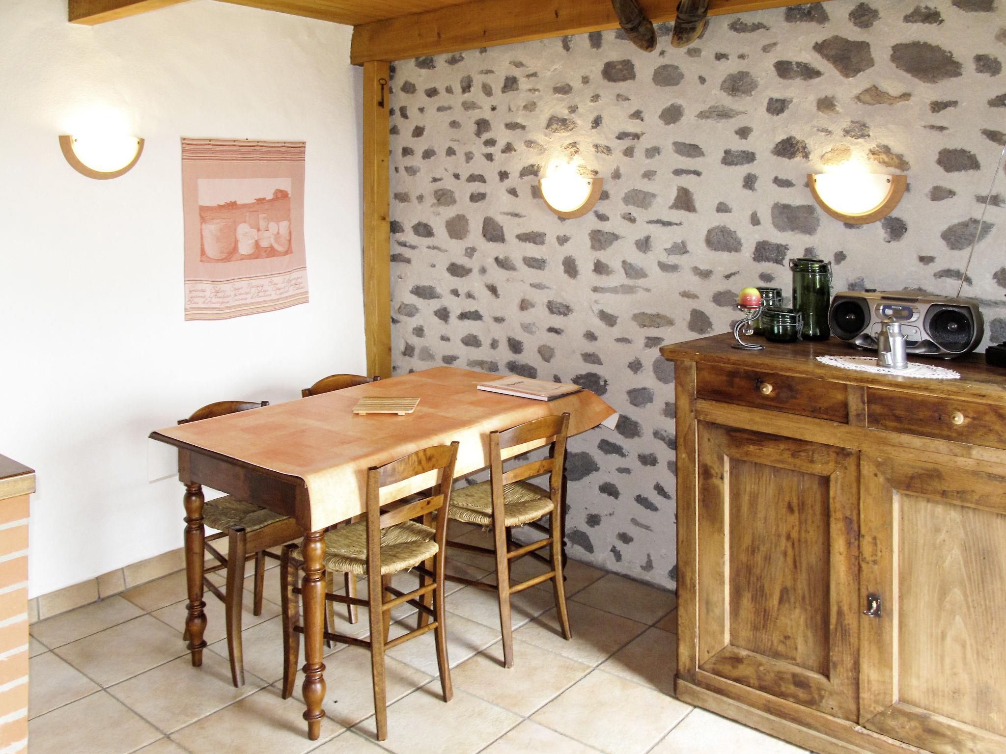 "Chez Nancy", 2-room house 45 m2 on 2 levels on 1st floor. Practical and cosy furnishings: upper floor: (exterior staircase). Kitchen-/living room (4 hot plates, toaster, kettle, electric coffee machine, combination microwave) with dining table, wood-burning stove. Shower/WC. 2nd upper floor: (steep stair) small living room with sloping ceilings with TV, radio, CD-player and DVD. 1 open small room with sloping ceilings with curtain with 1 french bed. Electric heating. Wooden floors. Patio. Terrace furniture, electric barbecue (portable), deck chairs, box-room. Panoramic view of Brivadois. Facilities: washing machine, iron, children's high chair, baby cot. Internet (WiFi, free). Please note: not suitable for small children. Non-smokers only. Maximum 1 small pet/ dog allowed. Smoke alarm.