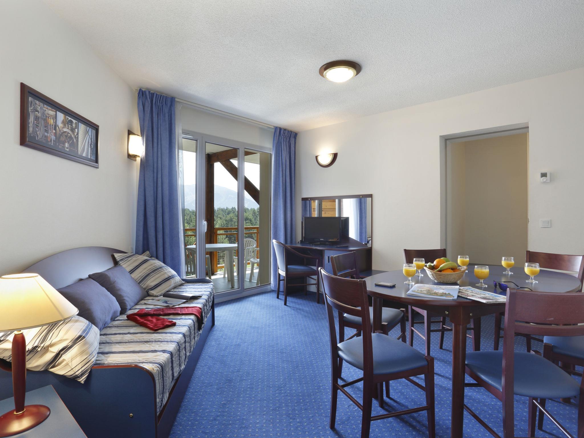Residence "Appart Vacances Pyrénées 2000", 4 storeys. 148 apartments in the residence. In the resort Bolquère Pyrénées 2000, 400 m from the skiing area. In the complex: reception, restaurant, breakfast room, WiFi, fitness room, playroom, lift, storage room for skis, central heating system, washing machine (extra), tumble dryer (extra). Bread roll service. E-charging station. Shop, grocery, supermarket 200 m, restaurant. Tennis 400 m, slopes 300 m. Nearby attractions: Perpignan 90 km. Well-known ski regions can easily be reached: Pyrénées 2000 400 m. Hiking paths: Parc Naturel Régional des Pyrénées. Please note: car recommended. The photograph shows a typical example. The holiday properties may differ in living space, floorplan, equipment and furnishing.
