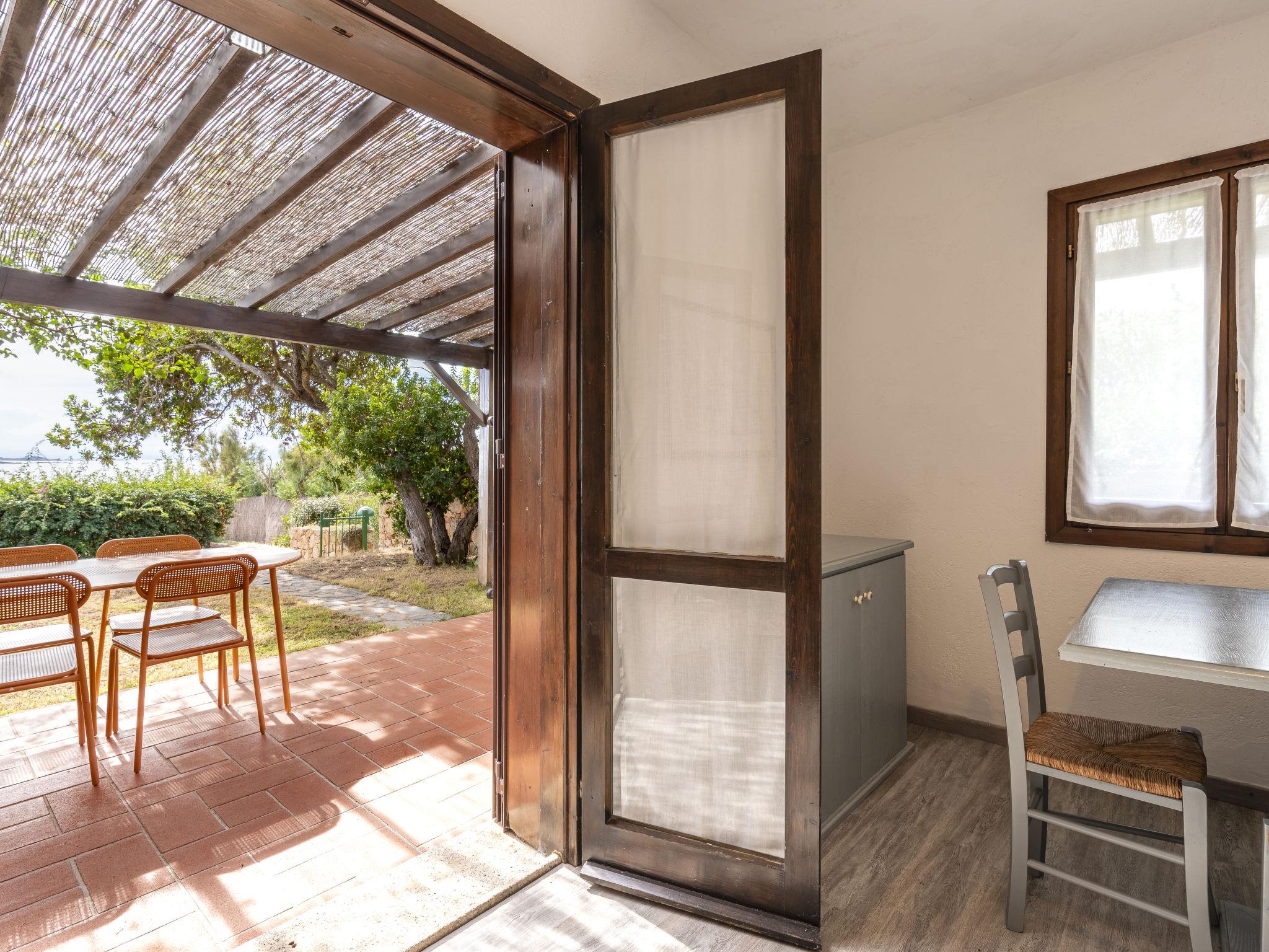 "Villa 13", 3-room terraced house 60 m2. Practical and beautiful furnishings: living/dining room with 2 sofabeds (90 cm, length 190 cm), dining table. Exit to the terrace. 1 room with 1 french bed (160 cm, length 190 cm). 1 room with 1 x 2 bunk beds (90 cm, length 190 cm). Open kitchen (oven, 4 induction hot plates, 4 gas rings, toaster, kettle, electric coffee machine). Shower/bidet/WC. Electric heating, air-conditioning. Terrace partly roofed, lawn. Terrace furniture. Beautiful view of the sea. Facilities: washing machine. Parking (fenced). Please note: maximum 1 small pet/ dog allowed. Smoke alarm. 2A041000746VH