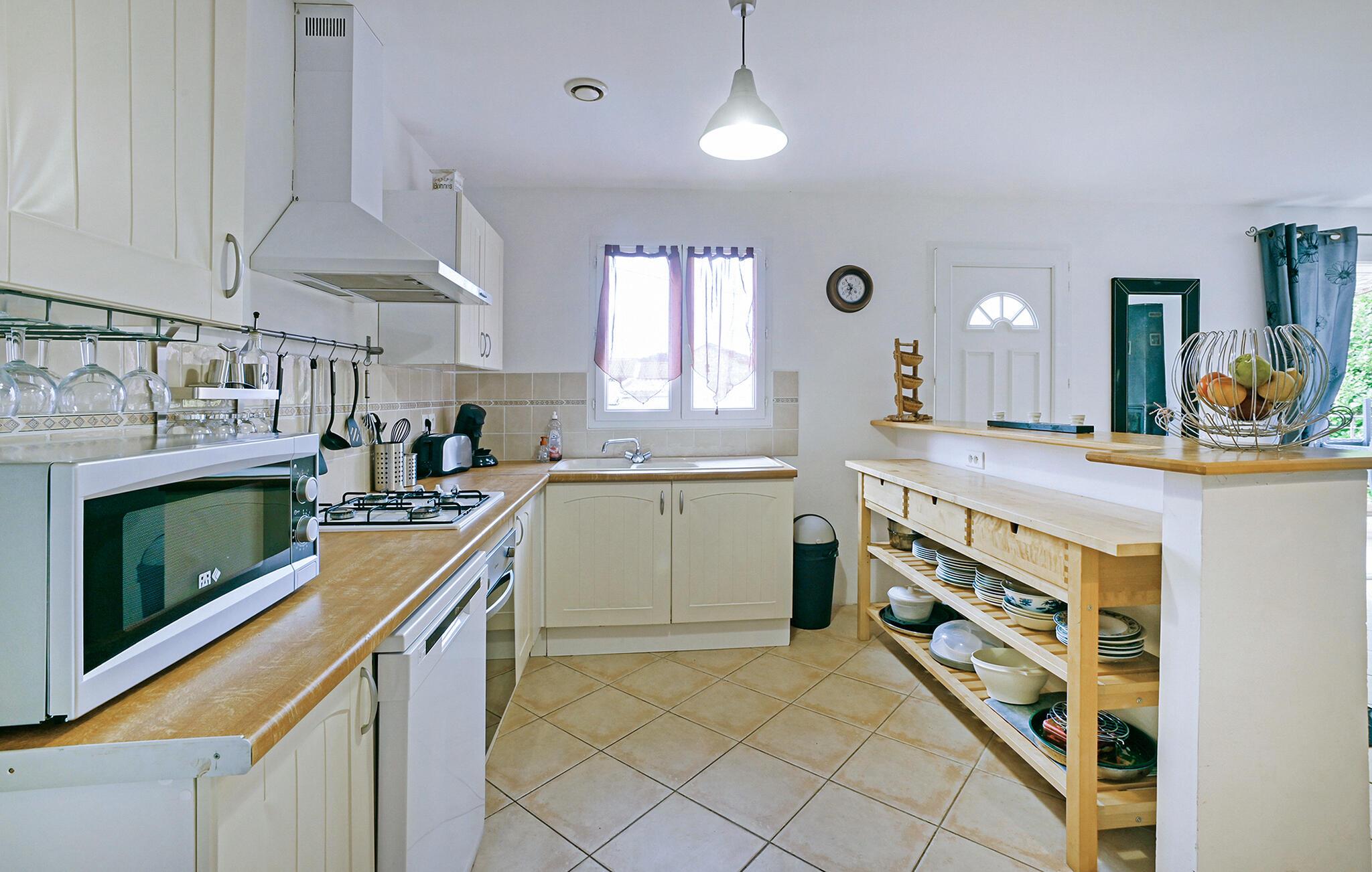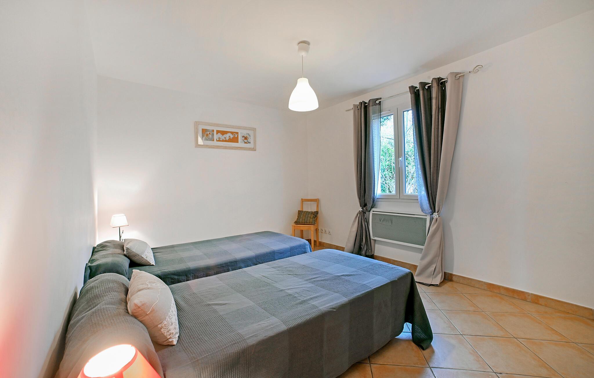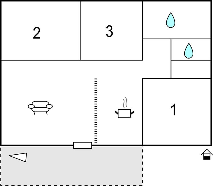 Med 3 soverom, 2 med komfortable dobbeltsenger og ett med 2 enkeltsenger, har feriehuset plass til opptil 6 personer. Det er egnet for en ferie i alle årstider og er smakfullt innredet i en moderne stil. Det gode utstyret sørger for at du kan tilbringe en vellykket ferie her.