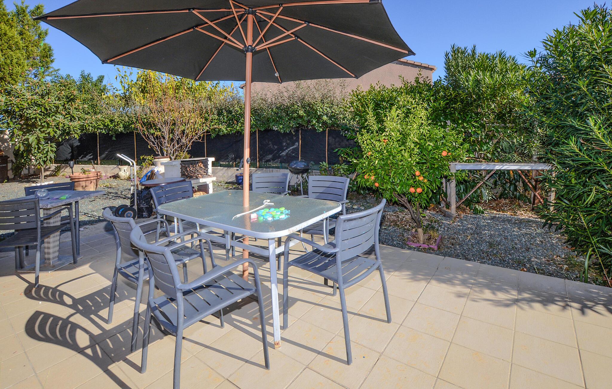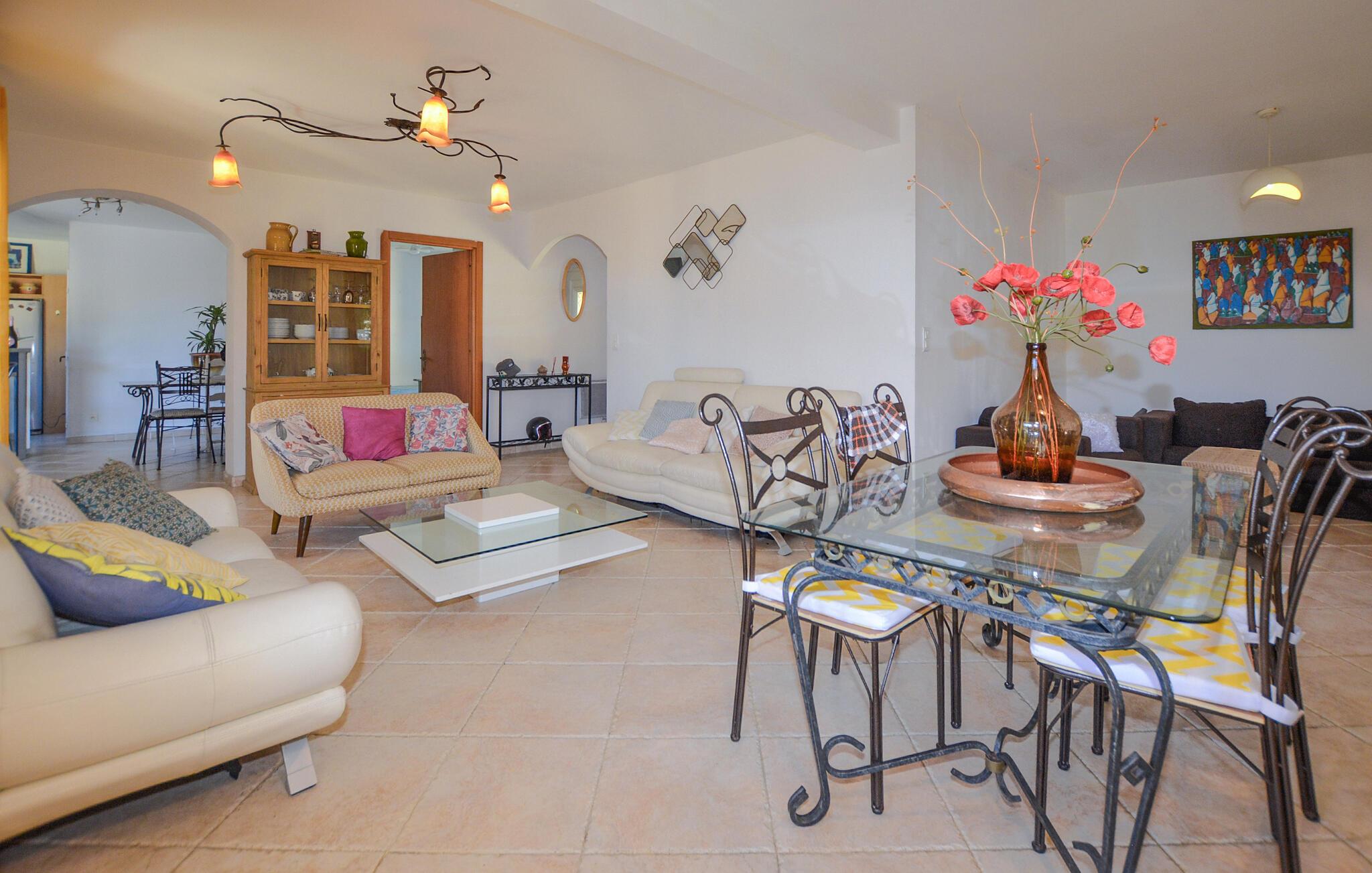 Gå ut og nyt den romslige hagen med middelhavsplanter. Du kan kjøle deg ned i det private bassenget eller slappe av på en av de mange sittegruppene. På terrassen er det et stort spisebord og en parasoll som inviterer deg til å spise utendørs.