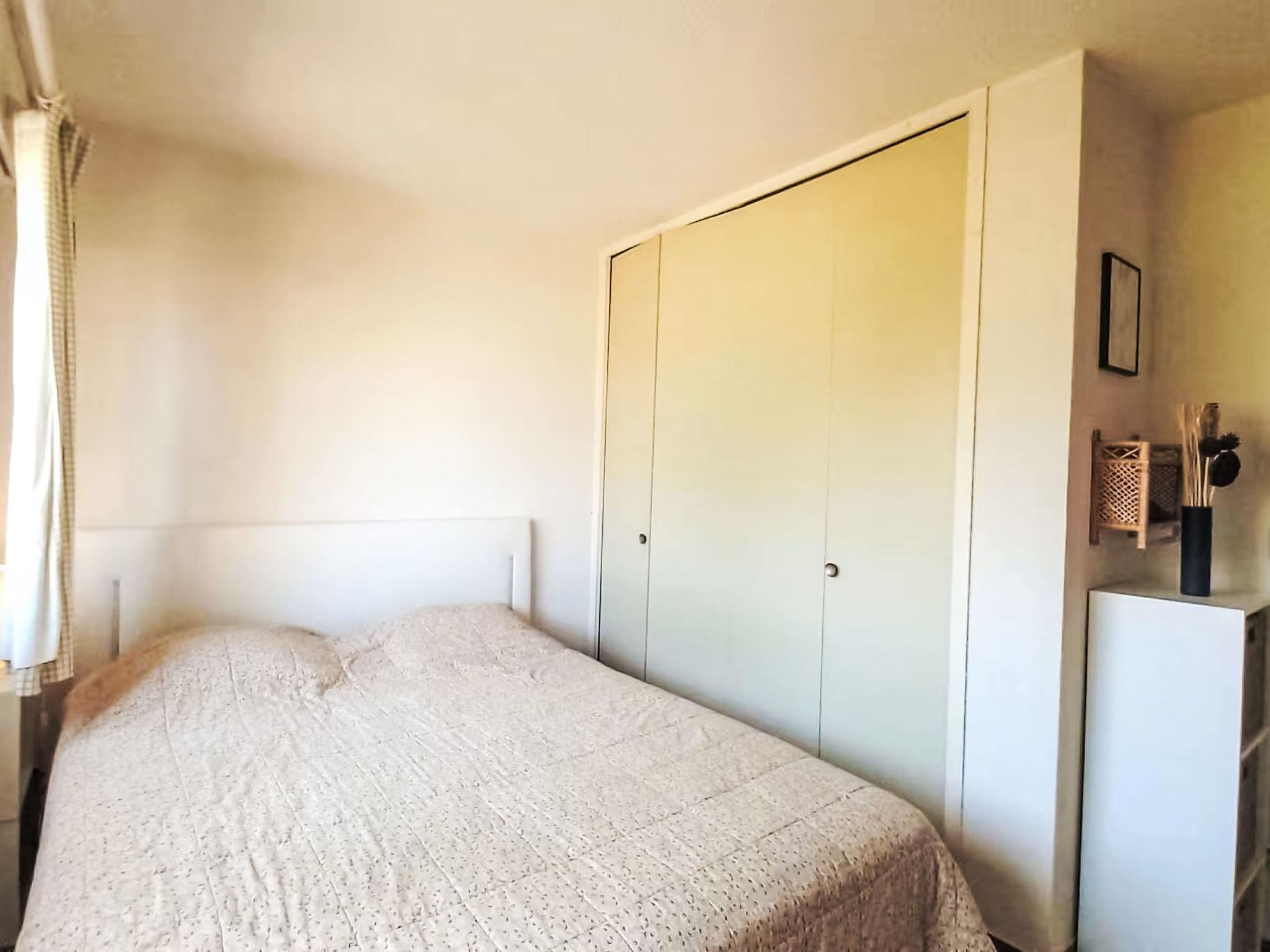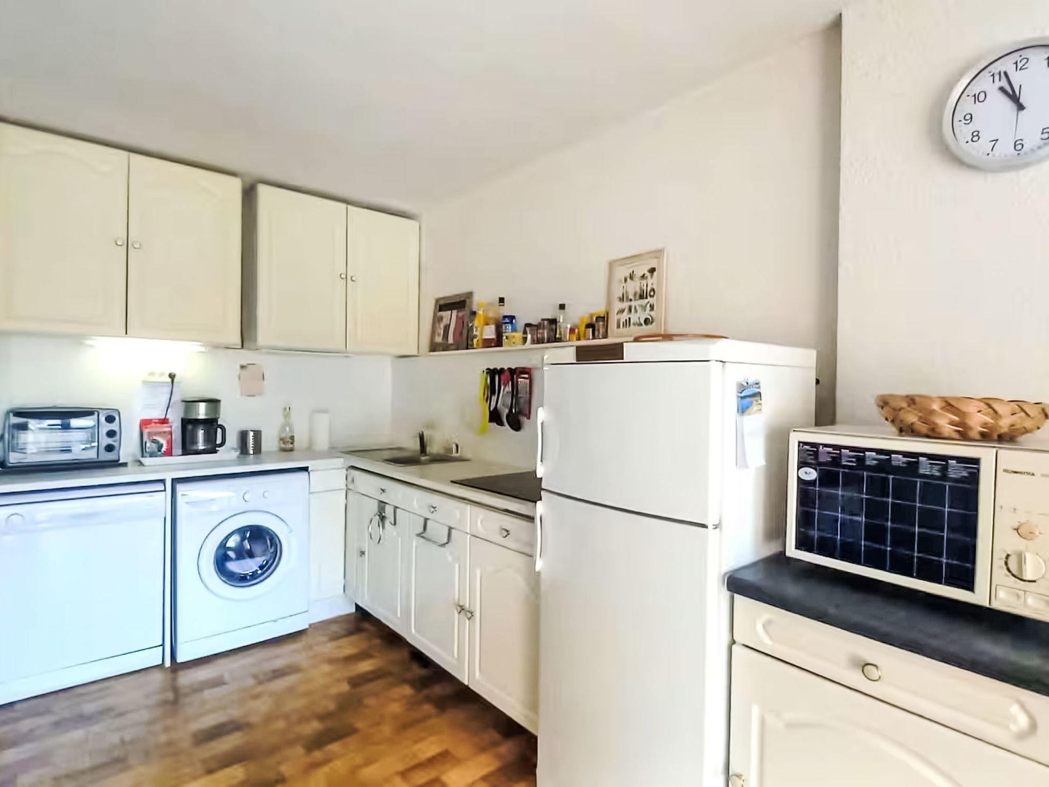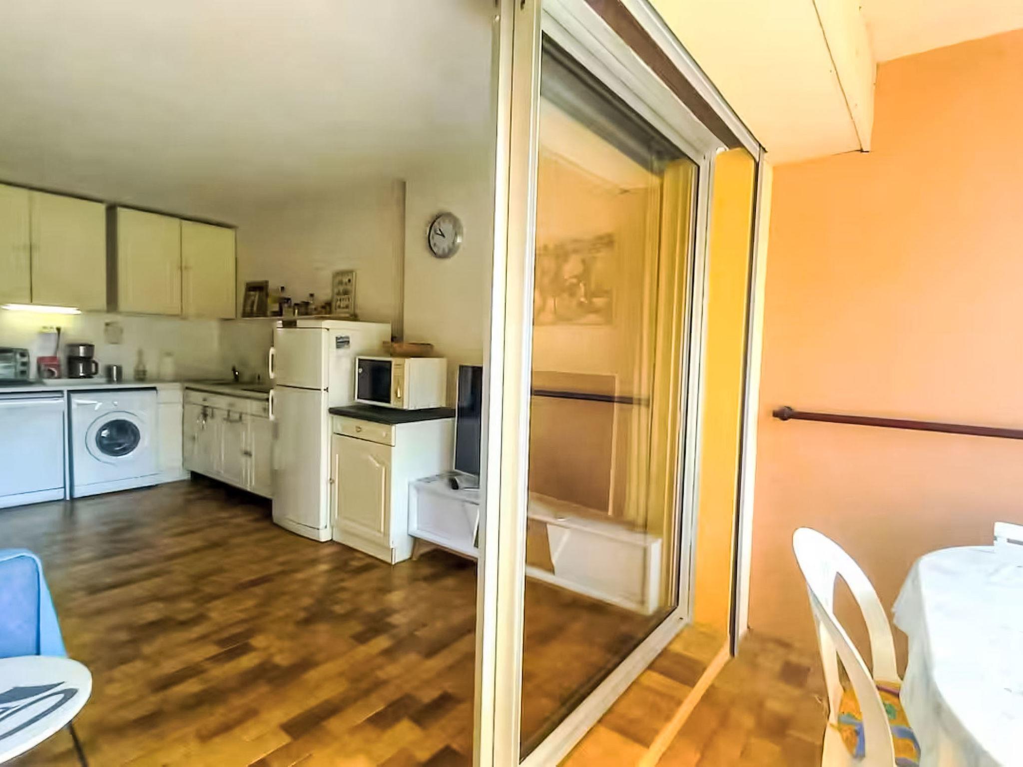 2-room apartment 35 m2 on 1st floor. Living/dining room with 1 double sofabed (140 cm, length 190 cm), TV (flat screen). Exit to the balcony. 1 room with 1 french bed (140 cm, length 190 cm). Kitchenette (mini-oven, dishwasher, 4 ceramic glass hob hotplates, toaster, kettle, microwave, freezer, electric coffee machine). Bathroom, sep. WC. Balcony 7 m2. View of the sea. Facilities: washing machine. Internet (WiFi, extra). Garage space n 270, height 180 cm, width 210 cm. Please note: non-smokers only. 1 pet/ dog allowed. TV only FR. Smoke alarm. Offer by a commercial proprietor according to Art. 155, IV, CGI 83019001992T0