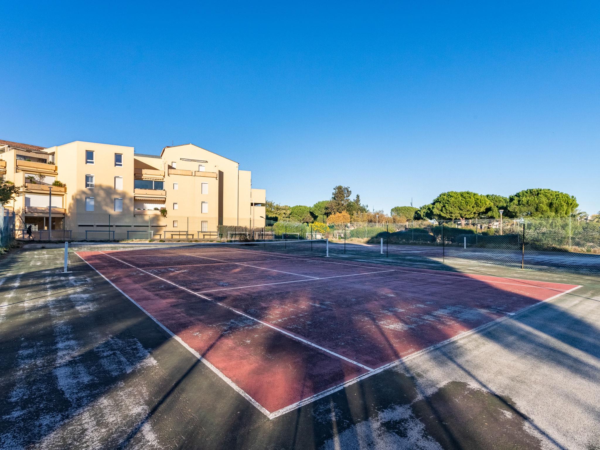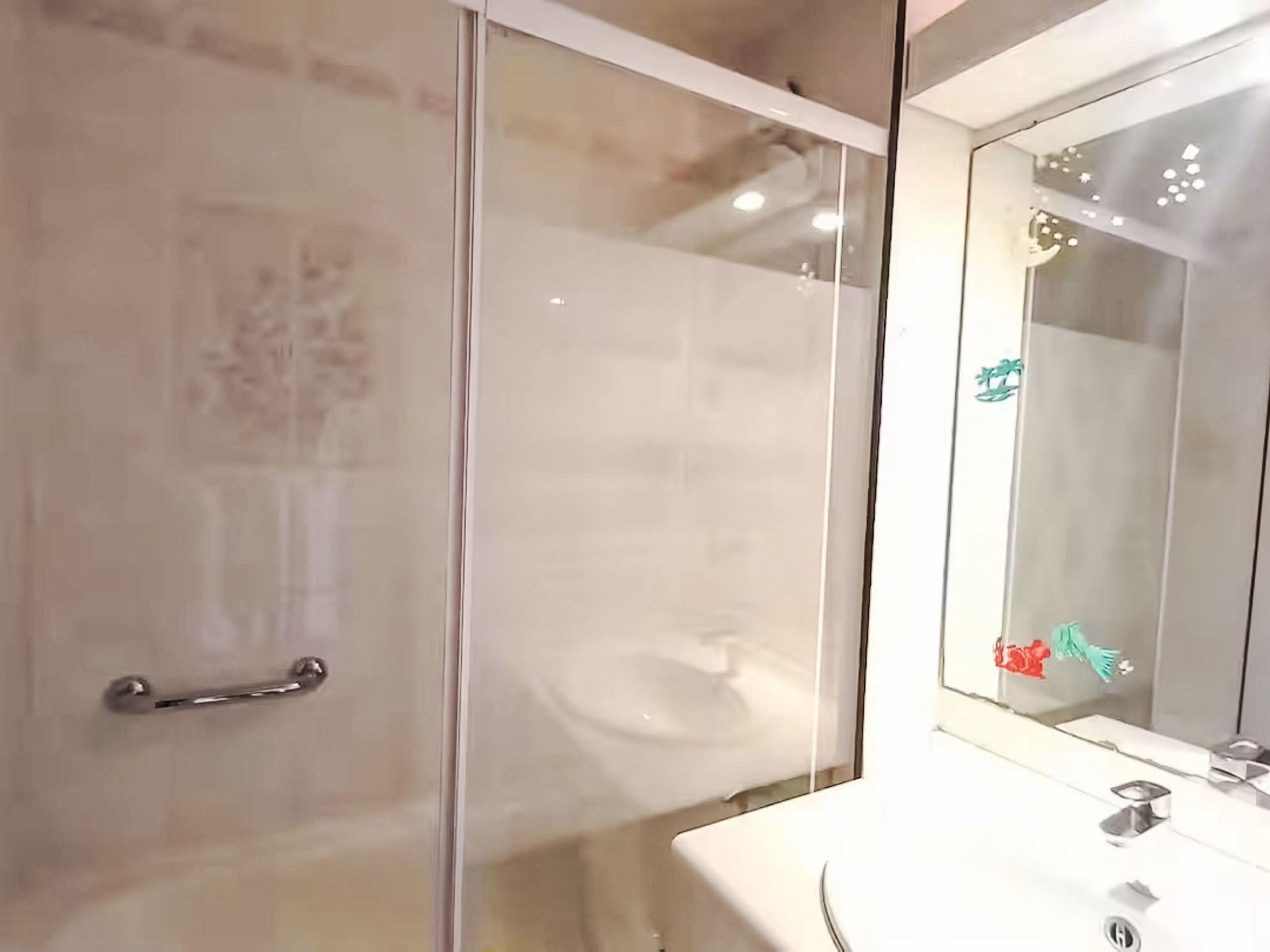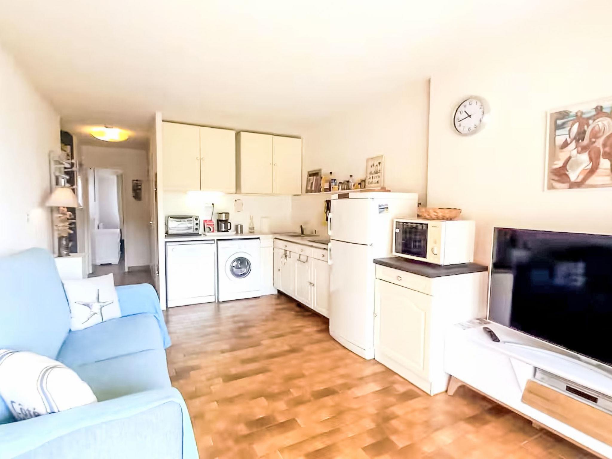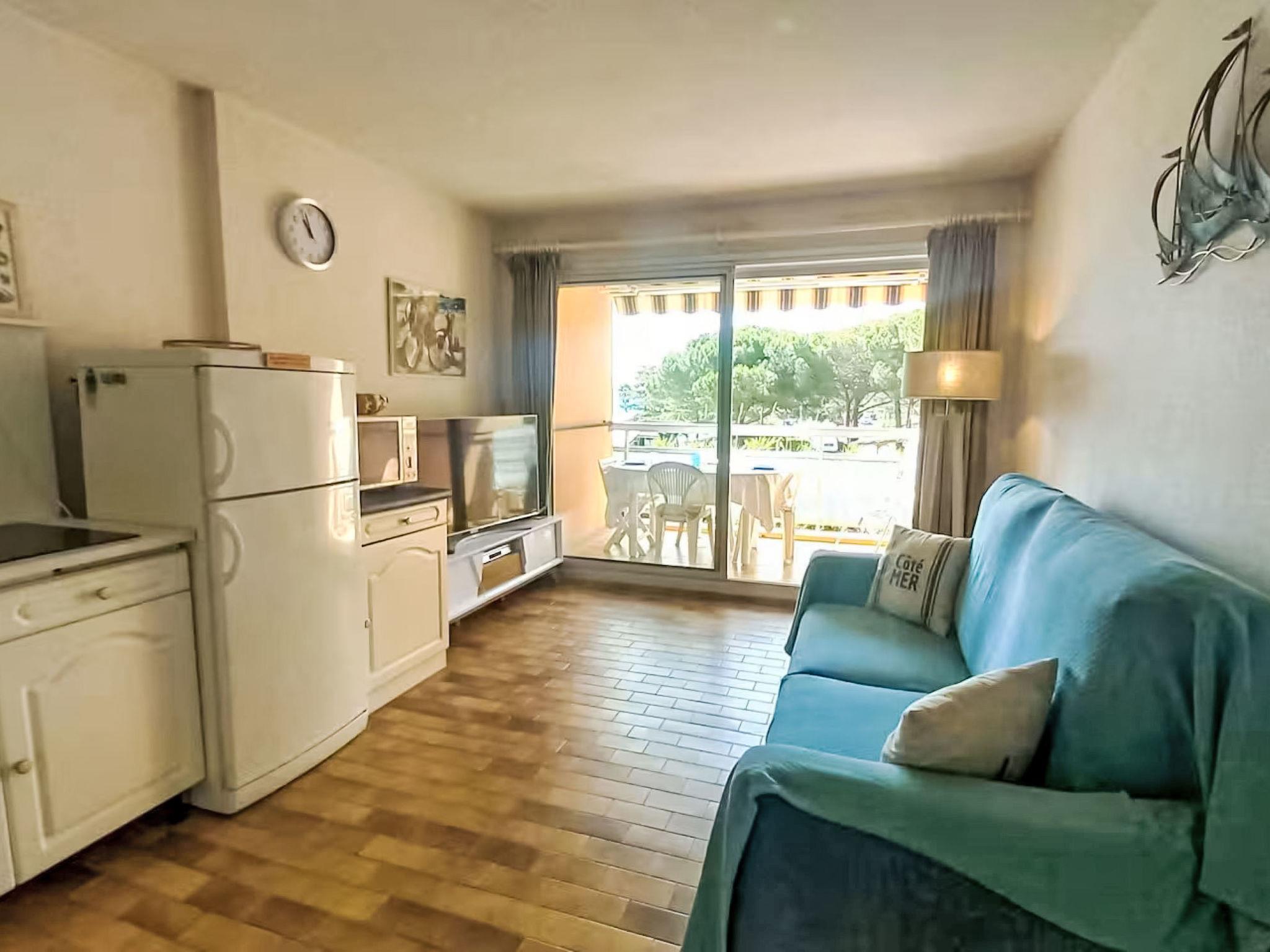 2-room apartment 35 m2 on 1st floor. Living/dining room with 1 double sofabed (140 cm, length 190 cm), TV (flat screen). Exit to the balcony. 1 room with 1 french bed (140 cm, length 190 cm). Kitchenette (mini-oven, dishwasher, 4 ceramic glass hob hotplates, toaster, kettle, microwave, freezer, electric coffee machine). Bathroom, sep. WC. Balcony 7 m2. View of the sea. Facilities: washing machine. Internet (WiFi, extra). Garage space n 270, height 180 cm, width 210 cm. Please note: non-smokers only. 1 pet/ dog allowed. TV only FR. Smoke alarm. Offer by a commercial proprietor according to Art. 155, IV, CGI 83019001992T0