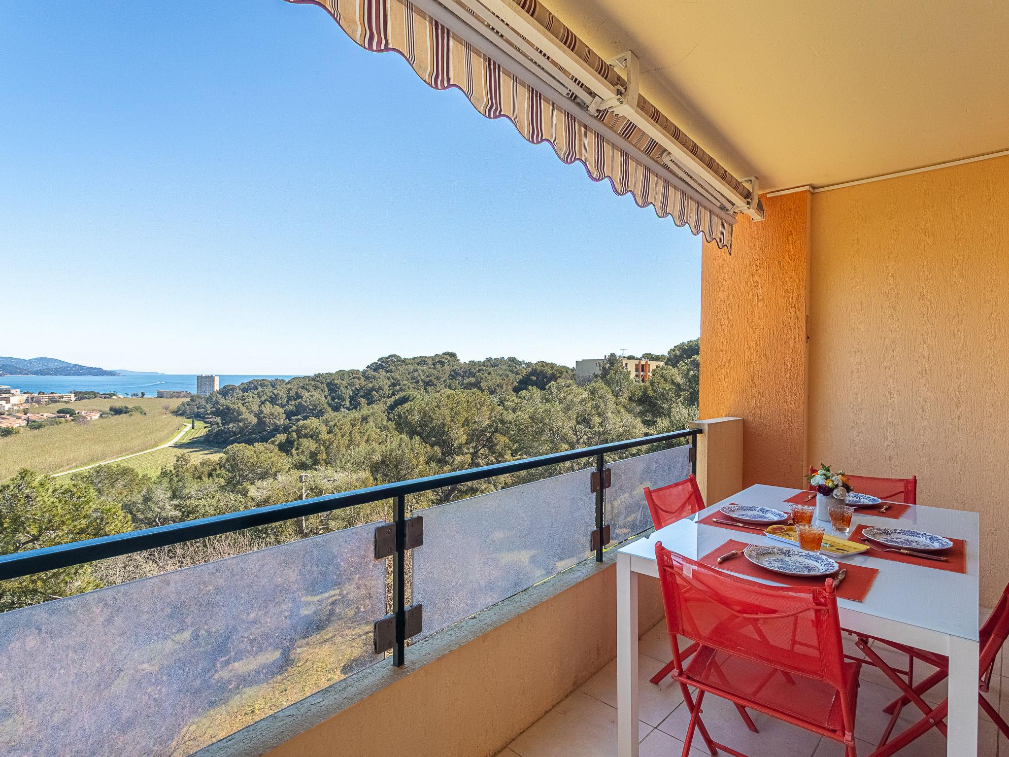 3-room apartment 67 m2 on 1st floor, east facing position. Beautiful furnishings: living/dining room with TV (flat screen). Exit to the terrace. 1 room with 1 french bed (160 cm, length 200 cm), air conditioning. Exit to the terrace. 1 room with 2 pull-out beds (1 pers. 2 x 90 cm, length 190 cm), TV (flat screen), air conditioning. Open kitchen (oven, dishwasher, 4 ceramic glass hob hotplates, toaster, kettle, microwave, electric coffee machine). Shower, sep. WC. Terrace 10 m2, east facing position. Terrace furniture. View of the sea. Facilities: washing machine, iron, hair dryer. Internet (WiFi, extra). Parking. Please note: non-smokers only. TV only FR. Smoke alarm. Offer by a private individual according to Art. 155, IV of CGI. 83070001102KX