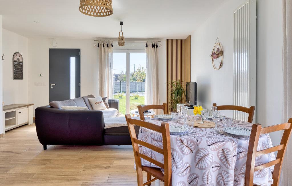 Her kan du slappe av med familien i attraktive omgivelser. Det lille huset ligger vakkert til, og herfra er det lett å komme seg til stranden med bil. Med sine lyse rom, som får sin sjarm av den hjemmekoselige innredningen, er huset det ideelle stedet for en hyggelig ferie. Bruk det som utgangspunkt for en herlig strandferie med utforsking av Normandie. Sett deg godt til rette ved spisebordet etter en uforglemmelig dag, og nyt utsikten over hagen gjennom de store vinduene mens dere spiser sammen.