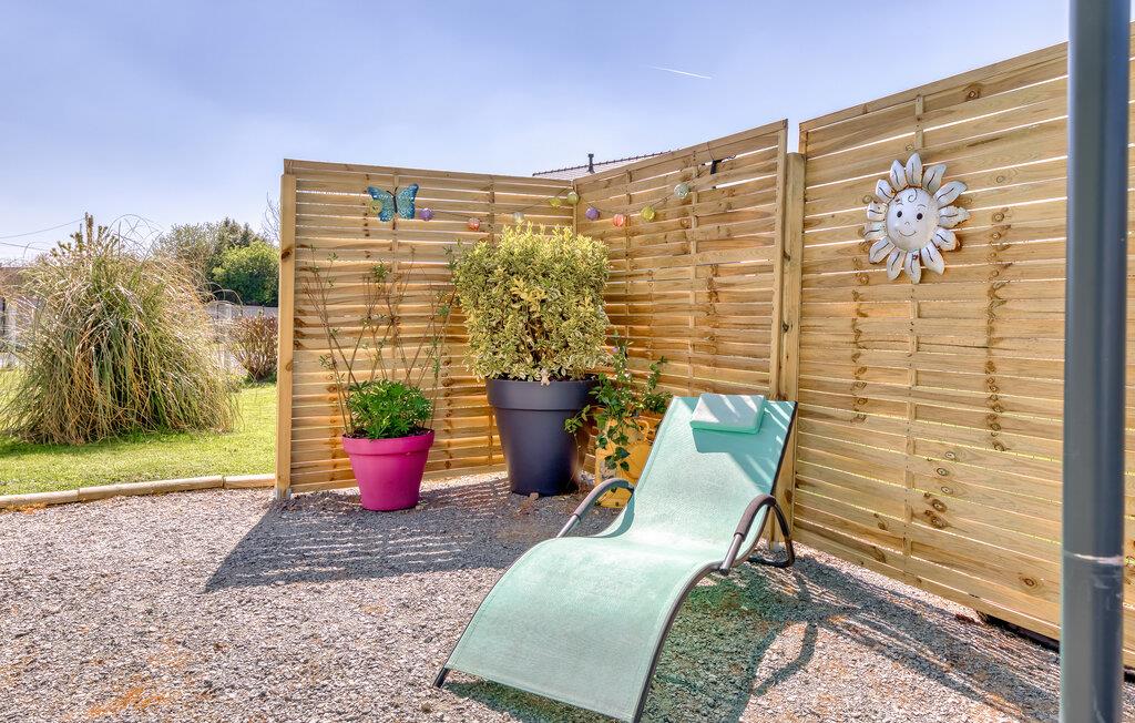 Gå ut av stuen og ut i hagen, og slapp av på terrassen med en kopp kaffe før du drar på utflukt eller til sjøen.
