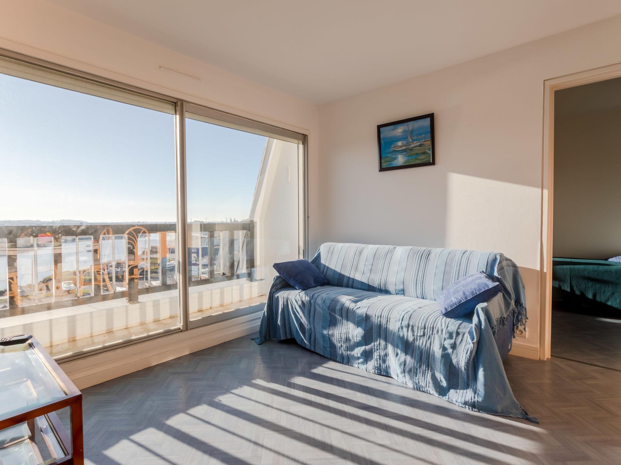 3-room apartment 65 m2 on 2 levels on 5th floor, west facing position. Living/dining room with 1 double sofabed (140 cm, length 190 cm), TV (flat screen), electric shutters. Exit to the balcony. 1 room with 1 bed (90 cm, length 190 cm). Kitchen (4 hot plates, oven, microwave, freezer, electric coffee machine). Sep. WC. Electric heating. Upper floor: 1 large room with 1 french bed (160 cm, length 200 cm), TV (flat screen). Exit to the terrace. Shower/WC. Large terrace 70 m2. Terrace furniture, deck chairs. Very beautiful view of the sea, the river and the port. Facilities: washing machine, iron. Internet (WiFi, extra). Parking space n 709 (roofed). Please note: smoke alarm.