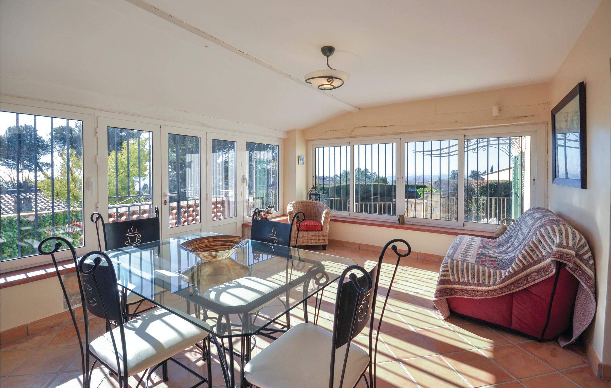 Du finner et smakfullt renovert feriehus oppe på en høyde, i en landsby med en fantastisk utsikt rundt. Det private bassenget, den vakre hagen og den overbygde terrassen gjør huset ideelt for velvære og avslapning. Du kan også nyte mange måltider utendørs mens du nyter den vakre utsikten. Interiøret er godt møblert og romslig og spesielt oversvømmet med lys. Noen få skritt unna til fots ligger sentrum av landsbyen, som er spesielt kjent blant malere og forfattere. Du er også bare en kort kjøretur fra Grasse, byen med gode parfymer. Det er hovedstaden for parfymeproduksjon. Litt lenger og du kommer til den spektakulære Saint Cassien-sjøen. Du finner en badestrand der. Antibes og Juan les Pins er også innen rekkevidde. Noen utmerkede golfbaner kan nås på mindre enn 30 minutter med bil, den nærmeste er mindre enn 10 minutter unna. I utkanten av landsbyen Cabris er det en tennisklubb hvor du kan spille om kvelden under flomlys.