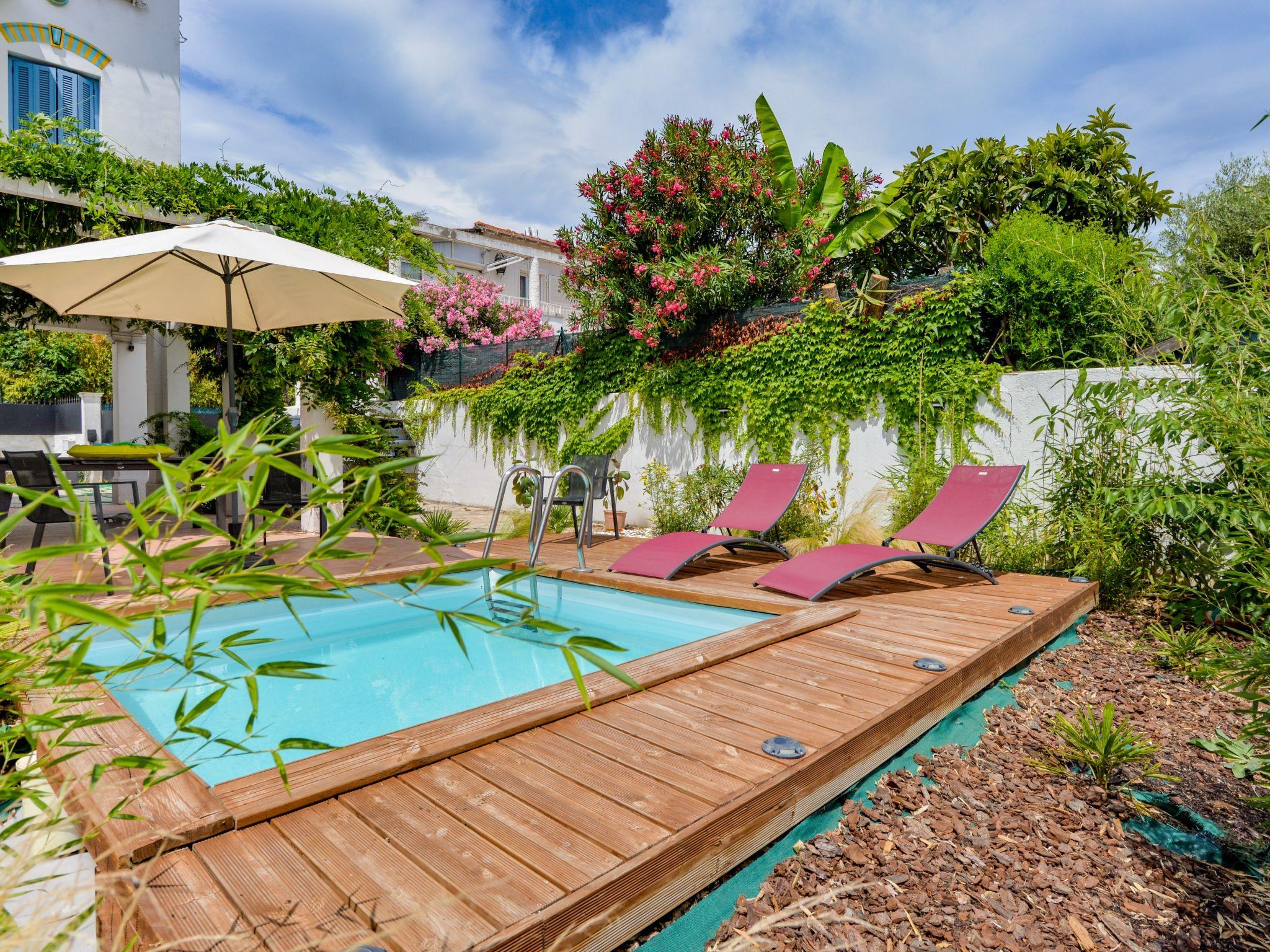 Mews "l'Olympe". In the district of CROS DE CAGNES, residential area (villas), excellent location: right in the centre but still quiet, 950 m from the sea, from the beach. For shared use: swimming pool (3 x 3 m, depth 150 - 150 cm, seasonal availability: 01.Jun. - 30.Sep.). Private: arbour (20 m2), garden furniture, barbecue, parking at the house. Grocery 900 m, supermarket, shopping centre 4 km, restaurant 950 m, bakery 900 m, bus stop 350 m, railway station "CROS DE CAGNES" 500 m, shingle beach. Sports harbour 1 km, sailing school 1 km. Nearby attractions: MARINELAND 6 km, château GRIMALDI 3 km, musée Renoir 3 km, complexe commercial CAP 3000 4.2 km. Please note: the owner lives on the same property.