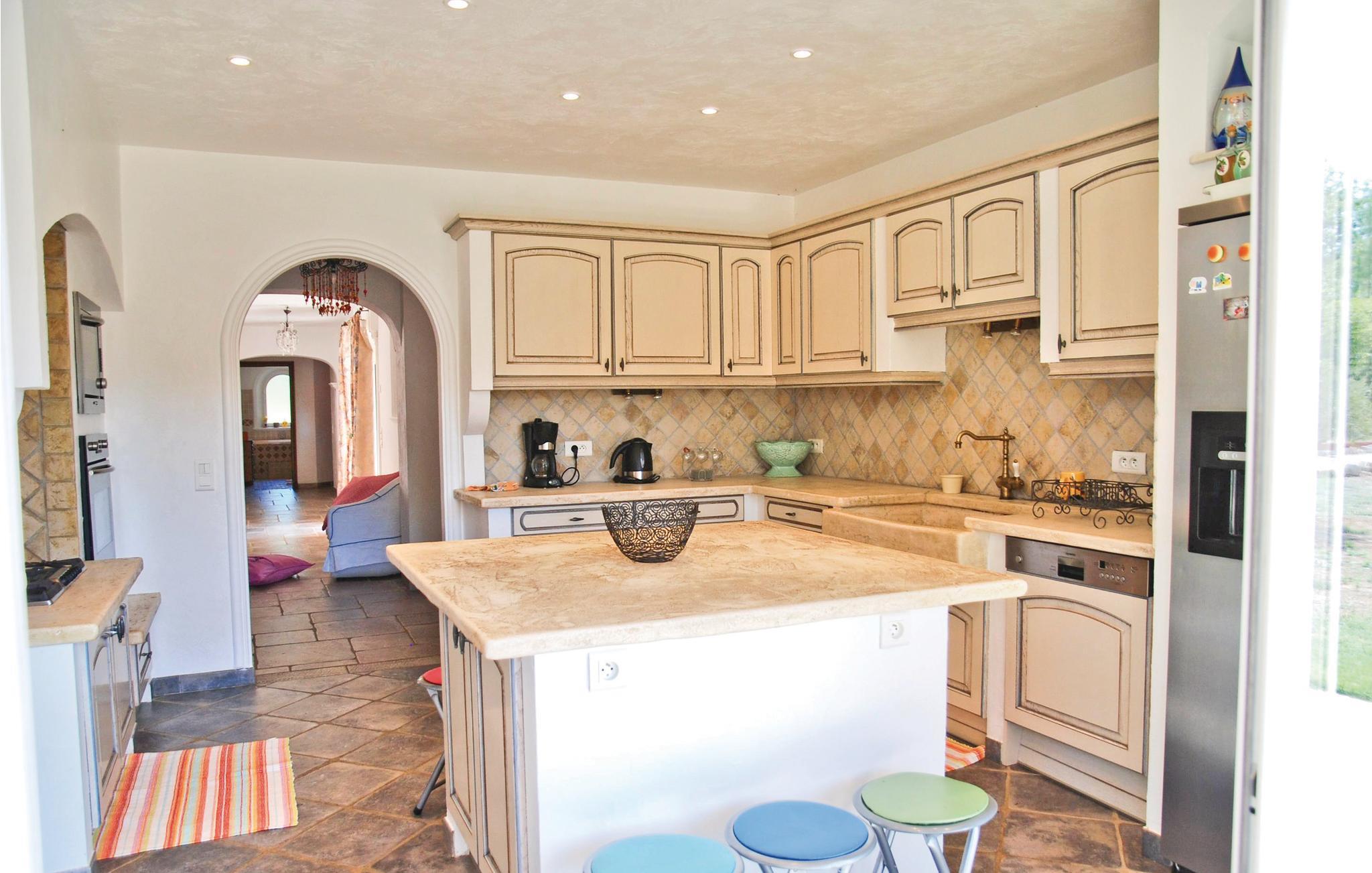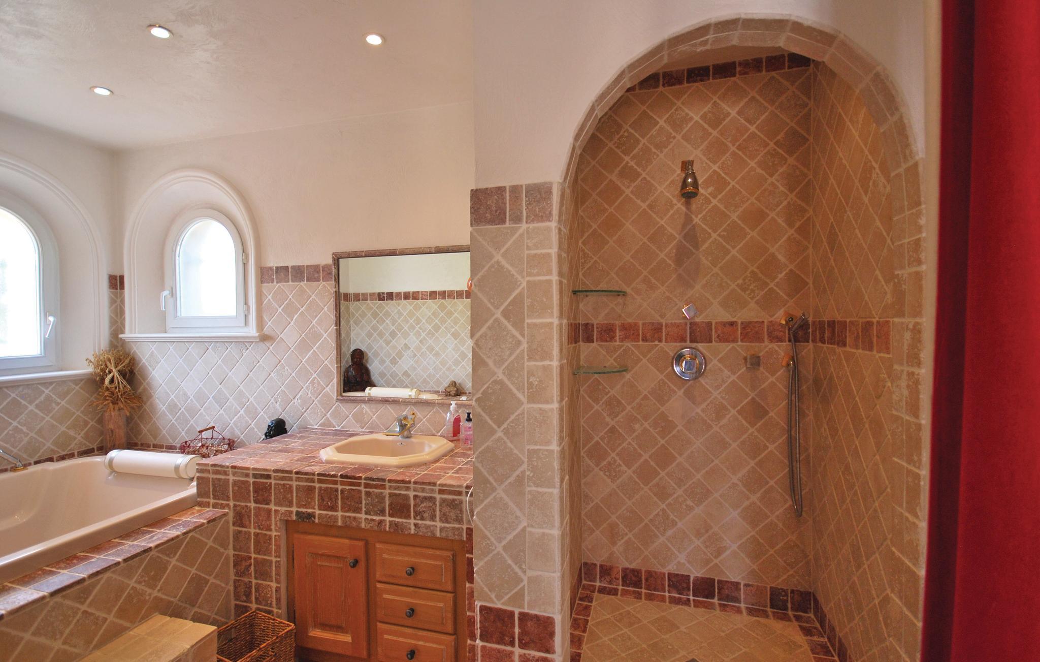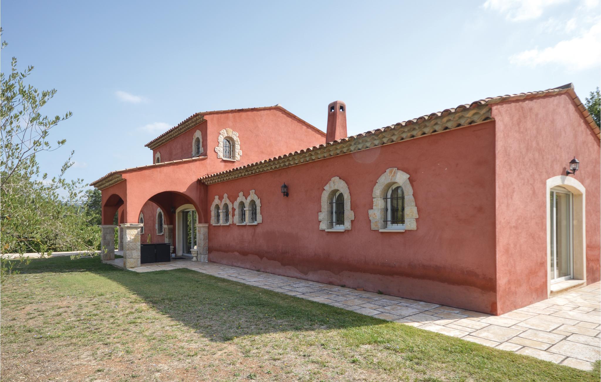 Denne middelhavsvillaen i en varm rød farge og med mange runde buer som understreker den opprinnelige konstruksjonen, åpner dørene for deg på en enorm tomt like utenfor en sjarmerende landsby. En imponerende peis i en 80 m² stor salong samt et åpent og fullt utstyrt kjøkken, sammen med en delvis overbygd terrasse i stil med en bakkegang og et nesten overdimensjonert, inngjerdet basseng, gjør denne eiendommen til en av dine vakreste feriedestinasjoner noensinne. Romslige rom med nøyaktig utvalgte møbler er fordelt rundt den romerske trappen, som tar deg til en liten øverste etasje. Vakre fliser pryder størstedelen av huset, mens den gjenværende delen har et smakfullt parkettgulv. Callian ligger bare noen få kilometer fra Fayence og ikke langt fra Cannes og Litoral. Huset er beskyttet av en elektronisk port, og ligger i landlige omgivelser godt 2 km utenfor landsbyen.