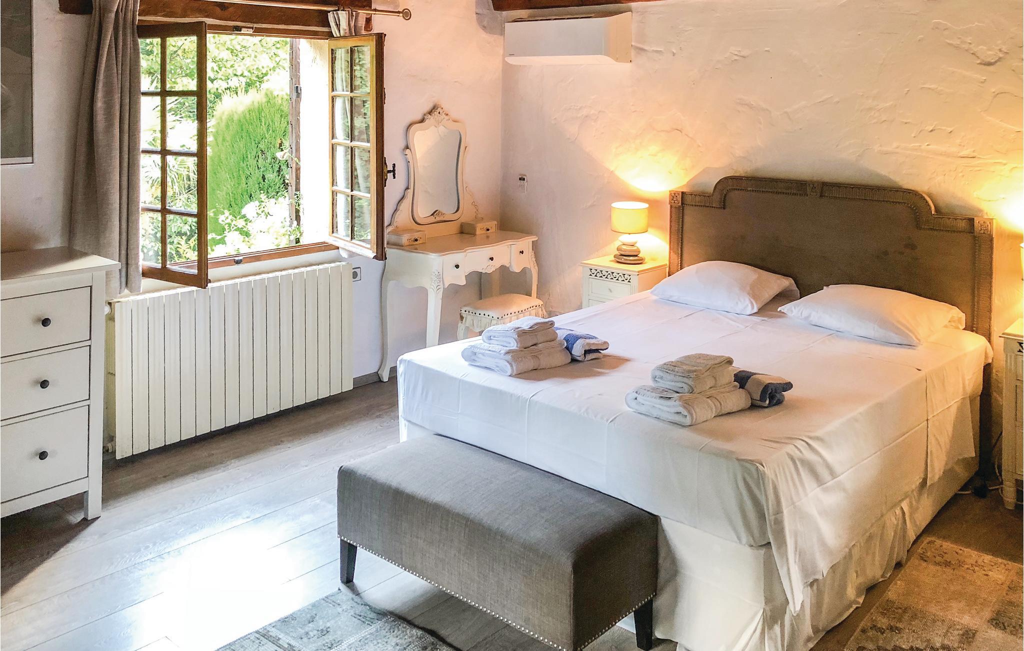 Dette vakre feriehuset med oppvarmet privat basseng ligger i Callian, og inviterer deg til en fantastisk ferie i Var. Huset har nok plass til opptil åtte gjester, som kan se frem til et elegant, koselig og lyst interiør og vil finne god plass til å slappe av og slappe av. Den store, grønne hagen så vel som det fantastiske svømmebassenget gir de beste forholdene for å dra nytte av det milde klimaet og solen i Provence. Under din spasertur gjennom de trange gatene i Callian vil du helt sikkert passere slottet og den vakre kirken Notre-Dame-de-l'Assomption. Naturen i kløften i Haute-Siagne ligner en postkortidyll, og den sjarmerende landsbyen Montauroux i umiddelbar nærhet er også verdt en tur. Noen kilometer unna kan du oppleve Pont des Tuves. Denne gamle broen er et magisk sted. Lac de Saint-Cassien er en vakker badesjø der du også kan velge mellom ulike vannsportsaktiviteter, og hvis du vil ha et adrenalinkick, kan du ta en tur i et seilfly fra flyplassen i Fayence. Golfere kan dyrke sin hobby på den vakre golfbanen Terre Blanche. Nyt et glass vin ved bassenget eller på den romslige terrassen mens barna leker i hagen. Med denne innkvarteringen som base kan familieferien din i Var bare lykkes.