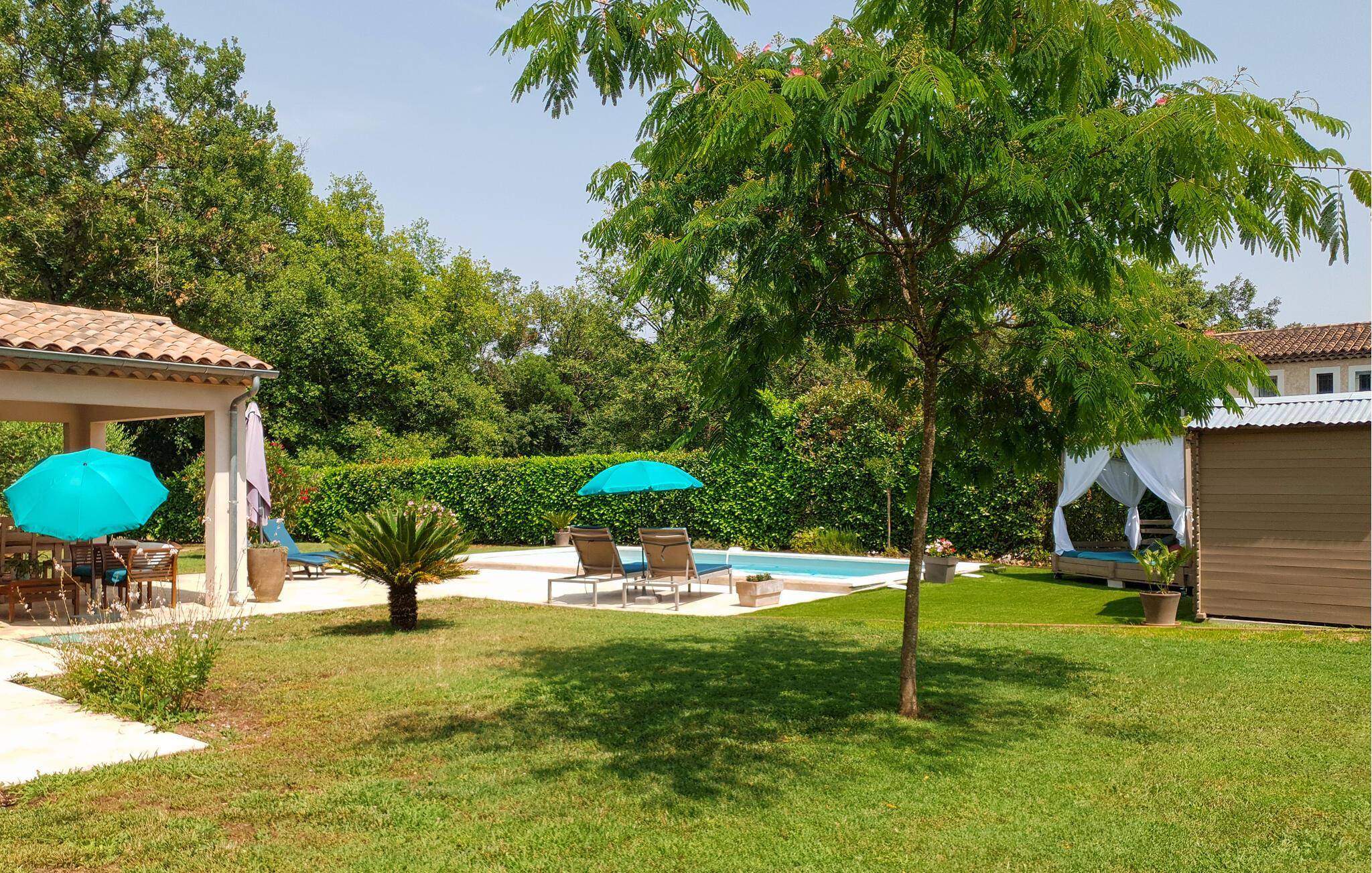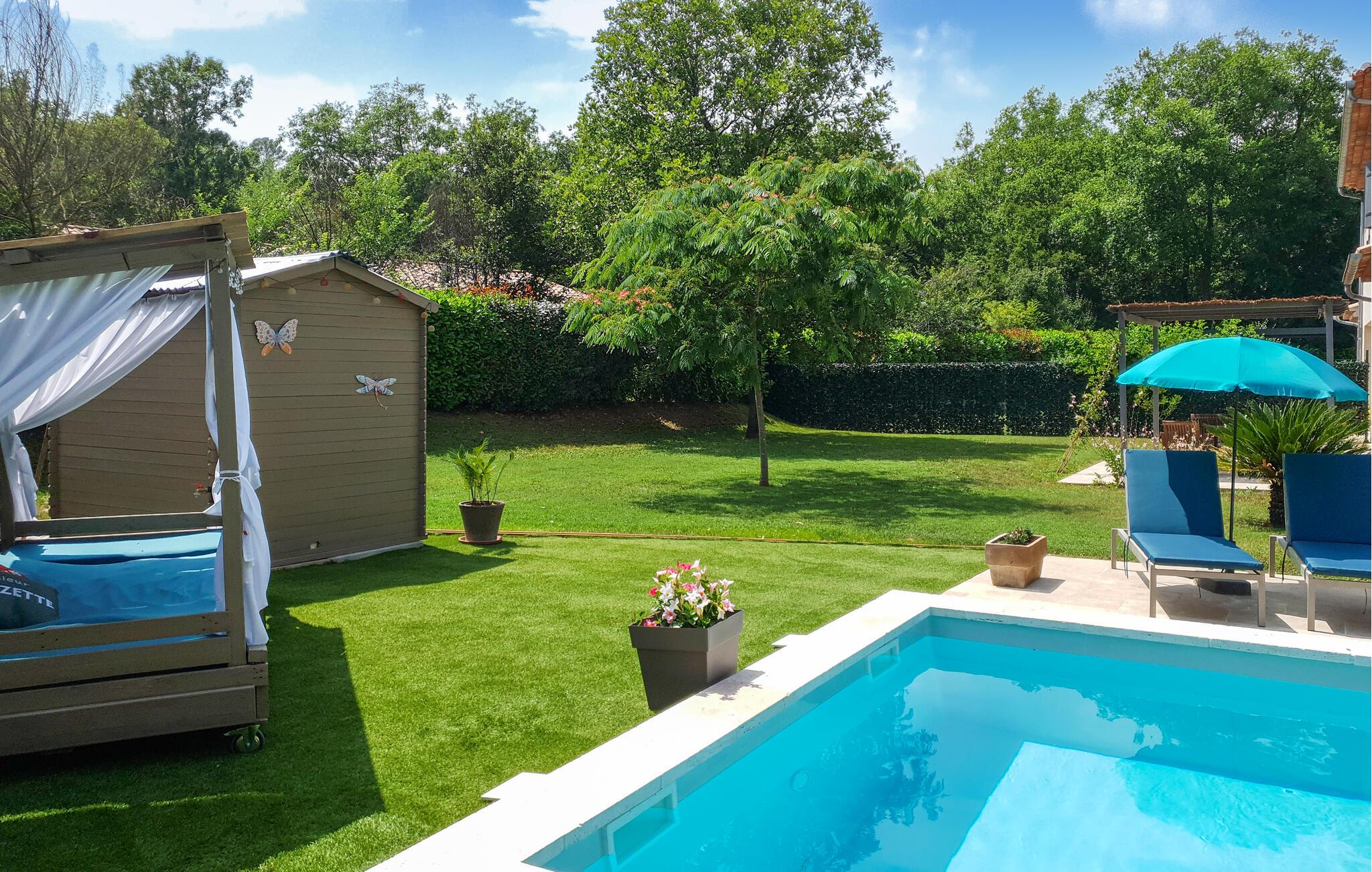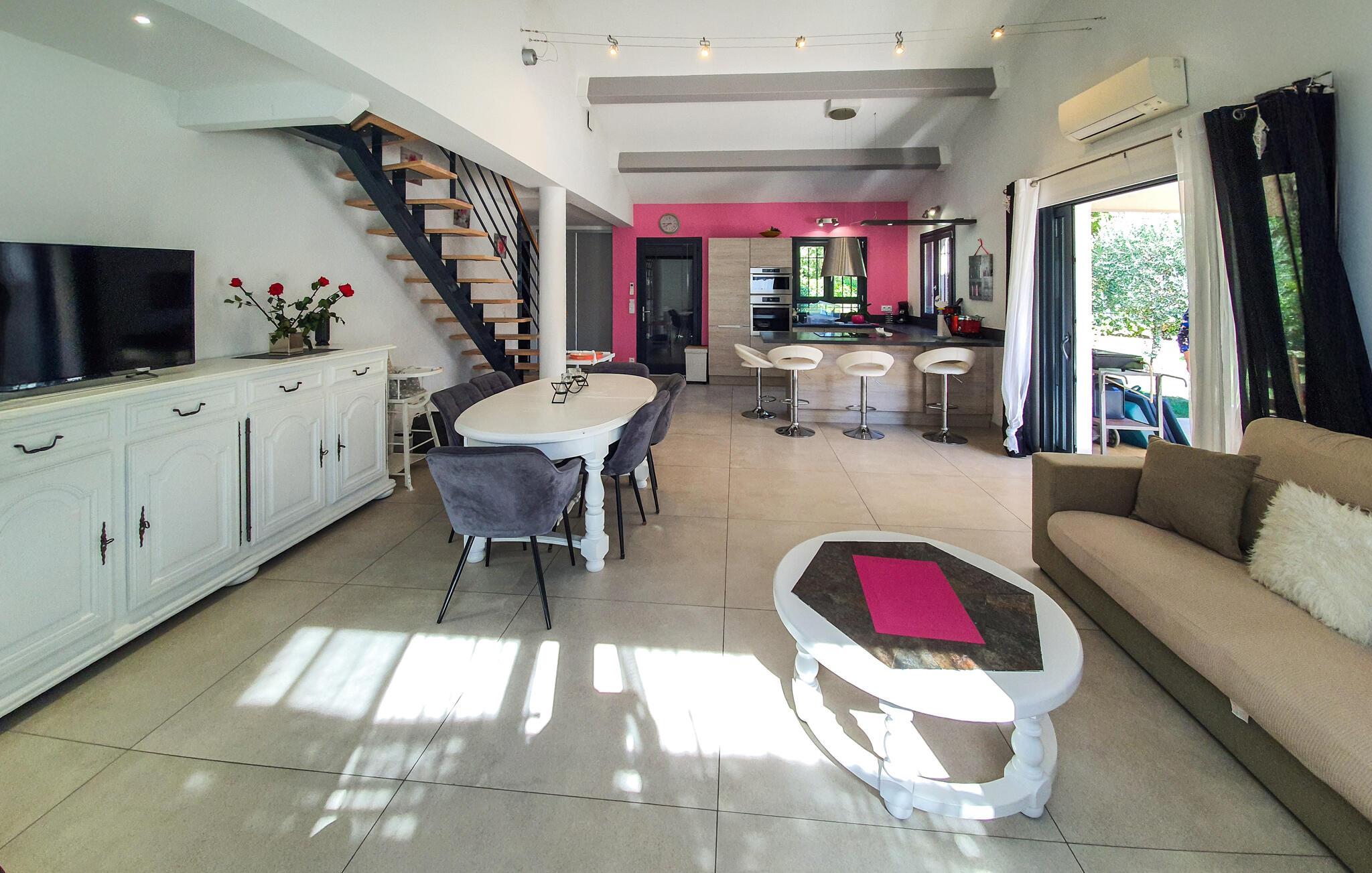 Nydelig feriehus med privat basseng. Huset ligger i Callian, bare 33 km fra Cannes og dens paradisiske strender. Det er moderne og, takket være den svært romslige utformingen, ideell for en familie på flere personer eller en ferie med flere venner. Hvis du leter etter en rolig base for ferien din, er dette stedet for deg. Avkjøl deg i bassenget og slapp av i hagen eller på terrassen. Selvfølgelig har du en grill til din disposisjon, og din firbente venn vil helt sikkert føle seg hjemme i det romslige uteområdet. Callian, med sine solfylte smug, er et nydelig utfluktsmål i umiddelbar nærhet. Opplev kløftene i Haute Siagne og besøk Fayence med sin saracenske port og et fantastisk dalpanorama. Ved Lac de Saint-Cassien venter et stort utvalg av vannsportsaktiviteter, og innsjøen er også et herlig sted for piknik. I tillegg til strendene tiltrekker Cannes seg også besøkende med den berømte Boulevard de la Croisette og et gammelt sentrum, Le Suquet. Saint-Raphaël har også vakre sandstrender og er et livlig reisemål når som helst på året. Bestill dette fantastiske feriehuset med privat basseng raskt og se frem til en uforglemmelig ferie i Var.