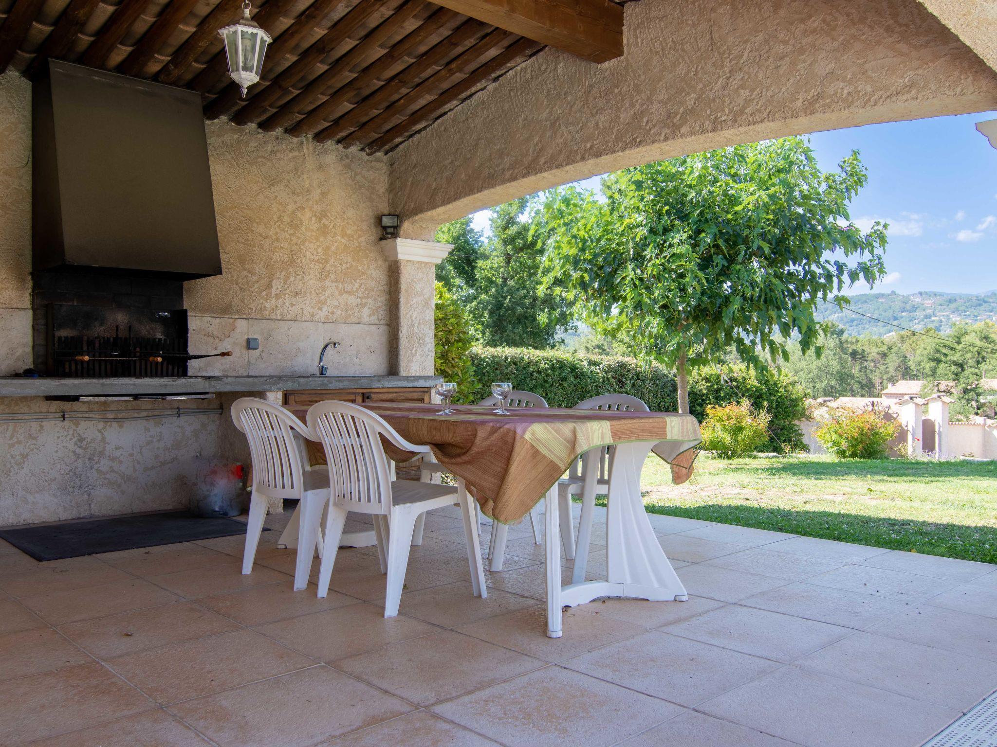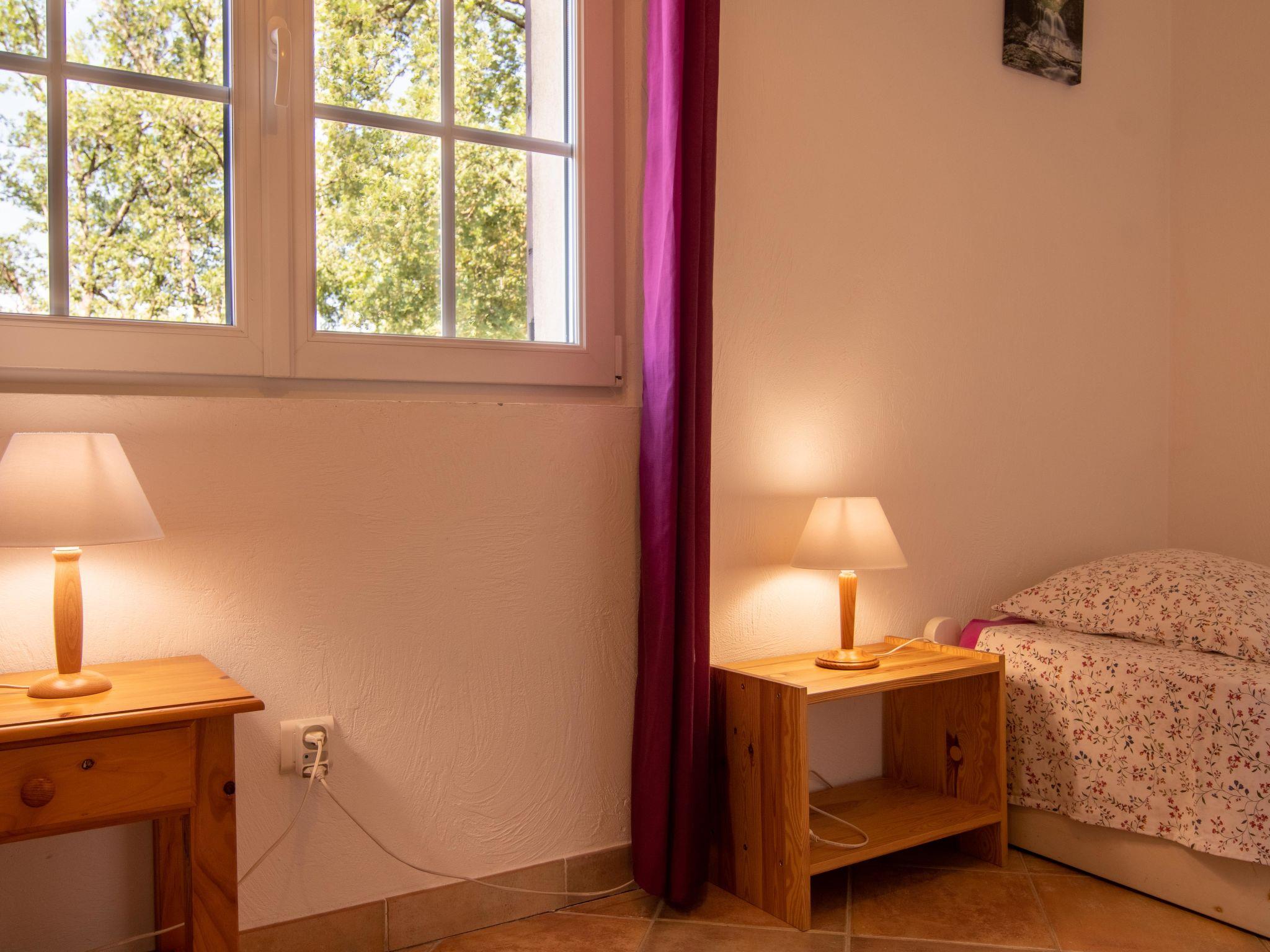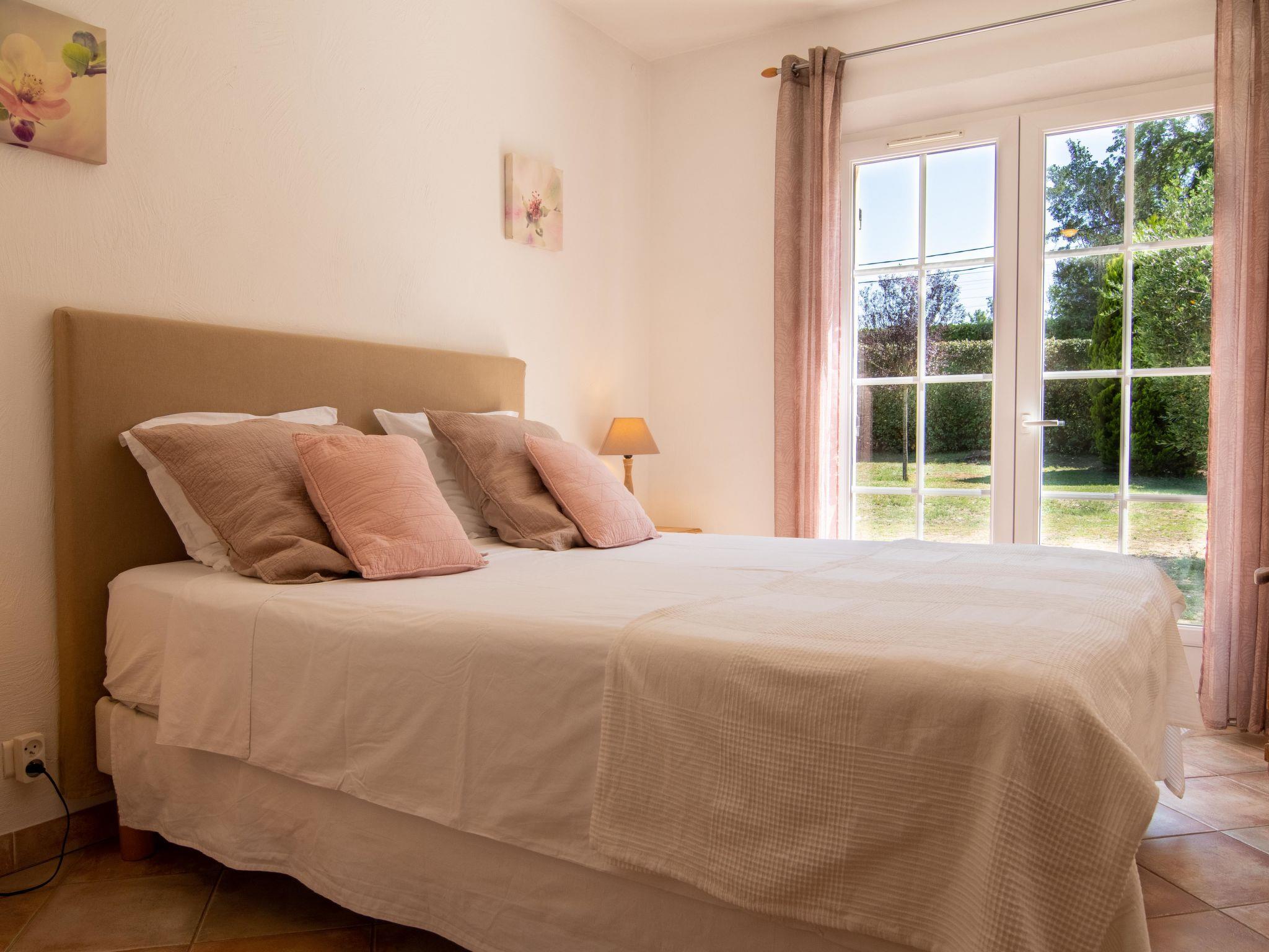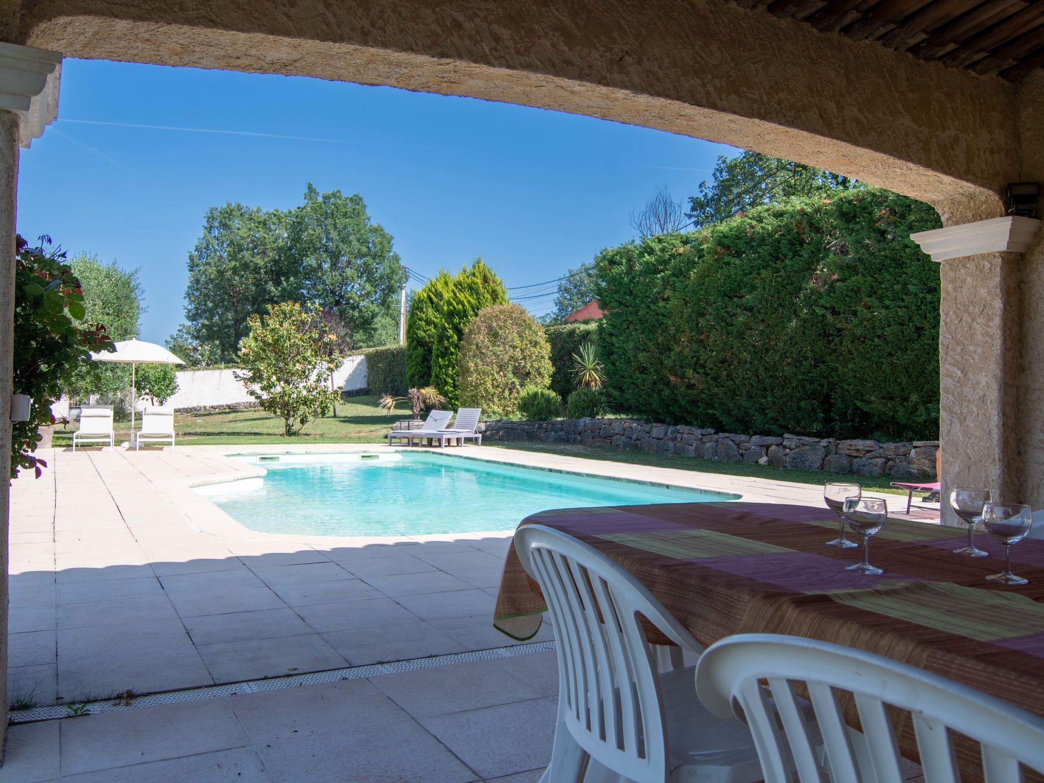 Beautiful, rustic, comfortable cottage "Gaïa", surrounded by trees and meadows. 3 km from the centre of Callian, 6 km from the centre of Fayence, 36 km from the centre of Cannes, in the residential district, 26 km from the sea. Private: large terraced garden, 3'000 m2 (fenced) with lawn and trees, swimming pool (11 x 5 m, depth 90 - 200 cm, seasonal availability: 01.Jan. - 31.Dec.) with internal staircase and alarm system. Unconventional pool shape. Pool house, terrace, garden furniture. Motor access (100 m via unmade road). (10 steps). Parking (for 4 cars) on the premises. Shop 3 km, bus stop 800 m, railway station "Cannes" 39 km, sandy beach "Mandelieu" 26 km. Golf course (18 hole) 3.5 km. Nearby attractions: Aérodrome de Fayence 6 km. Well-known lakes can easily be reached: Saint Cassien 7.5 km.