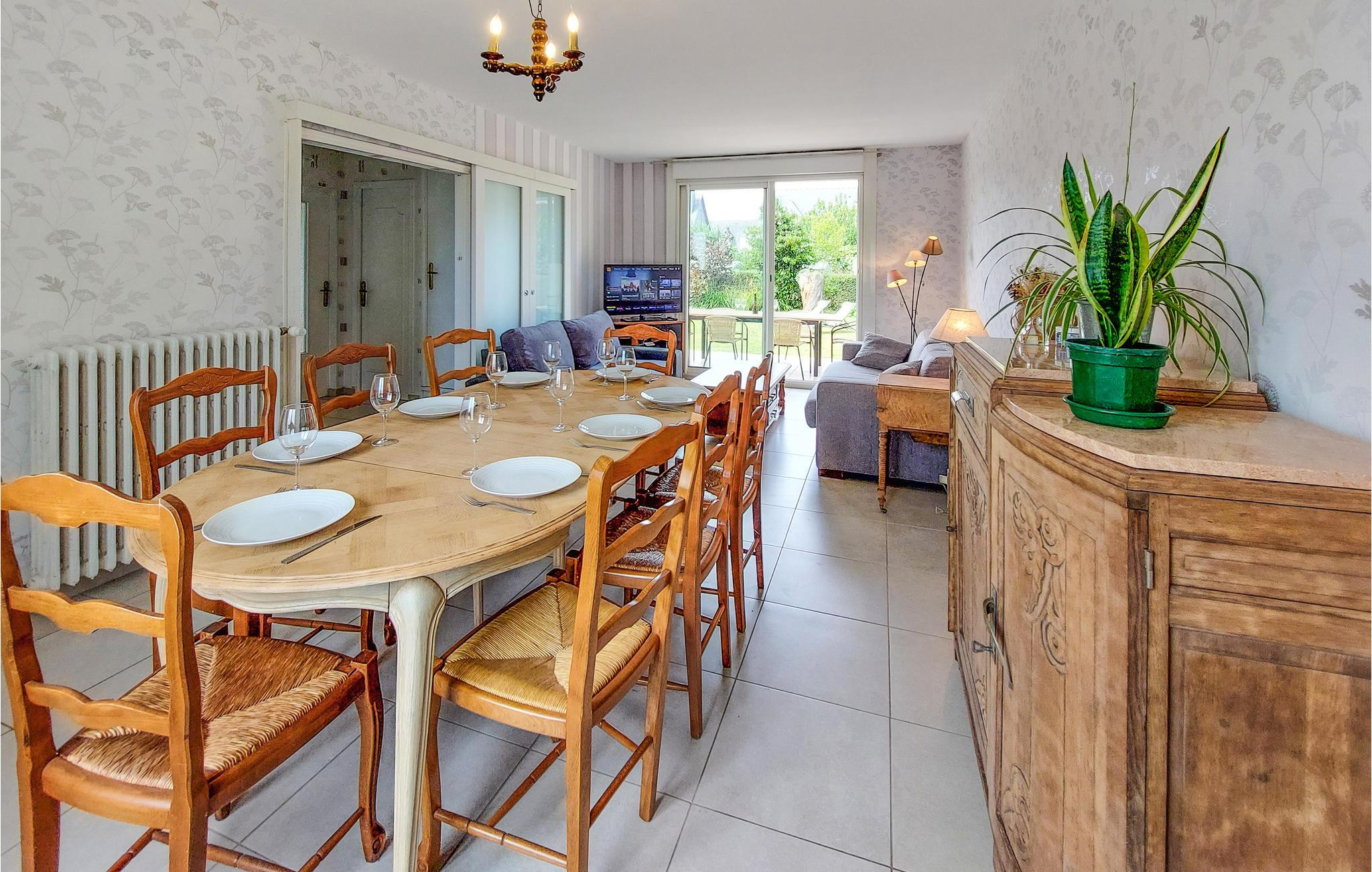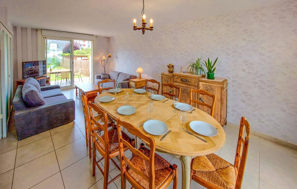 Her kan du slappe av med familien i attraktive omgivelser. Det vakre huset venter på deg ikke langt fra sjøen. De lyse rommene og den hjemmekoselige innredningen gjør det til det ideelle stedet for en hyggelig ferie, også for den store familien. Bruk huset som base for en herlig strandferie med utforsking av Bretagne. Sett deg godt til rette ved spisebordet etter en uforglemmelig dag, nyt utsikten over hagen mens dere spiser sammen eller slapp av i den koselige sofaen.