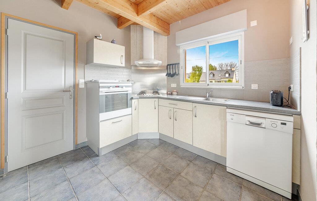 Her kan du slappe av i hyggelige omgivelser. Det vakre huset venter på deg ikke langt fra sjøen. Med sine lyse rom og koselige møblering er det det ideelle stedet for en herlig ferie, selv med en større familie. Bruk huset som base for en herlig strandferie med utforsking av Bretagne. Etter en uforglemmelig dag kan du sette deg til rette ved spisebordet eller slappe av i de koselige sofaene.