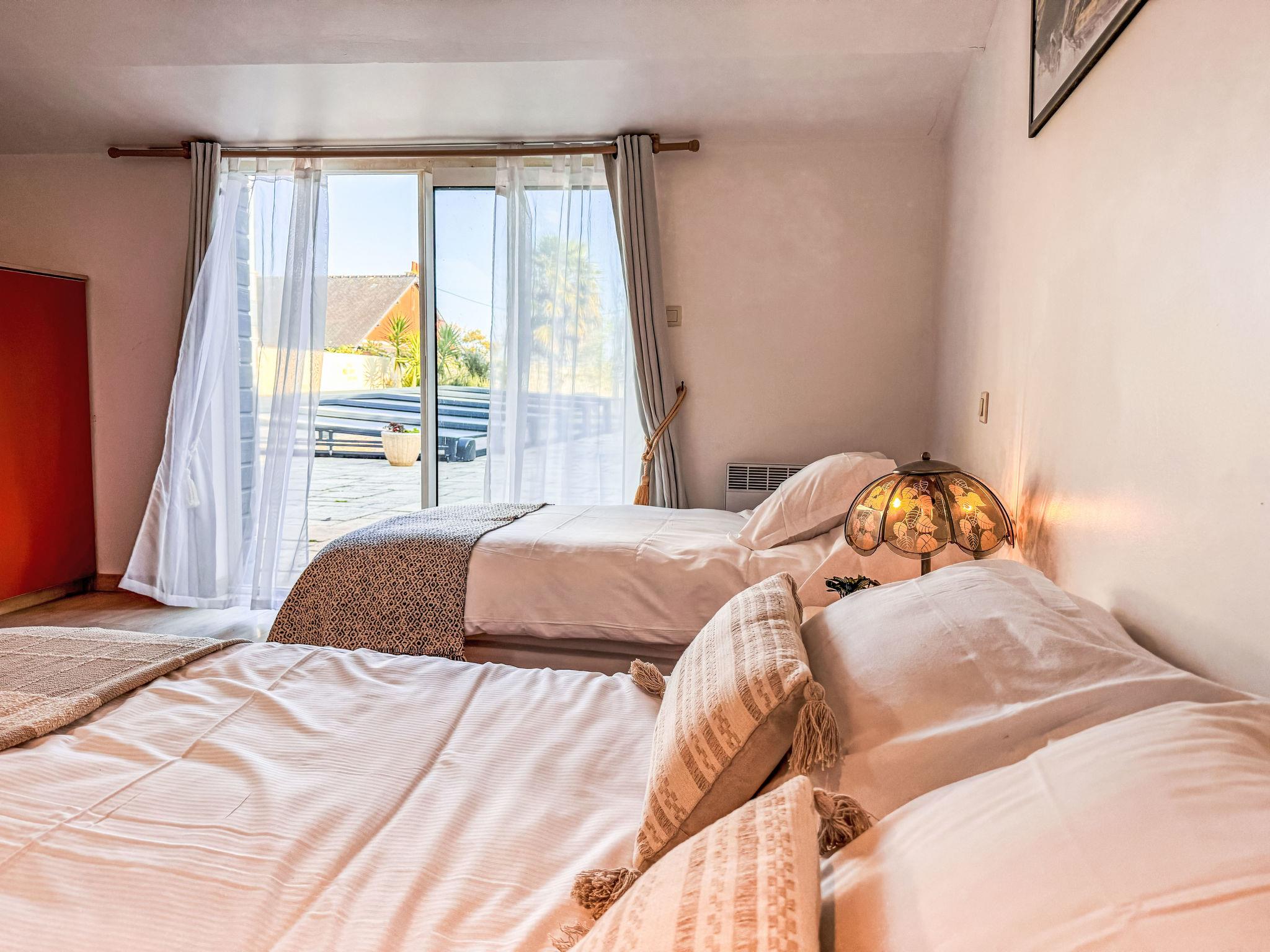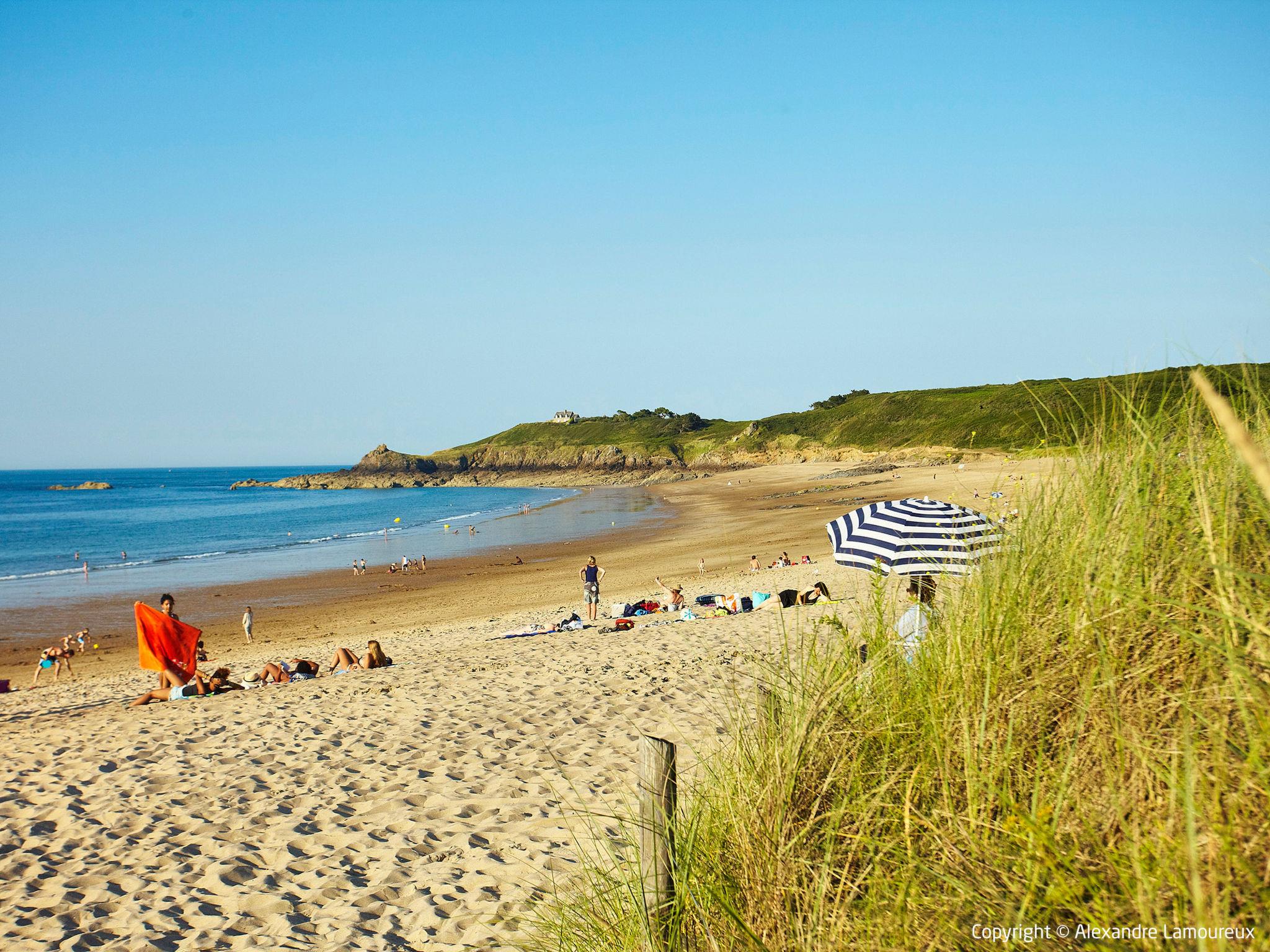 Comfortable single-family house "La houle", 2 storeys. In the district of la Houle, residential area (villas), excellent location: right in the centre but still quiet, traffic calmed area, 900 m from the sea, 900 m from the beach. Private: well-kept garden 1'000 m2 (fenced) with lawn and trees, swimming pool, indoor pool kidney shaped, secured (11 x 6 m, depth 80 - 200 cm, seasonal availability: 01.May. - 01.Sep.) with shutter cover. Terrace (100 m2), garden furniture, barbecue, pool maintenance by the owner/gardener. In the house: washing machine, drying room. Parking on the premises. Grocery 750 m, shopping centre 1.5 km, restaurant 900 m, bar 850 m, bakery 750 m, 5 minute walk to the centre, bus stop 850 m, sandy beach "port de Cancale" 900 m (small), thermal baths "Thermes marins de St Malo" 15 km. Nearby attractions: Grand aquarium de St Malo 18 km, Dinan 35 km, Dinard 22 km, Dol de bretagne 21 km, Le Mont St Michel 47 km, Saint Malo intramuros 16 km.