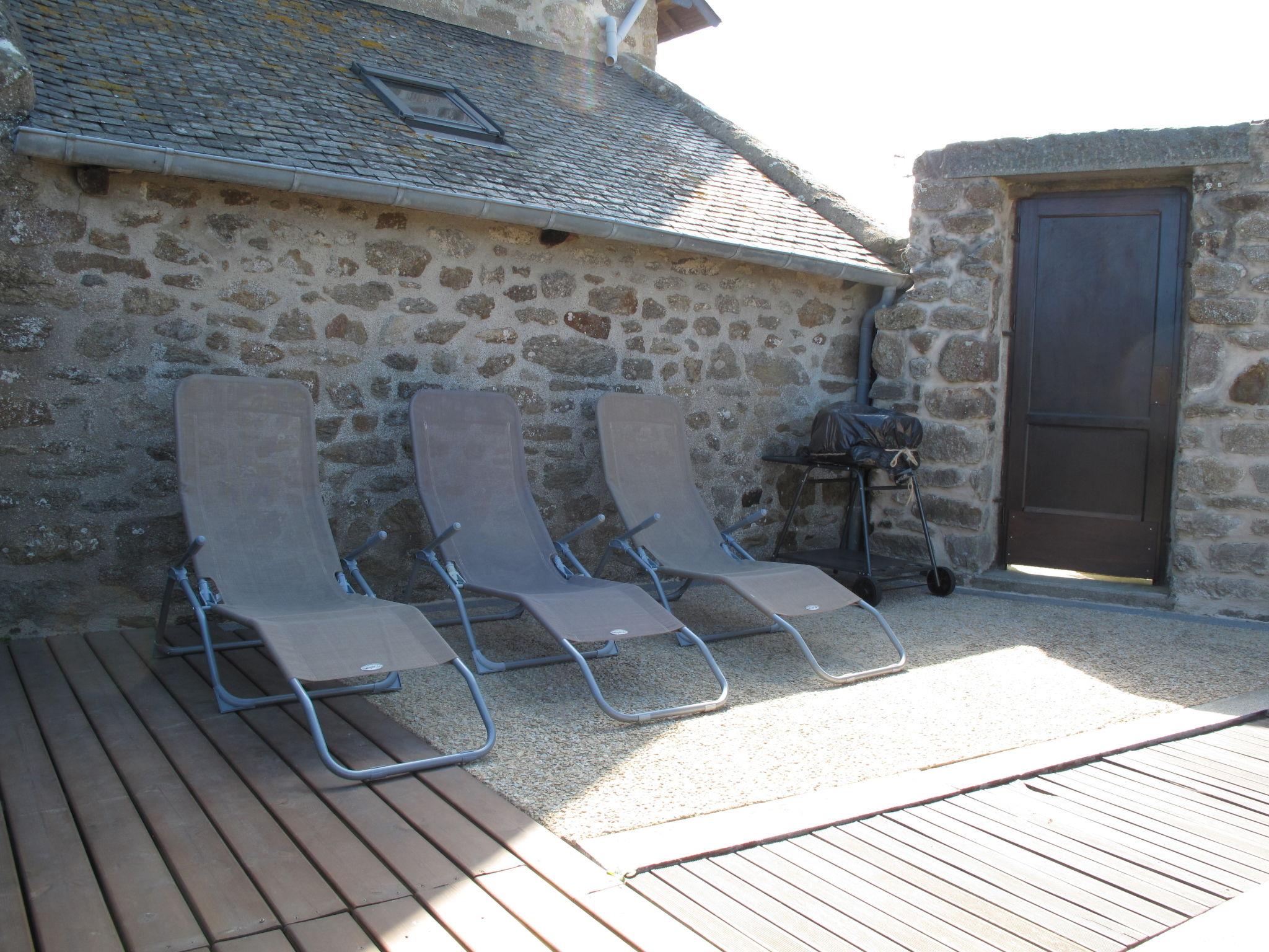 "Les Quatrevais", 3-room house 75 m2 on 2 levels. Comfortable and beautiful furnishings: living/dining room with dining table and satellite TV (flat screen). Exit to the terrace. Open kitchen (oven, dishwasher, 4 ceramic glass hob hotplates, toaster, kettle, microwave, electric coffee machine). Sep. WC. Upper floor: 2 rooms with sloping ceilings, each room with 2 beds (90 cm, length 200 cm). Shower/WC. Electric heating. Terrace, south-east facing position terrace, north-west facing position. Terrace furniture, barbecue (portable), deck chairs (4), sitting area, box-room. Facilities: washing machine, dryer, children's high chair. Internet (WiFi, free). Please note: non-smoking house. Smoke alarm.