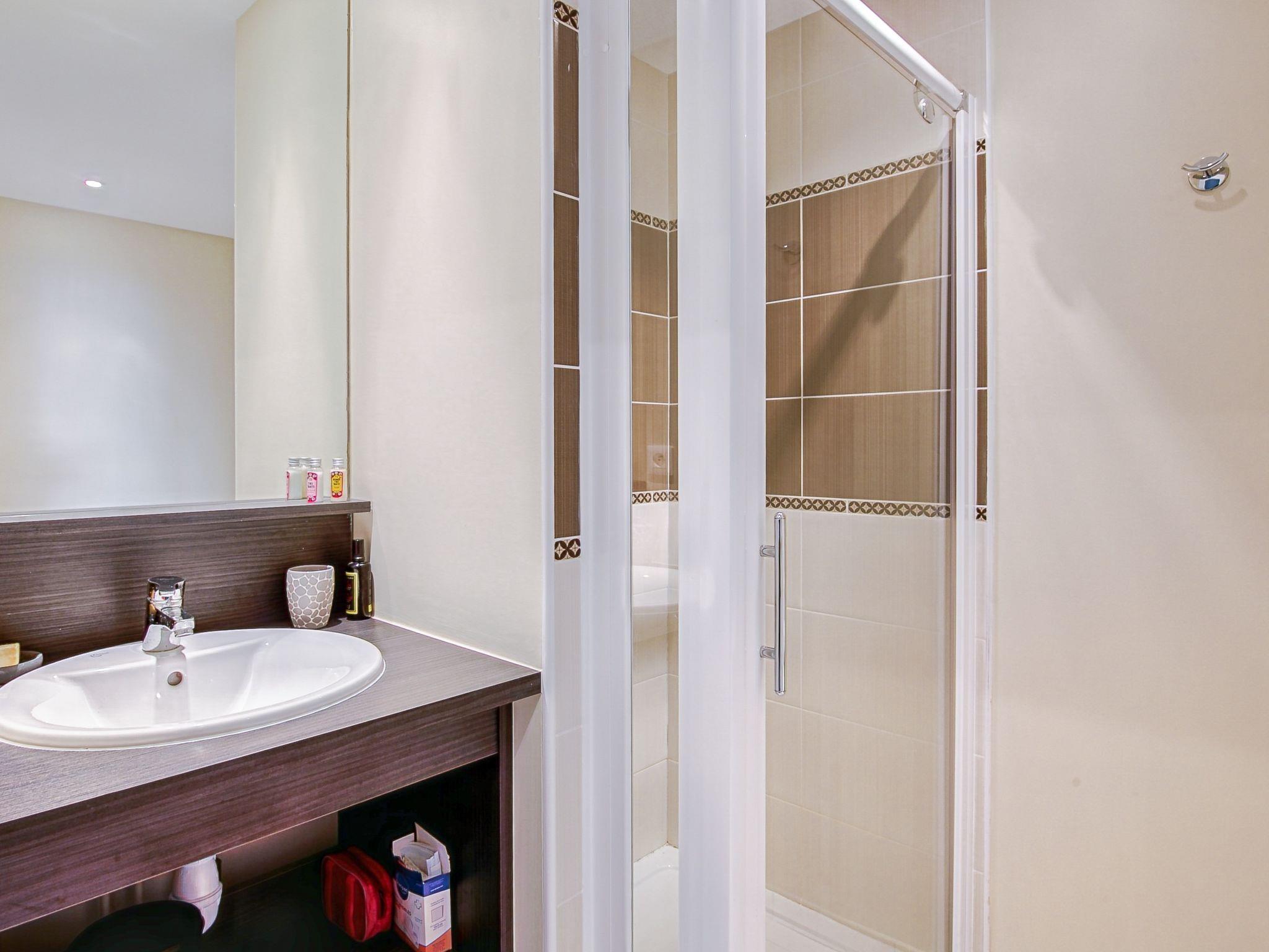 2-room apartment 43 m2, on the ground floor. Bright, beautiful and modern furnishings: living/dining room with panoramic window with 1 double sofabed (1 x 140 cm, length 190 cm), TV, flat screen and electric shutters. Exit to the terrace. 1 room with 1 french bed (1 x 140 cm, length 190 cm). Open kitchen (oven, dishwasher, 3 induction hot plates, toaster, kettle, microwave, electric coffee machine, Capsules for coffee machine (SENSEO) extra). Shower/WC. Electric heating. Terrace 13 m2, small patio 42 m2. Terrace furniture, barbecue. Distant view of the sea. Facilities: baby cot. Internet (WiFi, free). Parking. Please note: smoke alarm. FR3528.870.1