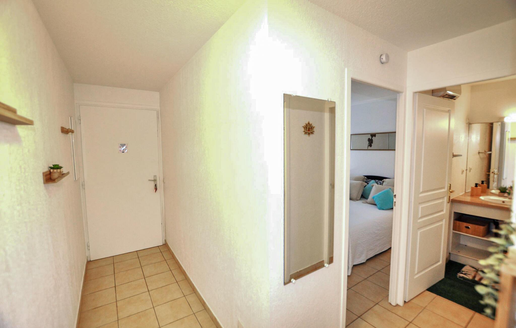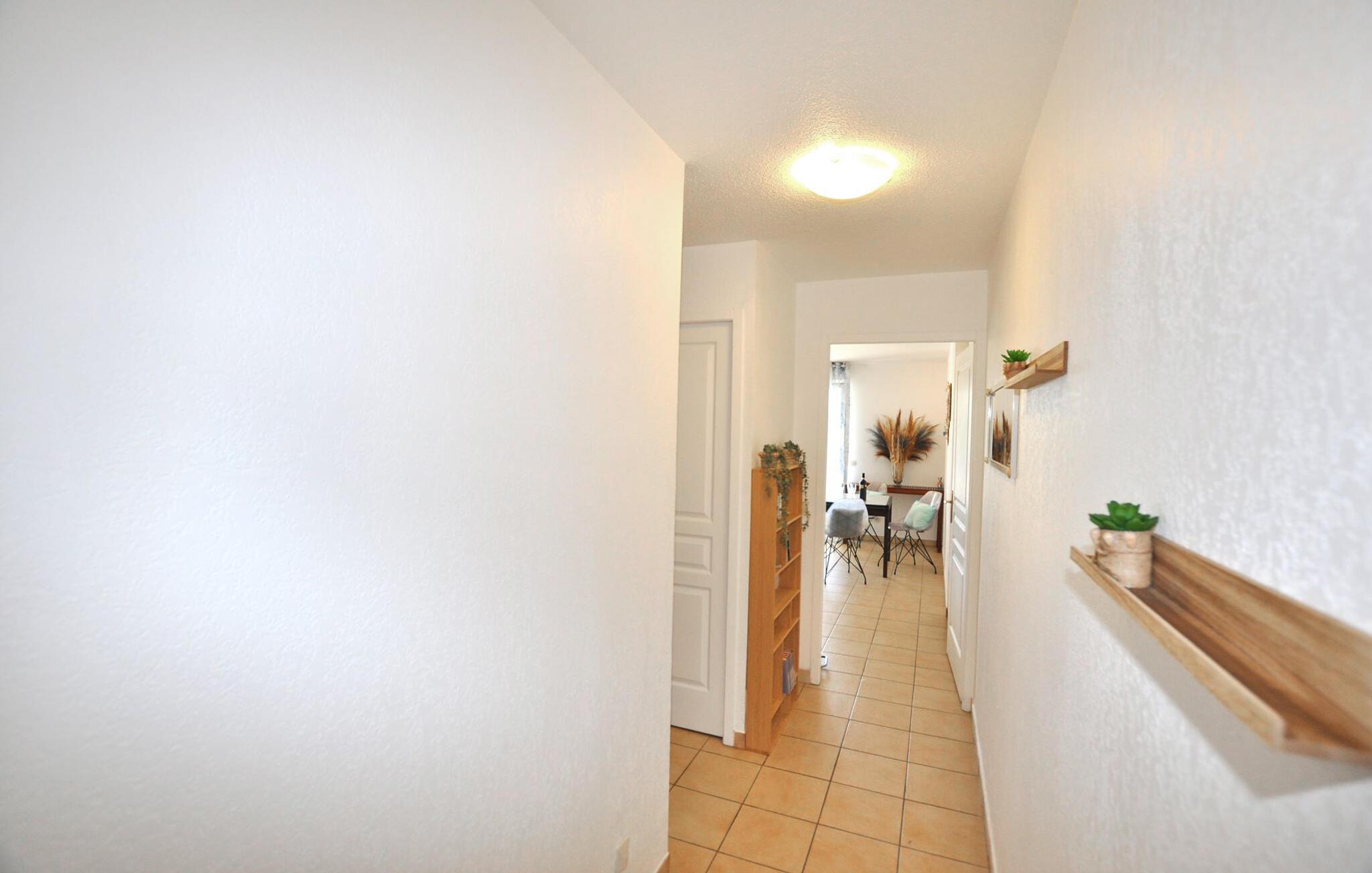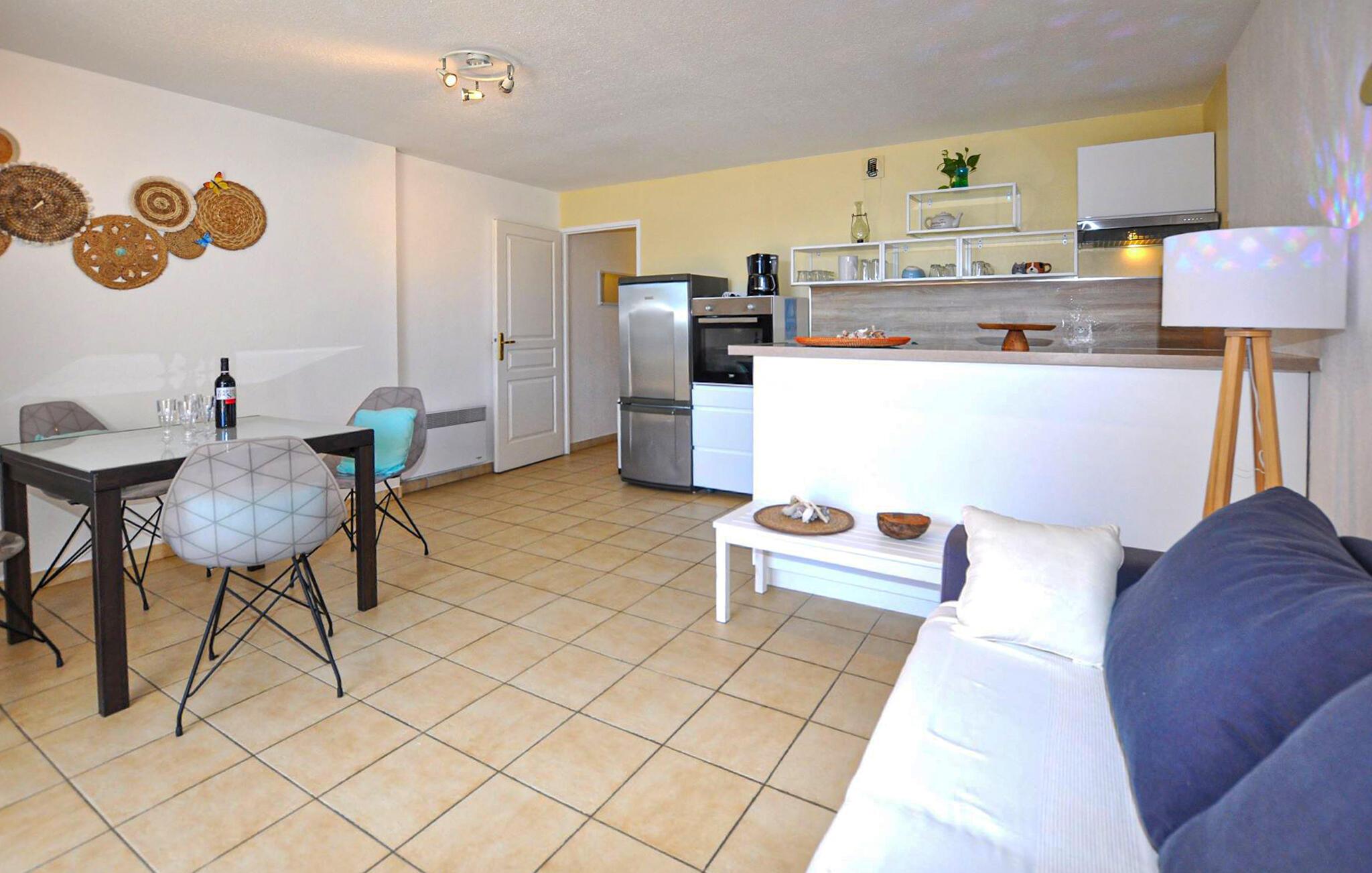 Ikke langt fra vakre strender ved Middelhavskysten, inviterer denne hyggelige ferieleiligheten deg til å tilbringe avslappende dager borte fra hverdagen. Unn dine kjære deilige retter laget av regionale råvarer, og planlegg aktivitetene dine ved det innbydende spisebordet. Sett deg godt til rette i sofaen etter en lang dag, fordyp deg i ferielesning eller slapp av med et brettspill.