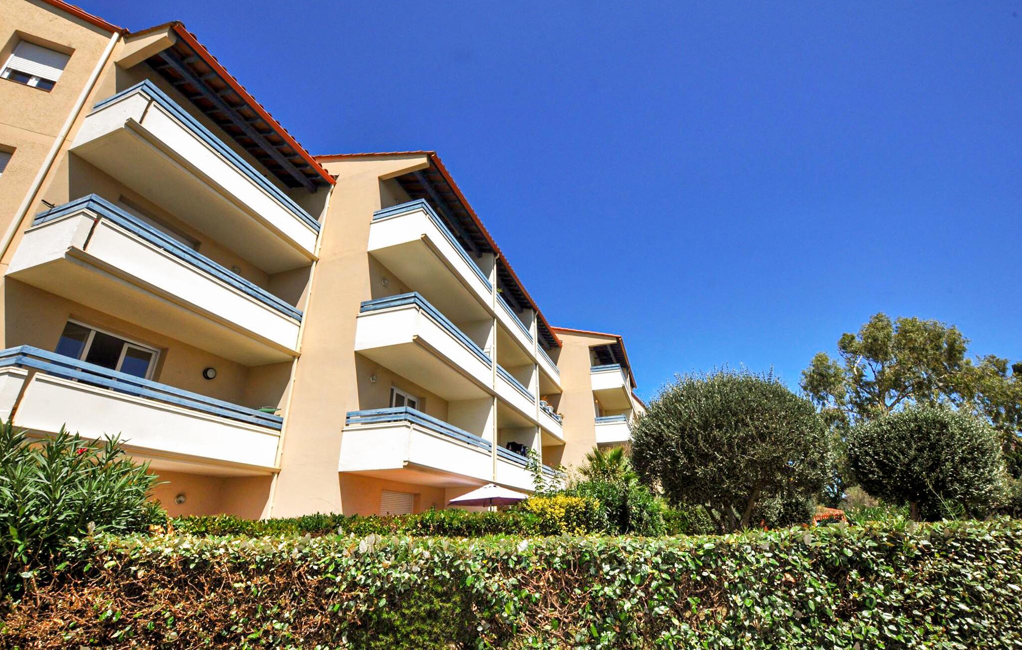 Nyt en solrik strandferie i denne sjarmerende ferieleiligheten med tilgang til bassenget.