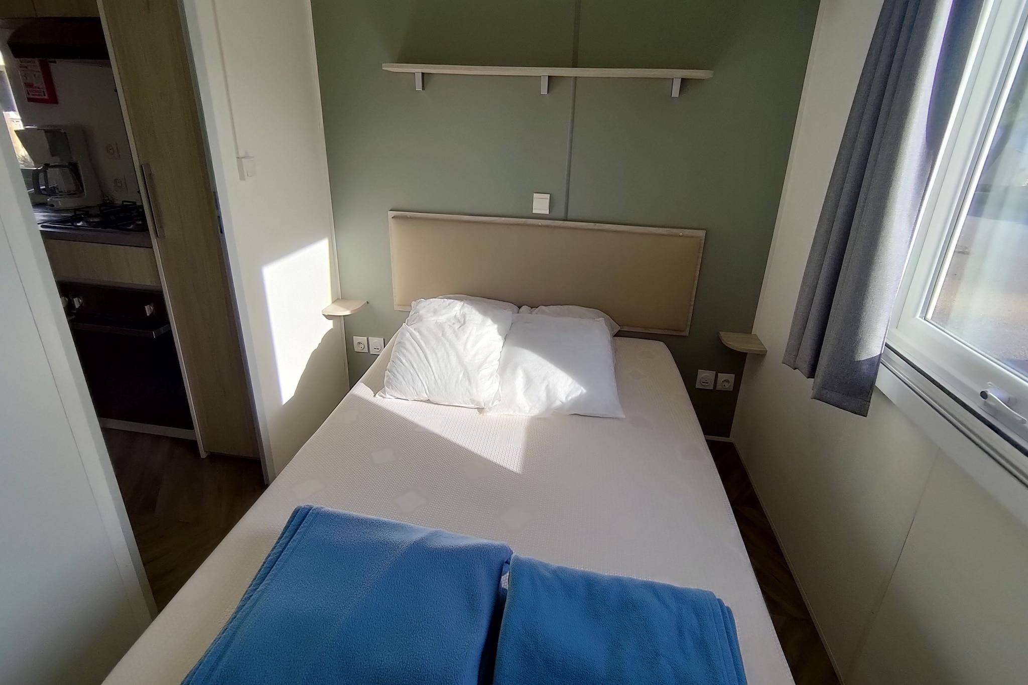 Bo med familien din i denne komfortable bobilen ved sjøen i Canet-en-Roussillon. Her kan du nyte fritidsaktiviteter som badeland mens barna koser seg på ferieparkens lekeplass. Det er noe for enhver smak i denne utrolige ferieparken. Denne husvognen har 3 soverom og sovesofa, et velutstyrt kjøkken og et bad. Det ligger i en feriepark som strekker seg mellom Middelhavet og Etang du Canet, og tilbyr over 9 km med fin sandstrand. Det er tennisbane, boulebane, fotballbane, boblebad, trampoline, bordtennis, brettspill og leker. Hvis du ønsker det, kan du leie et valgfritt pass for å nyte parkens praktfulle bassenger. South Beach, den nærmeste av alle strendene, ligger bare 500 meter unna. En restaurant, supermarked og bakeri ligger bare et lite stykke unna. Etang de Canet Saint-Nazaire er et paradis for naturelskere, et eksepsjonelt verneverdig sted, et favorittsted for rosa flamingoer om sommeren, men også hjem til over 200 fuglearter og en spesielt rik flora. Ikke gå glipp av et besøk til fiskeværet og oppdagelsesstien langs bredden av innsjøen (terrengsykkelturer, treningssti). Med denne komfortable bobilen mellom himmel og hav, vil du nyte en ferie full av farger og minner.