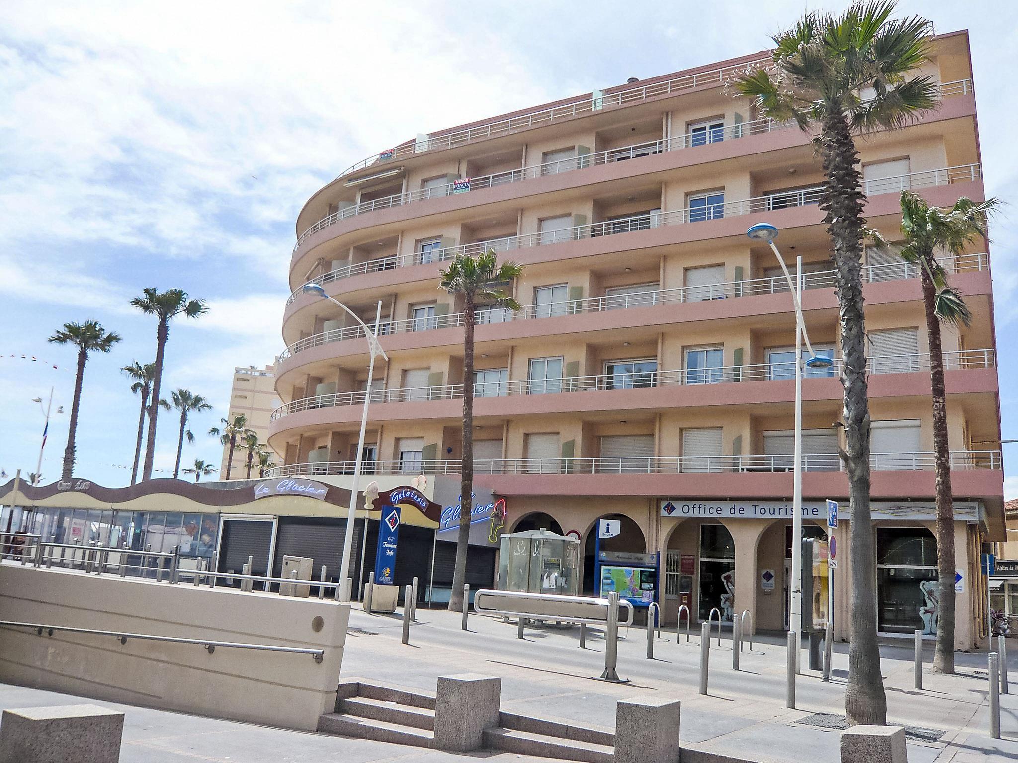 Canet Plage: Residence "Le Régent", 6 storeys. In the district of la place de la Méditerranée, in the centre of Canet Plage, 100 m from the sea, 100 m from the beach. In the complex: lift. Public parking 220 m. Shop, grocery 50 m, shopping centre 8 km, restaurant, bar 50 m, bakery 200 m, bus stop 50 m, railway station "Perpignan" 12 km, sandy beach 20 m, park "Aqualand St Cyprien" 12 km, diving center 18 km, indoor swimming pool 2 km. Sports harbour 1.5 km, golf course (18 hole) 8 km, tennis 2 km, minigolf 1 km. Nearby attractions: Perpignan 12 km, Collioure 25 km, Banyuls 37 km, Espagne 35 km, Andorre 180 km, Barcelone 200 km. Well-known lakes can easily be reached: Villeneuve de la Raho 19 km, St Jean Pla de Corts 39 km, Gorges du Gouleyrous 42 km. Hiking paths: St Martin du Canigou 70 km, Massif du Canigou 77 km, Lac des Bouillouses 105 km.