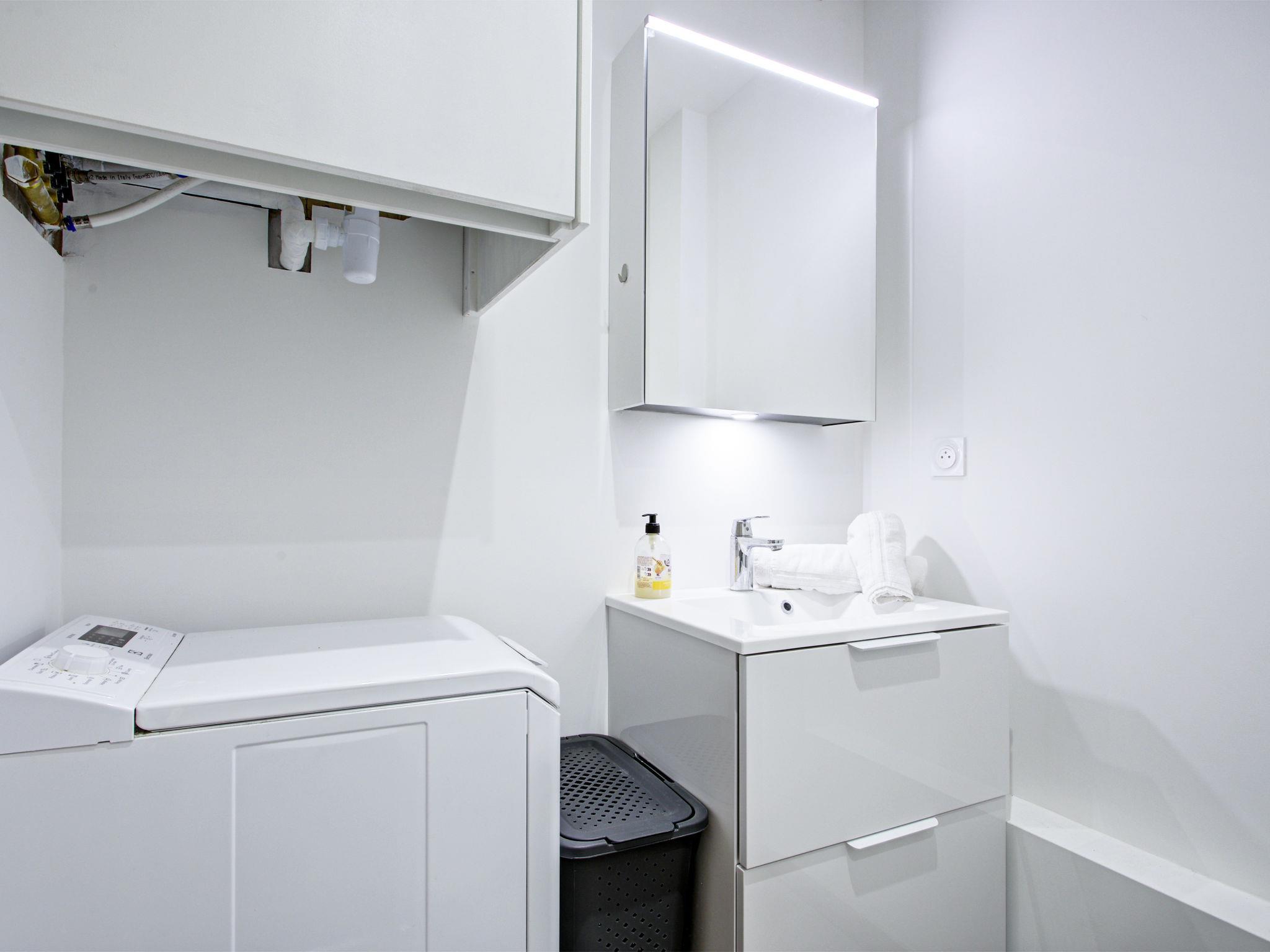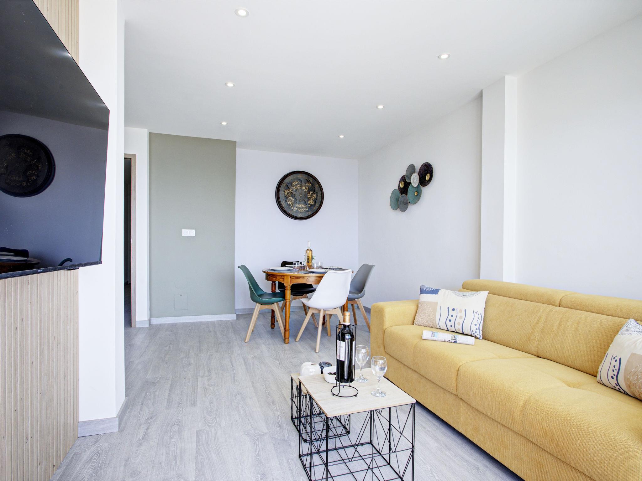 4-room apartment 54 m2 on 4th floor, east facing position. Comfortable furnishings: living/dining room with dining table, TV, flat screen and air conditioning. Exit to the terrace. 1 room with 1 french bed (1 x 140 cm, length 190 cm), air conditioning. 1 room with 2 beds (90 cm, length 190 cm). 1 room with 1 bed (90 cm, length 190 cm). Kitchenette (oven, dishwasher, 4 induction hot plates, toaster, kettle, microwave, electric coffee machine, Capsules for coffee machine (KRUPS) extra). Shower/WC. Terrace 6 m2, east facing position. Very beautiful view of the sea. Facilities: washing machine, dryer, iron, baby cot, hair dryer. Internet (WiFi). Garage (1 car), height 190 cm, width 500 cm. Offer by a commercial proprietor according to Art. 155, IV, CGI