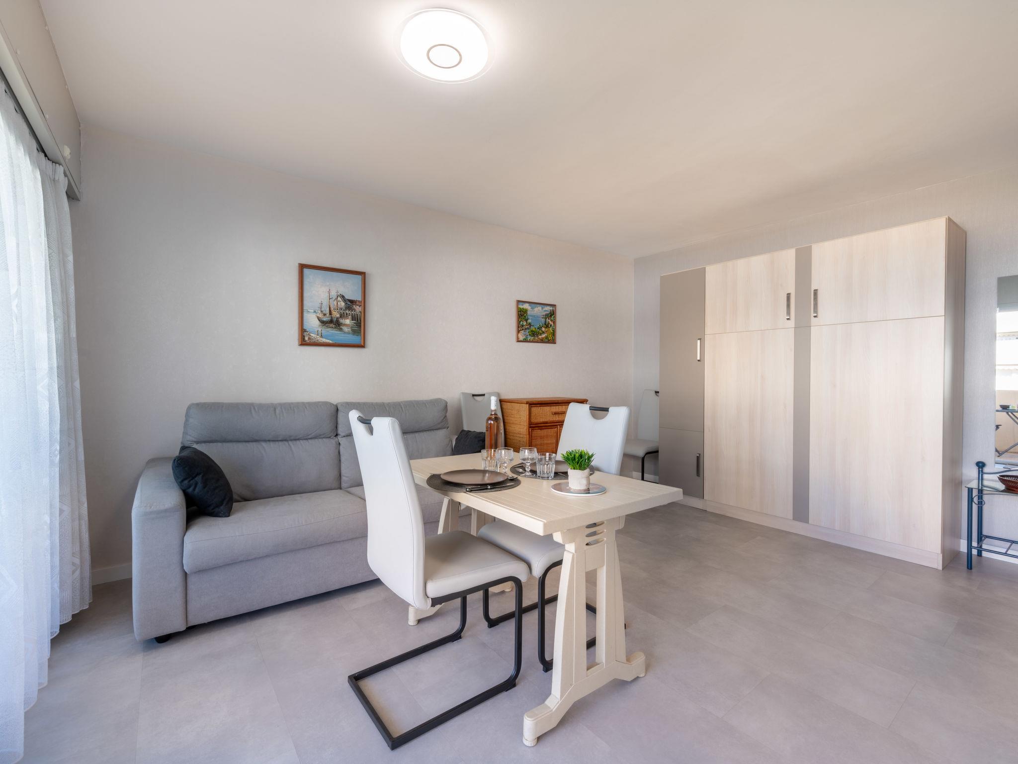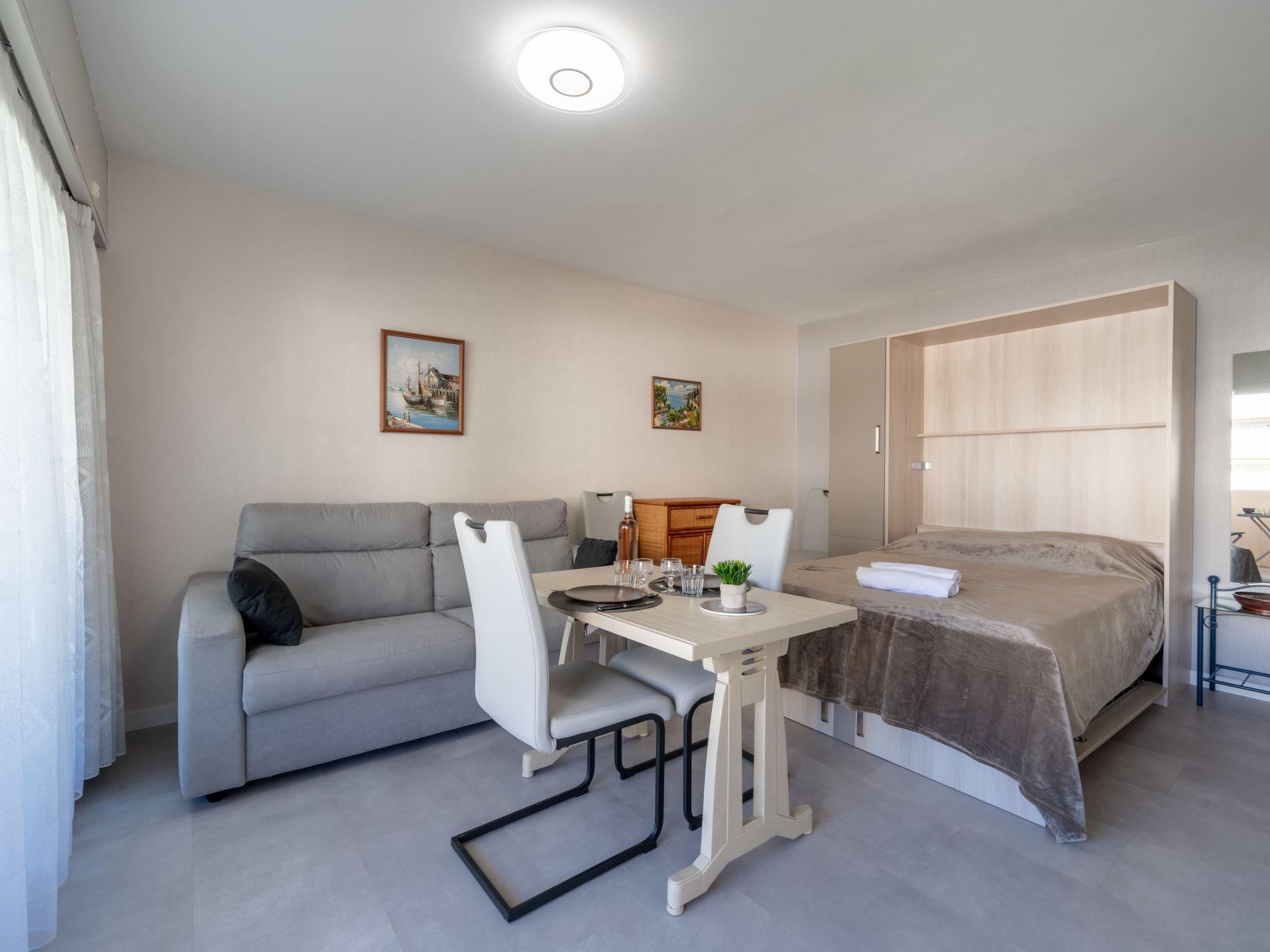 1-room apartment 22 m2 on 2nd floor. Comfortable furnishings: living/dining room with 1 double wall-trunk bed (140 cm, length 190 cm), TV (flat screen), air conditioning. Exit to the terrace. Open kitchen (oven, 4 induction hot plates, toaster, kettle, microwave, freezer, electric coffee machine). Shower/WC. Air-conditioning, forced-air heating. Terrace 8 m2, south facing position. Terrace furniture. Facilities: Internet (WiFi, extra). Please note: non-smokers only. Smoke alarm. Offer by a private individual according to Art. 155, IV of CGI. 06029029203MX