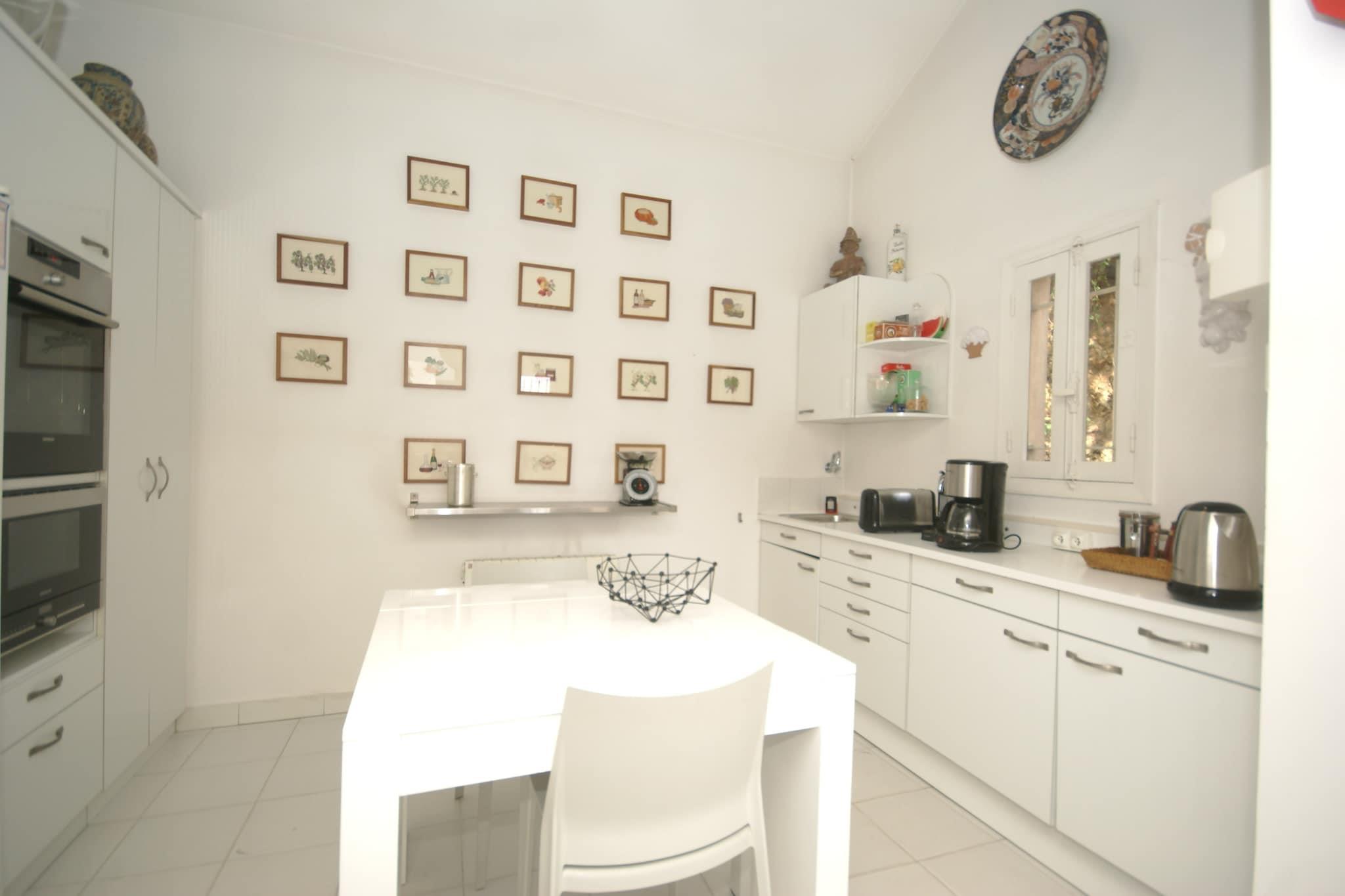 Denne majestetiske villaen i Cannes, som rager grasiøst over en frodig middelhavshage, tilbyr et eksepsjonelt tilfluktssted hvor eleganse, plass og ro blandes uanstrengt. Villaen er designet over fire vakkert planlagte etasjer, og har komfortabel plass til opptil åtte gjester, noe som gjør den ideell for familier eller grupper som søker raffinert komfort ved kysten. Sollys strømmer gjennom store vinduer inn i de romslige stue- og spiseområdene, og skaper en lys og innbydende atmosfære. Det moderne åpne kjøkkenet, fullt utstyrt for enkle familiemåltider eller sosiale middager, åpner direkte ut mot en stor terrasse som er perfekt for lange utendørs lunsjer, aperitiffer i solnedgangen og minneverdige kvelder sammen. Hvert nivå av villaen avslører sin egen følelse av privatliv og ro. Klimatiserte soverom er gjennomtenkt utformet for å oppmuntre til hvile og avslapning, mens flere velutstyrte bad sikrer bekvemmelighet og komfort for alle gjester. Ytterligere funksjoner som et eget TV-rom og et praktisk vaskerom forbedrer villaens enkle, hjemmekoselige følelse, slik at gjestene kan slå seg til ro og virkelig slappe av. Hvert rom er designet for å balansere funksjonalitet med diskré luksus, noe som gjør lengre opphold like hyggelige som korte utflukter. Utendørs skinner villaen virkelig. Anlagte hager rammer inn en spektakulær terrasse på 300 m² og et stort privat svømmebasseng, ideelt for forfriskende svømmeturer, late ettermiddager på solsenger eller avslappede grillkvelder med familie og venner. Beliggenheten er like tiltalende: sandstranden, havet og vannsport ligger bare 300 meter unna, mens butikker og restauranter kan nås innen 500 meter. La Bocca ligger en kort spasertur unna, den berømte Croisetten ligger bare 2,5 km fra villaen, og Nice lufthavn ligger beleilig til rundt 35 km unna.