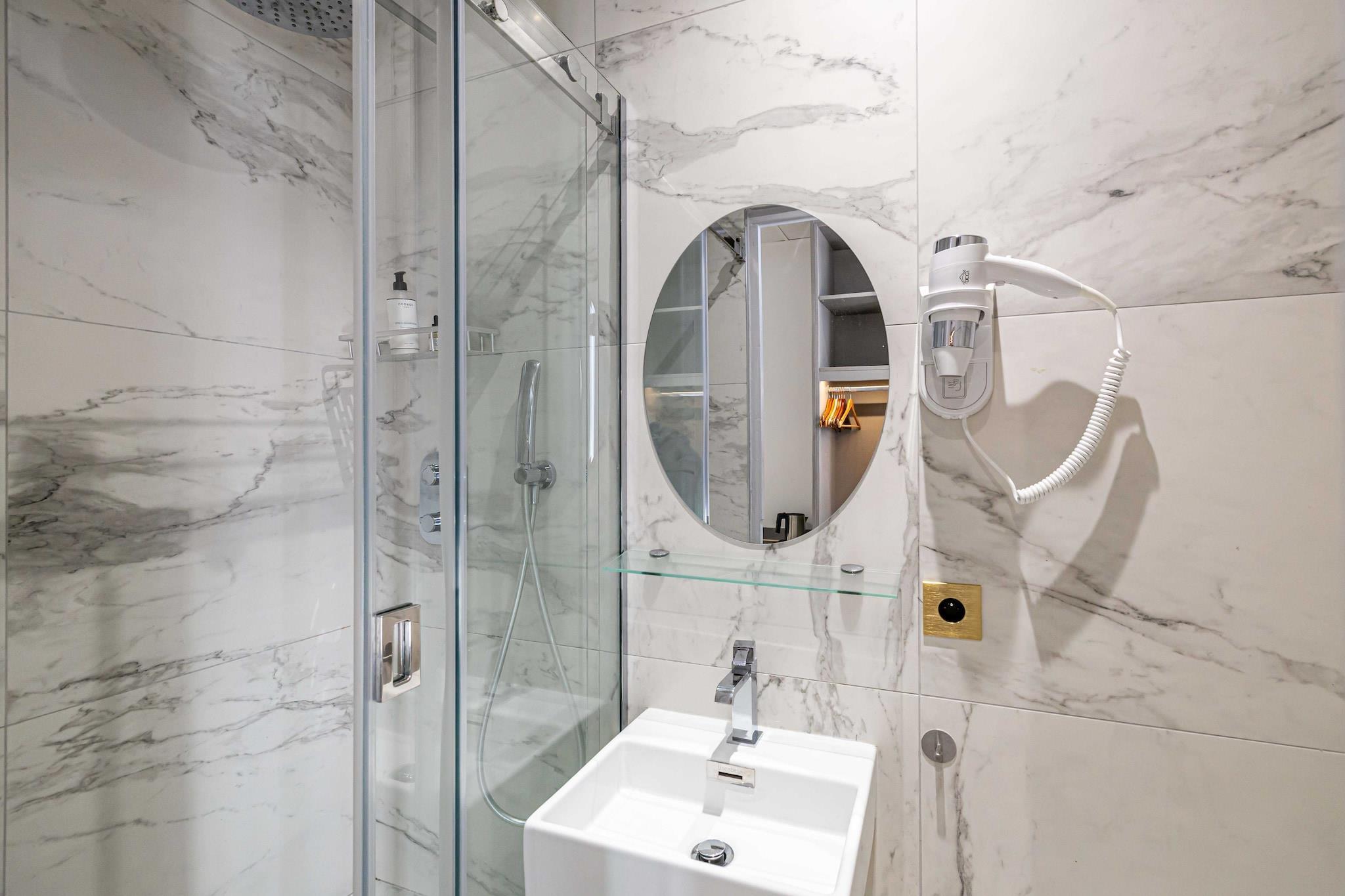On the 2nd floor: (bedroom(double bed), bathroom(Hot Water)) Bed Linen, Internet Access DSL, Wardrobe, First Aid, Play area, TV, electric kettle, coffee machine, cot, heating, air conditioning, hairdryer, Towels/Sheets (Incl.), shampoo, Essentials, Carbon monoxide detector, Cleaning Disinfection, Downtown, Enhanced cleaning practices, High touch surfaces disinfected, Near Ocean, Town, Village