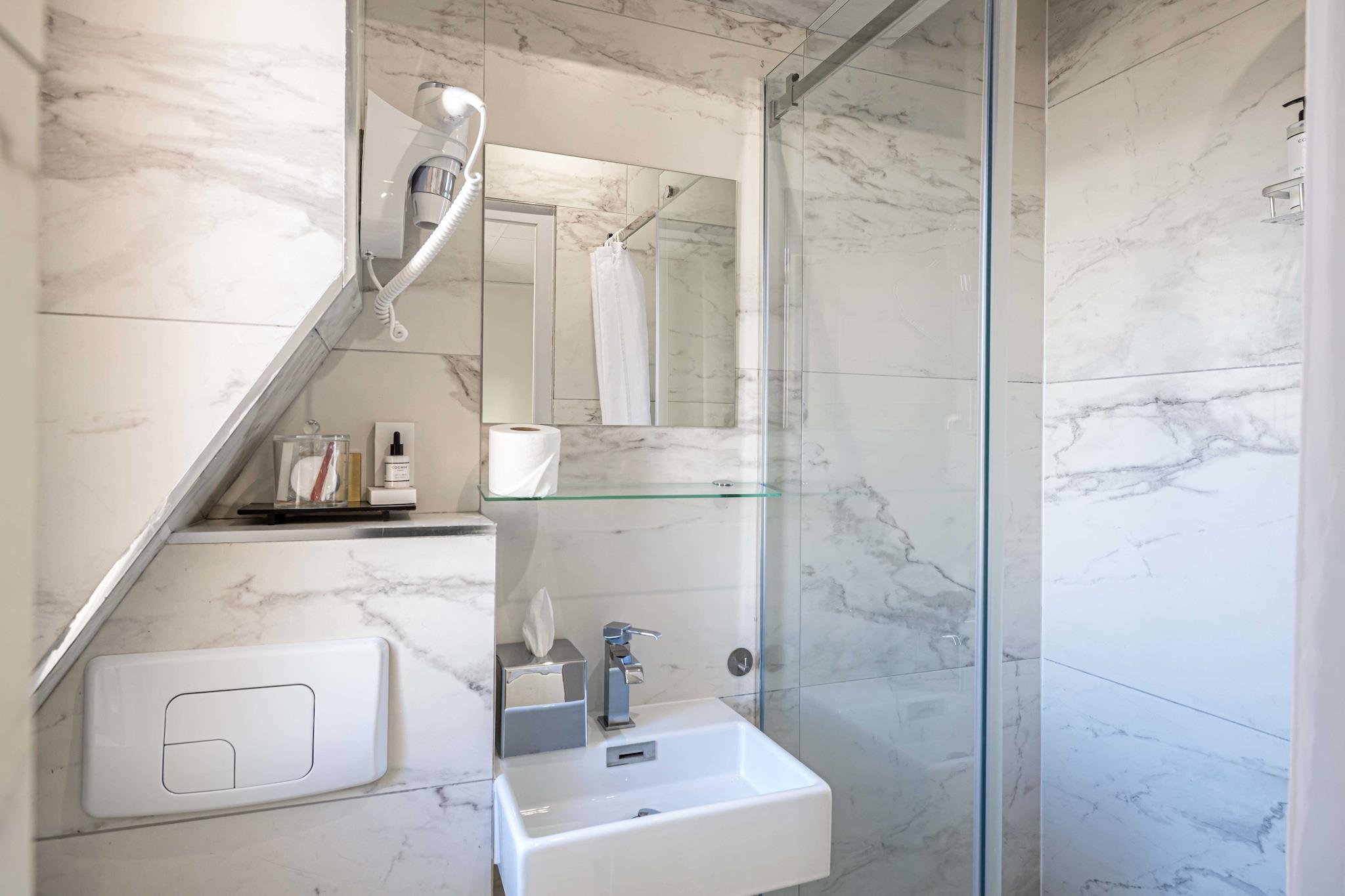 On the 2nd floor: (Kitchen(electric kettle, coffee machine), Living/bed room(single bed, TV, air conditioning), bathroom(toilet, hairdryer, shampoo)) Bed Linen, Hot Water, Internet Access DSL, Wardrobe, First Aid, Play area, cot, heating, Towels/Sheets (Incl.), Essentials, Carbon monoxide detector, Cleaning Disinfection, Downtown, Enhanced cleaning practices, High touch surfaces disinfected, Near Ocean