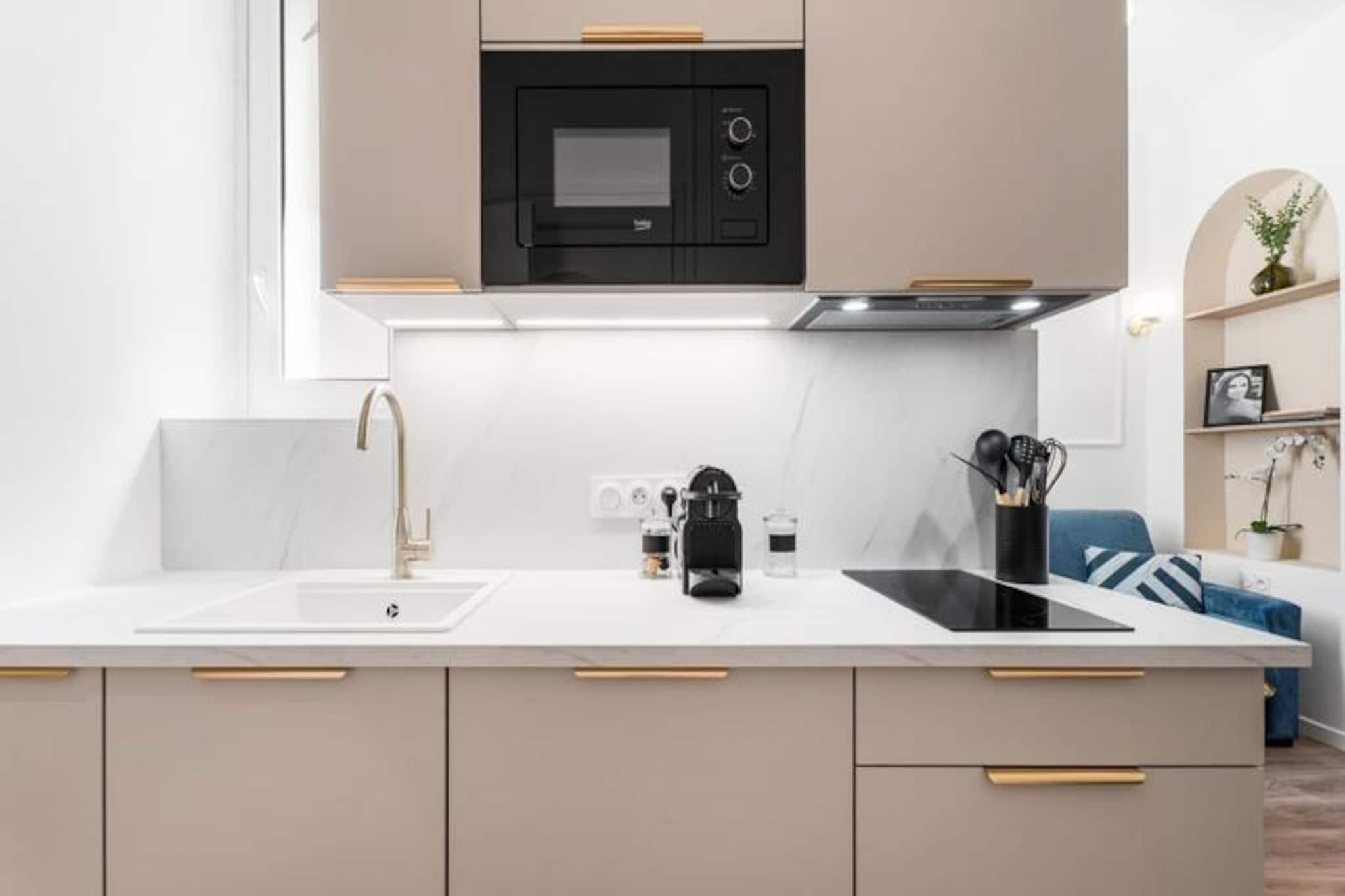 Stig inn i en verden av eleganse og sjarm med dette herlige studioleilighetskomplekset som ligger i hjertet av Cannes, et av de mest ettertraktede reisemålene på den franske rivieraen. Perfekt for en soloferie eller en romantisk flukt, tilbyr dette koselige tilfluktsstedet en rolig oase midt i byens pulserende energi. Enten du utforsker den ikoniske Croisetten eller nyter middelhavsbrisen ved havet, er dette studioleilighetskomplekset det ideelle utgangspunktet for eventyret ditt. Leiligheten er designet av en interiørarkitekt og blander moderne komfort med tidløs raffinement, noe som sikrer et minneverdig opphold. \n\nDette studioleilighetskomplekset er på 18 m² og har klimaanlegg, og er omhyggelig utstyrt for å imøtekomme alle dine behov. Stuen har en komfortabel sovesofa (160x200) og en spiseplass, noe som skaper et varmt og innbydende sted å slappe av. Kjøkkenet er fullt utstyrt med nødvendigheter som kaffetrakter, vannkoker, mikrobølgeovn, komfyrtopp og kjøleskap, noe som gjør det enkelt å tilberede måltider når det passer deg. Badet har dusj og toalett, supplert av praktiske fasiliteter som støvsuger, hårføner og strykejern. Hold deg tilkoblet med Wi-Fi og nyt underholdning på TV-en, alt mens du soler deg i den fredelige atmosfæren i leiligheten med utsikt over gårdsplassen.\n\nDenne studioleiligheten ligger bare noen minutter fra Cannes togstasjon og stranden, og kan skilte med enestående tilgang til byens høydepunkter. Unn deg utsøkt provençalsk og middelhavsmat på nærliggende restauranter som La Cantine Provençale og Mademoiselle Gray Plage Barrière, eller slapp av på sjarmerende kafeer som Copenhagen Coffee Lab. Kulturentusiaster vil sette pris på nærheten til Musée des Explorations du Monde, mens avslappende spaserturer langs Croisetten byr på fantastisk utsikt og uforglemmelige øyeblikk.\n\nEnten du er her for å fordype deg i Cannes' glamorøse livsstil eller bare slappe av i rolige omgivelser, lover denne studioleiligheten en eksepsjonell opplevelse. La den franske rivieraen fengsle sansene dine og skape minner som vil vare livet ut.