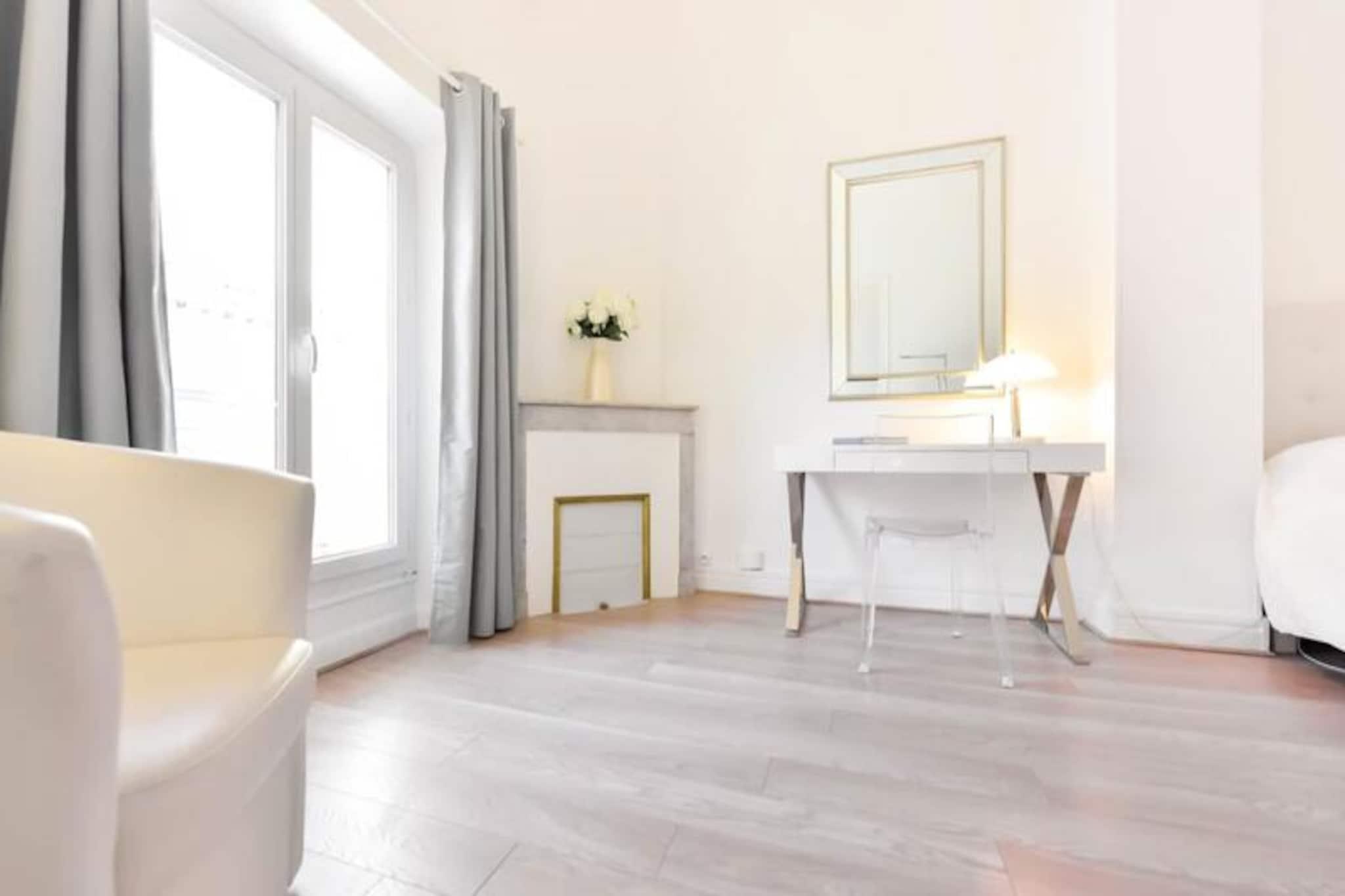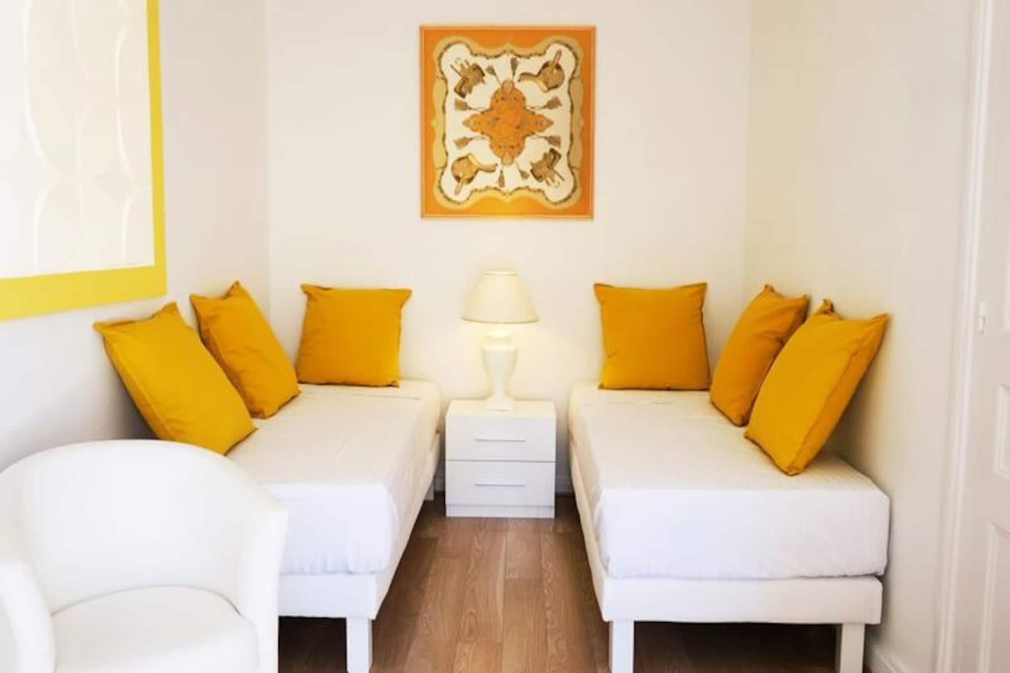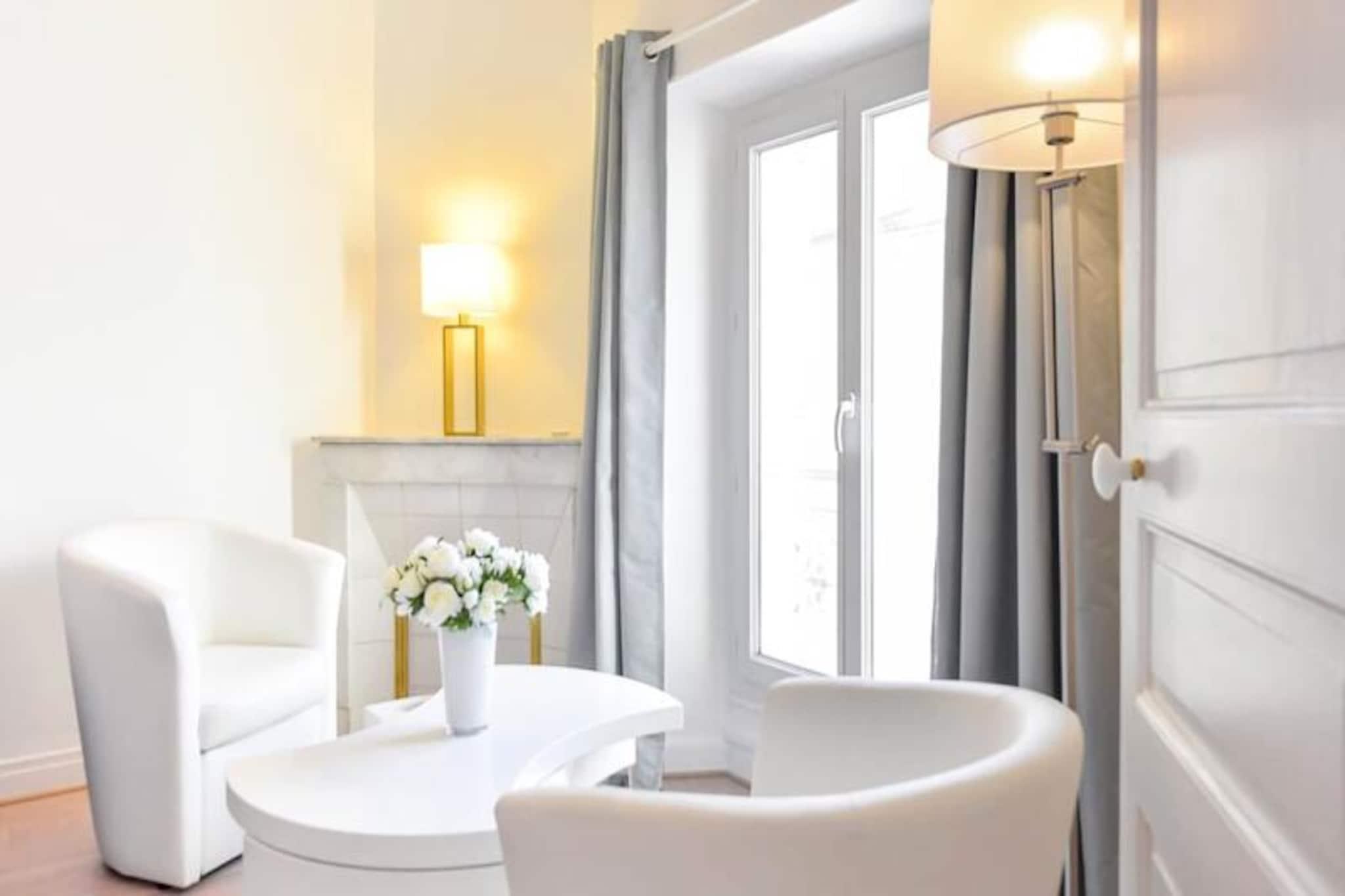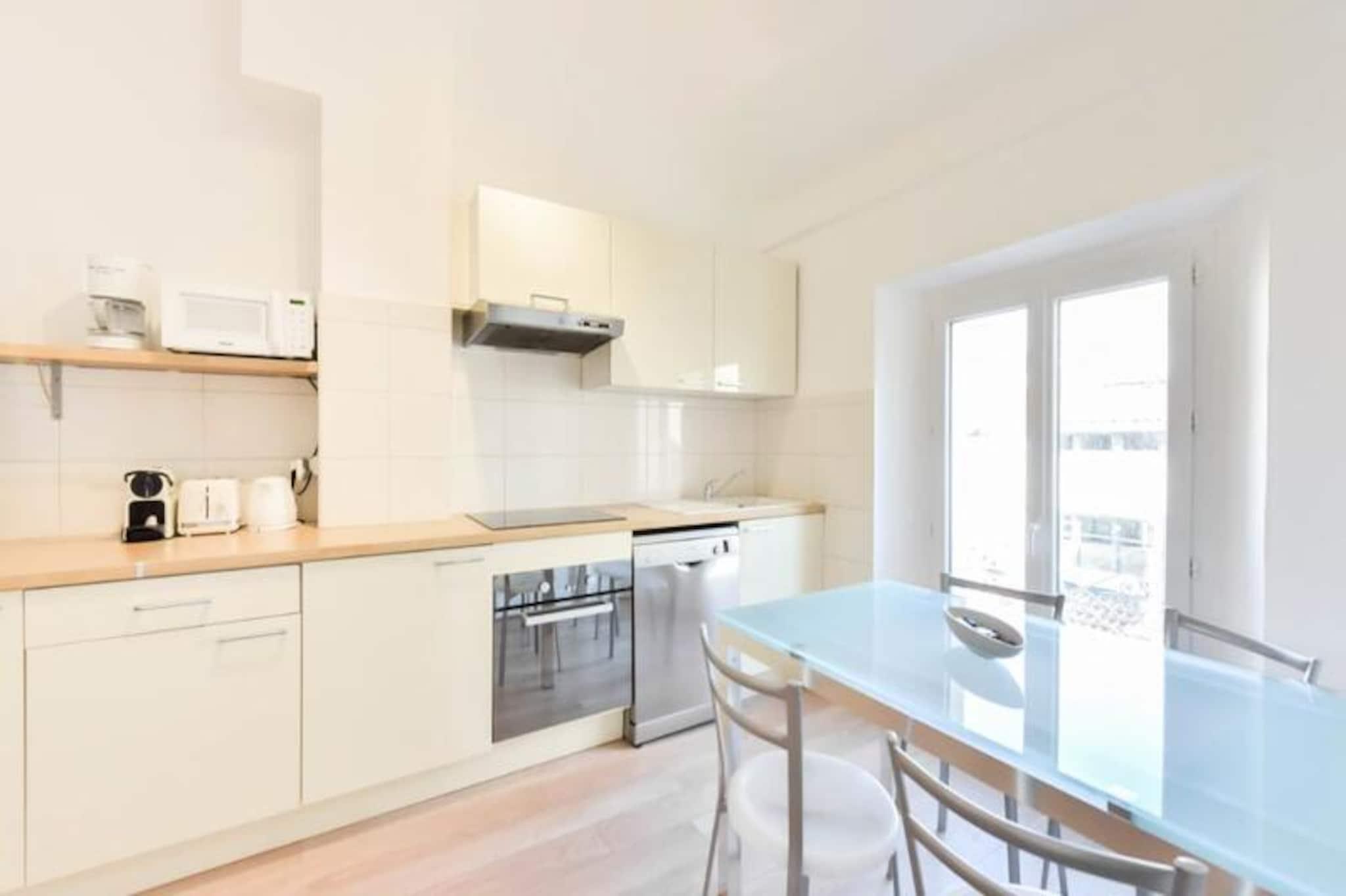I hjertet av Cannes' gylne plass tilbyr denne elegante toromsleiligheten på Rue du Commandant André en blanding av eleganse og bekvemmelighet, perfekt for et minneverdig opphold på den franske rivieraen. Bare noen skritt fra det glitrende Middelhavet, den travle Croisetten og den fasjonable Rue d'Antibes, plasserer denne eiendommen deg blant byens fineste attraksjoner. Enten du er her for et glamorøst arrangement på Palais des Festivals eller en avslappende ferie ved sjøen, sikrer denne beliggenheten at du alltid er i sentrum av begivenhetene. Leiligheten strekker seg over hele 70 m² og er gjennomtenkt designet for å innkvartere opptil fem gjester. Stuen, med komfortabel stue, flatskjerm-TV og sovesofa, gir et innbydende sted å slappe av. Hovedsoverommet har en myk queen-size-seng og egen TV, mens det andre soverommet har to koselige enkeltsenger. Et fullt utstyrt, romslig kjøkken med spiseplass for fem inviterer deg til å nyte hjemmelagde måltider, og det reversible klimaanlegget sikrer komfort året rundt. Vær oppmerksom på at bygningen ikke har heis, og leiligheten ligger i tredje og øverste etasje, og tilbyr et fredelig tilfluktssted over de livlige gatene nedenfor. Gå ut, og du vil finne deg selv omgitt av Cannes' pulserende energi. Spaser langs den ikoniske Croisetten, handle i eksklusive butikker på Rue d'Antibes, eller nyt et måltid på en av de trendy restaurantene rett utenfor døren. Palais des Festivals ligger bare en fem minutters spasertur unna, mens den nærliggende togstasjonen gjør det enkelt å utforske den franske rivieraen. Med gratis gateparkering og en rekke gjennomtenkte fasiliteter, inkludert høyhastighets Wi-Fi, sengetøy og concierge-tjenester, er denne leiligheten den ideelle basen for ditt riviera-eventyr. Opplev sjarmen og sofistikasjonen til Cannes fra denne eksepsjonelle eiendommen.