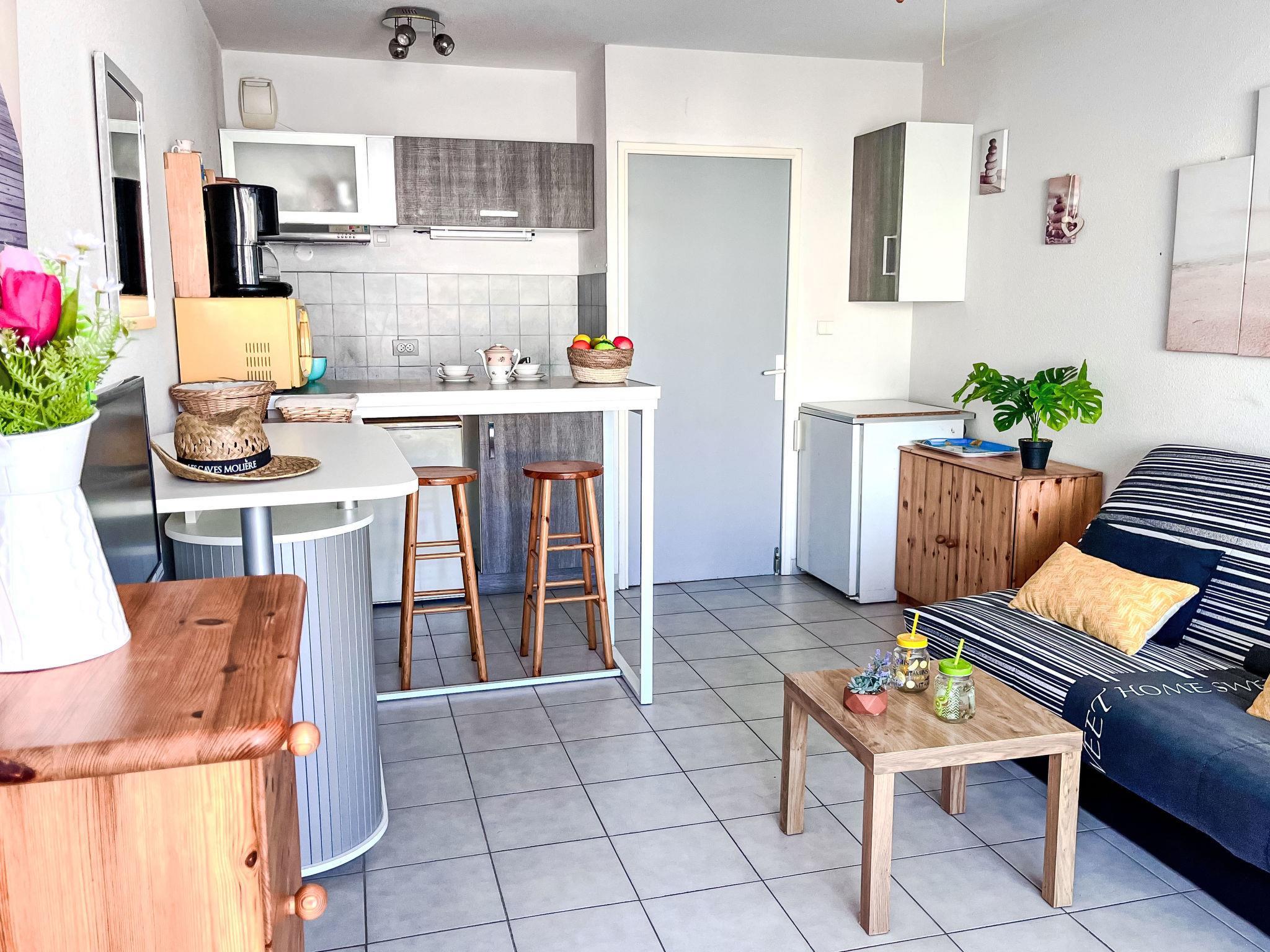 Residence "Le Sunset/Cap Sud". In the district of Rochelongue, 100 m from the sea, 100 m from the beach. For shared use: garden (fenced), swimming pool (12 x 6 m, depth 40 - 175 cm, seasonal availability: 01.May. - 30.Sep.). Children's playground. In the complex: lift. Public parking 50 m on the road. Shop, grocery, restaurant 350 m, bakery 110 m, bus stop "Mail de Rochelongue" 280 m, sandy beach "Rochelongue" 230 m. Sports harbour 3 km, golf course (27 hole) 1.5 km, tennis 3 km, riding stable 1.4 km. Nearby attractions: Aqualand 1.7 km, Ile des Loisirs 1.9 km, Musée de l'Ephèbe 3 km, Casino 2.5 km, Luna Park 2.4 km, Accrobranche 4.7 km.