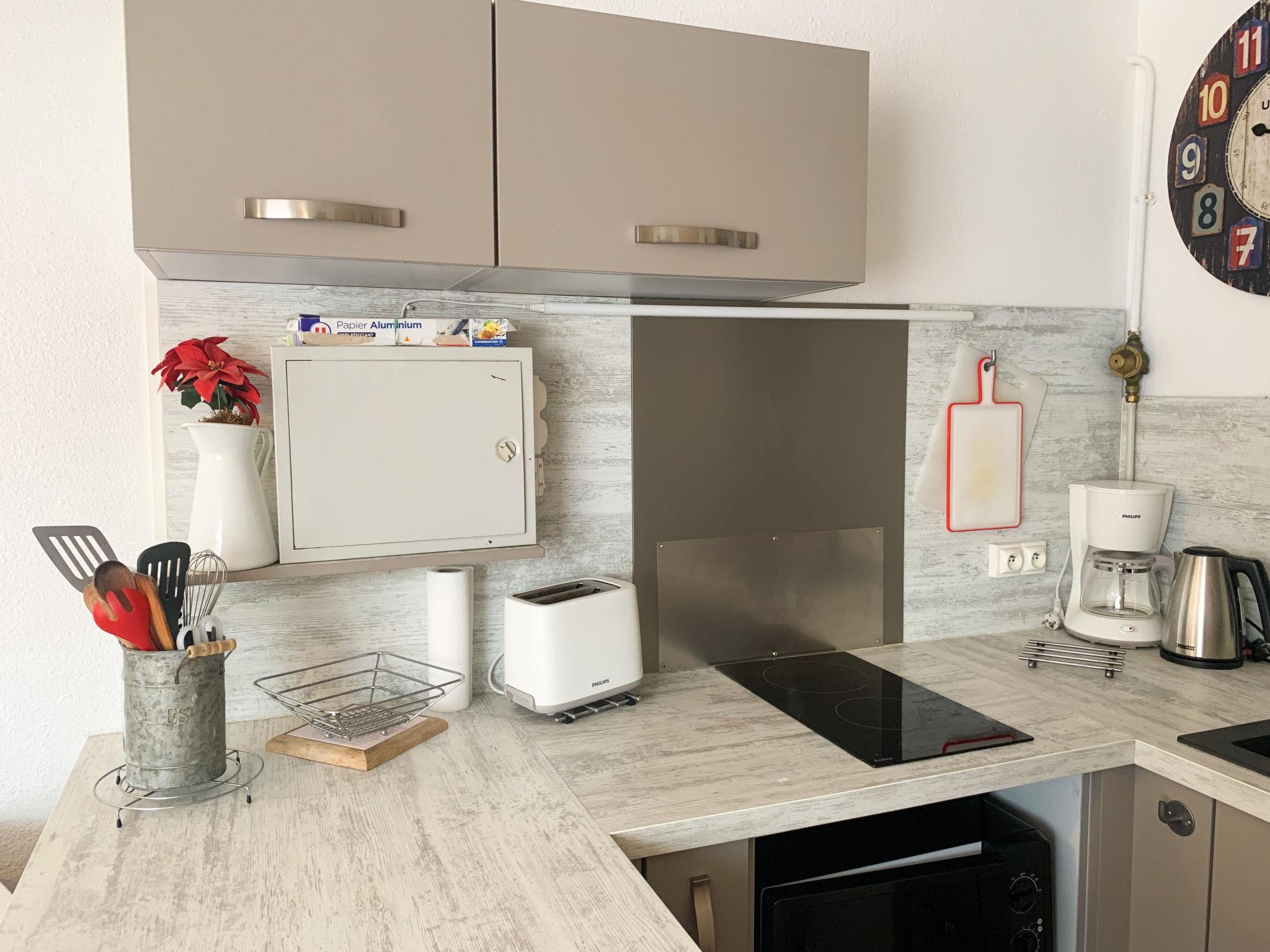 2-room apartment 32 m2, on the ground floor, east facing position. Living/dining room with 1 double sofabed (140 cm, length 190 cm). Exit to the terrace. 1 room with 2 beds (80 cm, length 190 cm). Exit to the terrace. Kitchenette (2 hot plates, oven, microwave, electric coffee machine) with TV. Shower/WC. Electric heating. Terrace 14 m2. Terrace furniture. Facilities: iron. Internet (WiFi, extra). Parking space n 1202. Please note: maximum 1 pet/ dog allowed. Smoke alarm.