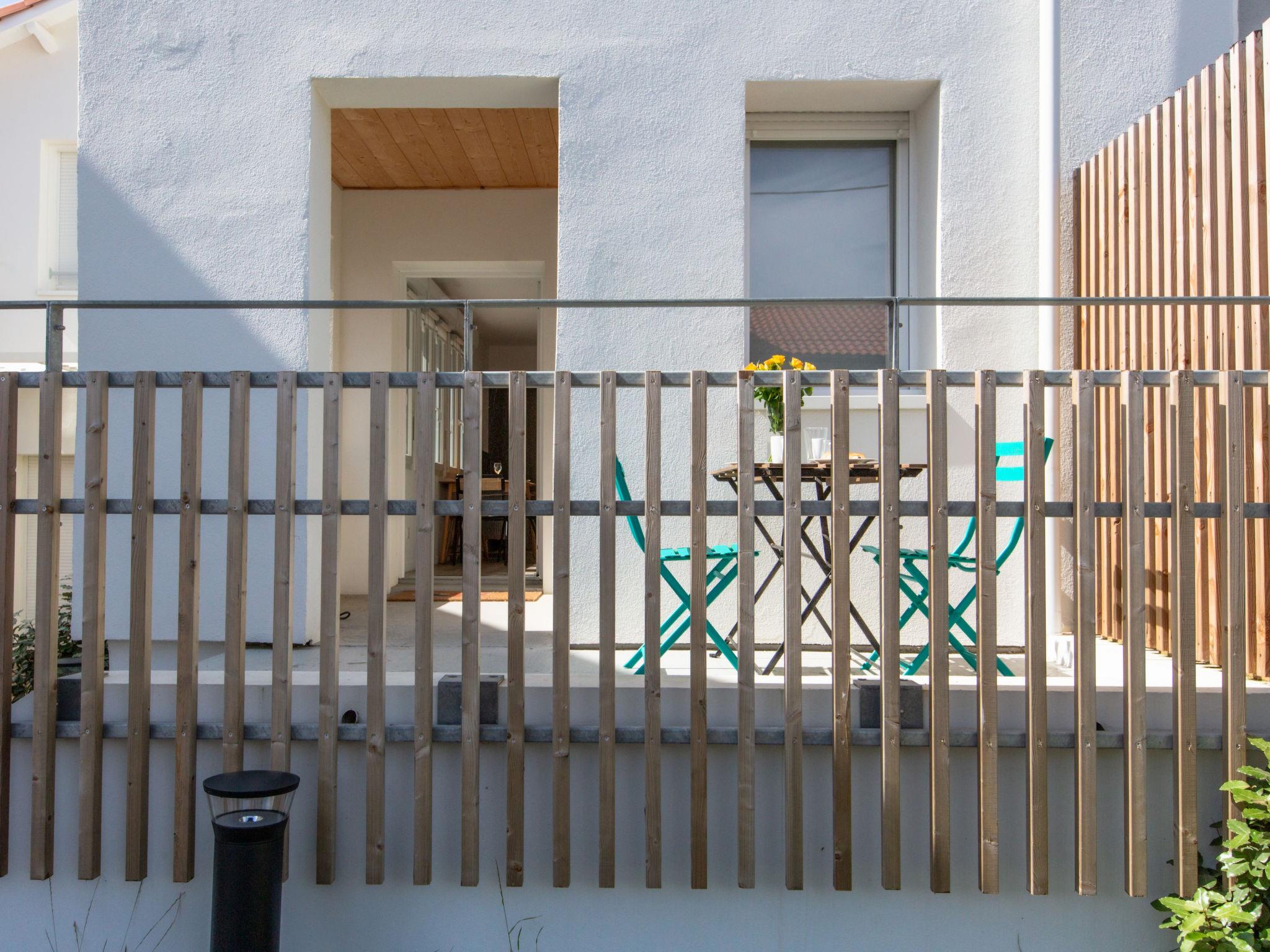 Capbreton: Apartment block "Cap Océan", 2 storeys, built in 2023. 17 apartments in the residence. In the resort, 150 m from the sea, 150 m from the beach. In the complex: washing machine, tumble dryer (for shared use). Public parking on the road. Shop 300 m, grocery 150 m, supermarket 1.8 km, restaurant 50 m, bakery 150 m, bicycle rental 100 m, bus stop "Capbreton Estacade" 300 m, sandy beach "Du Prévent" 150 m. Golf course (18 hole) 4 km, surf school 150 m, tennis 3 km, minigolf 200 m, riding stable 1 km. Nearby attractions: Seignosse 15 km, Bayonne 22 km, Dax 37 km, Biarritz 37 km. Well-known lakes can easily be reached: Réserve Naturelle des Marais d’Orx, Réserve Naturelle du courant d’Huchet.