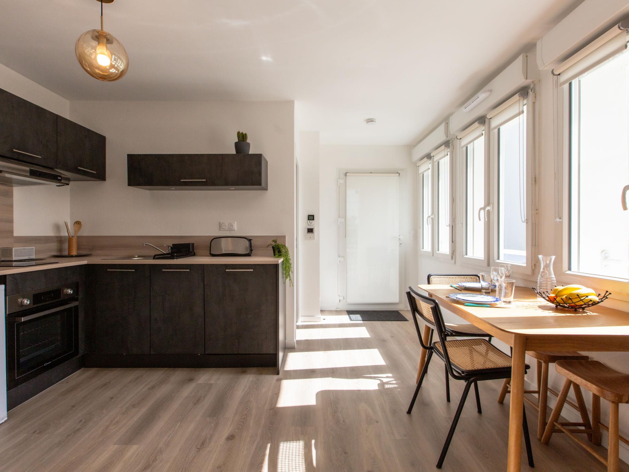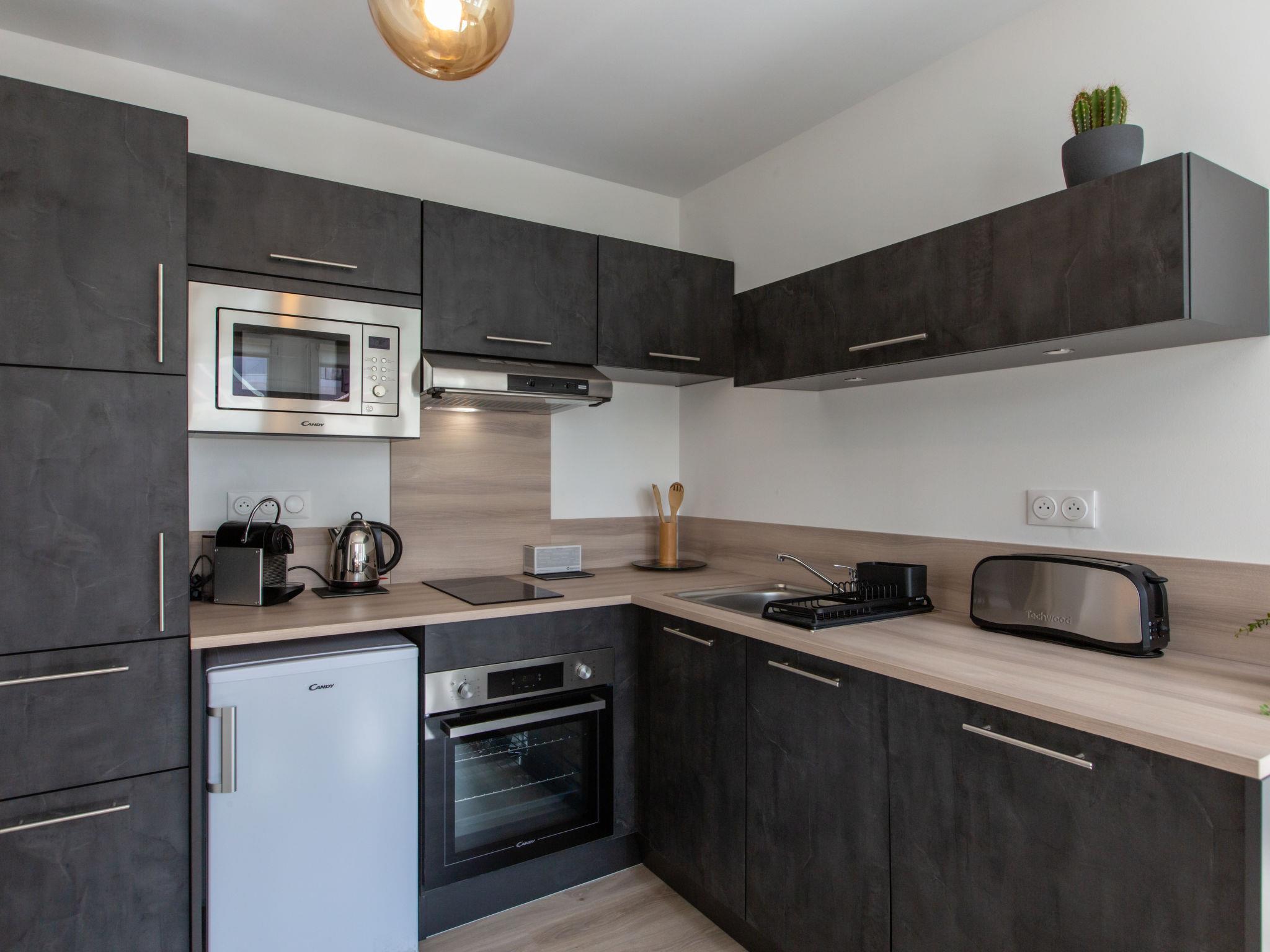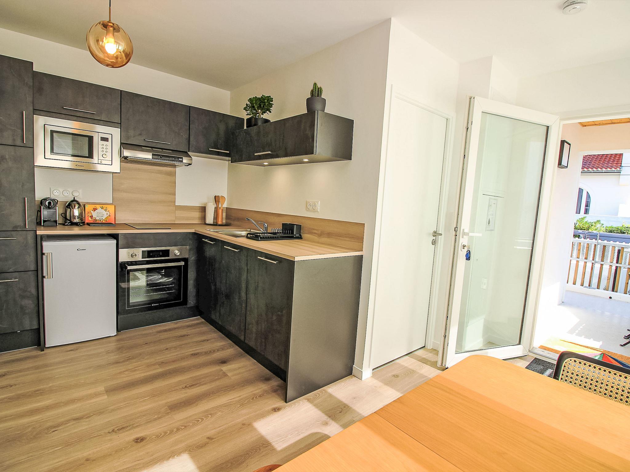 2-room apartment 32 m2, on the upper ground floor. Modern and cosy furnishings: living/dining room with TV (flat screen). Exit to the terrace. 1 room with 1 french bed (140 cm, length 190 cm). Open kitchen (oven, dishwasher, 2 induction hot plates, toaster, kettle, microwave, electric coffee machine). Shower/WC. Electric heating. Terrace 4 m2, roofed. Terrace furniture. Facilities: washing machine, hair dryer. Internet (WiFi, free). Please note: non-smokers only. Offer by a private individual according to Art. 155, IV of CGI. 40065001446PM