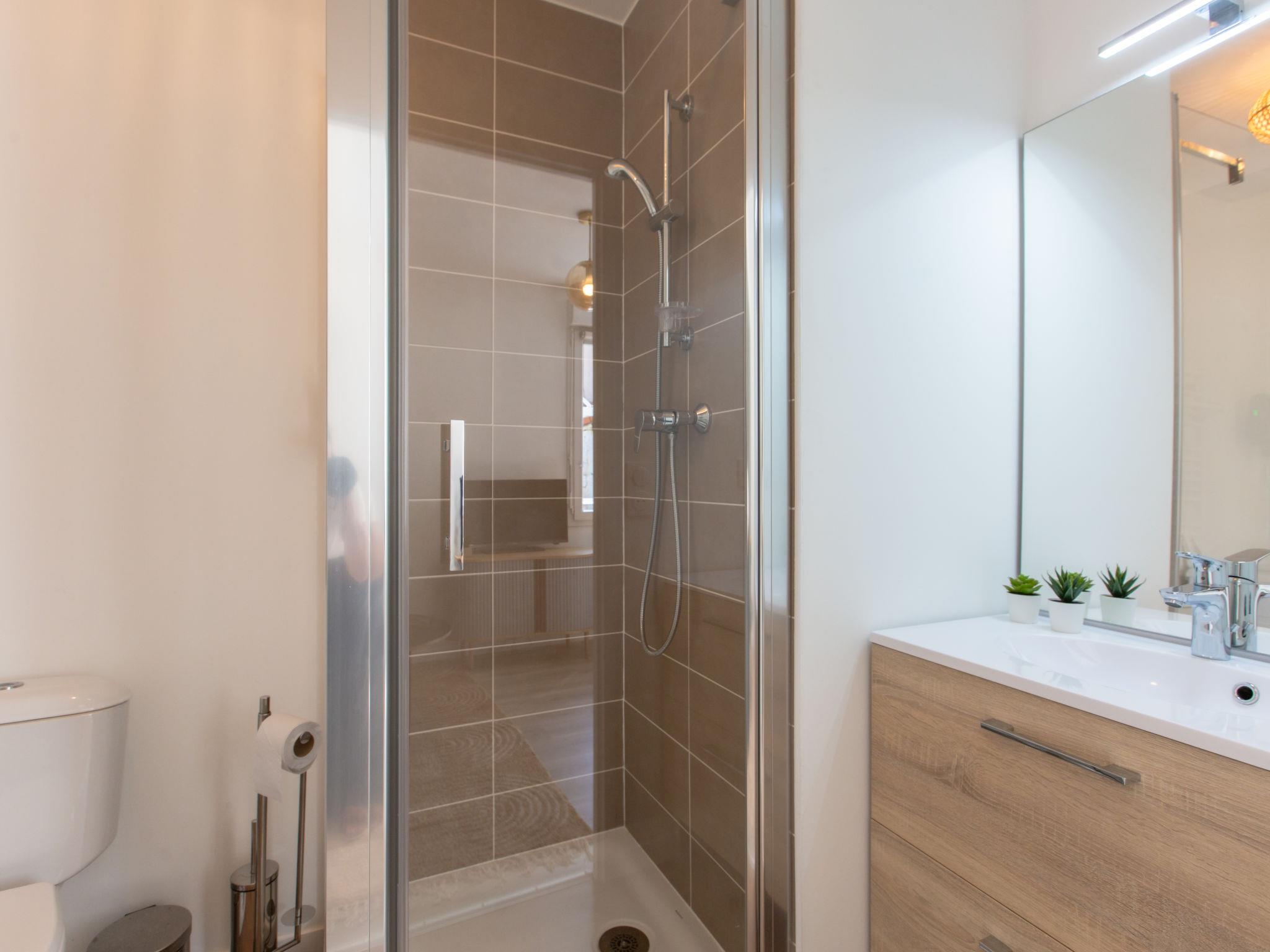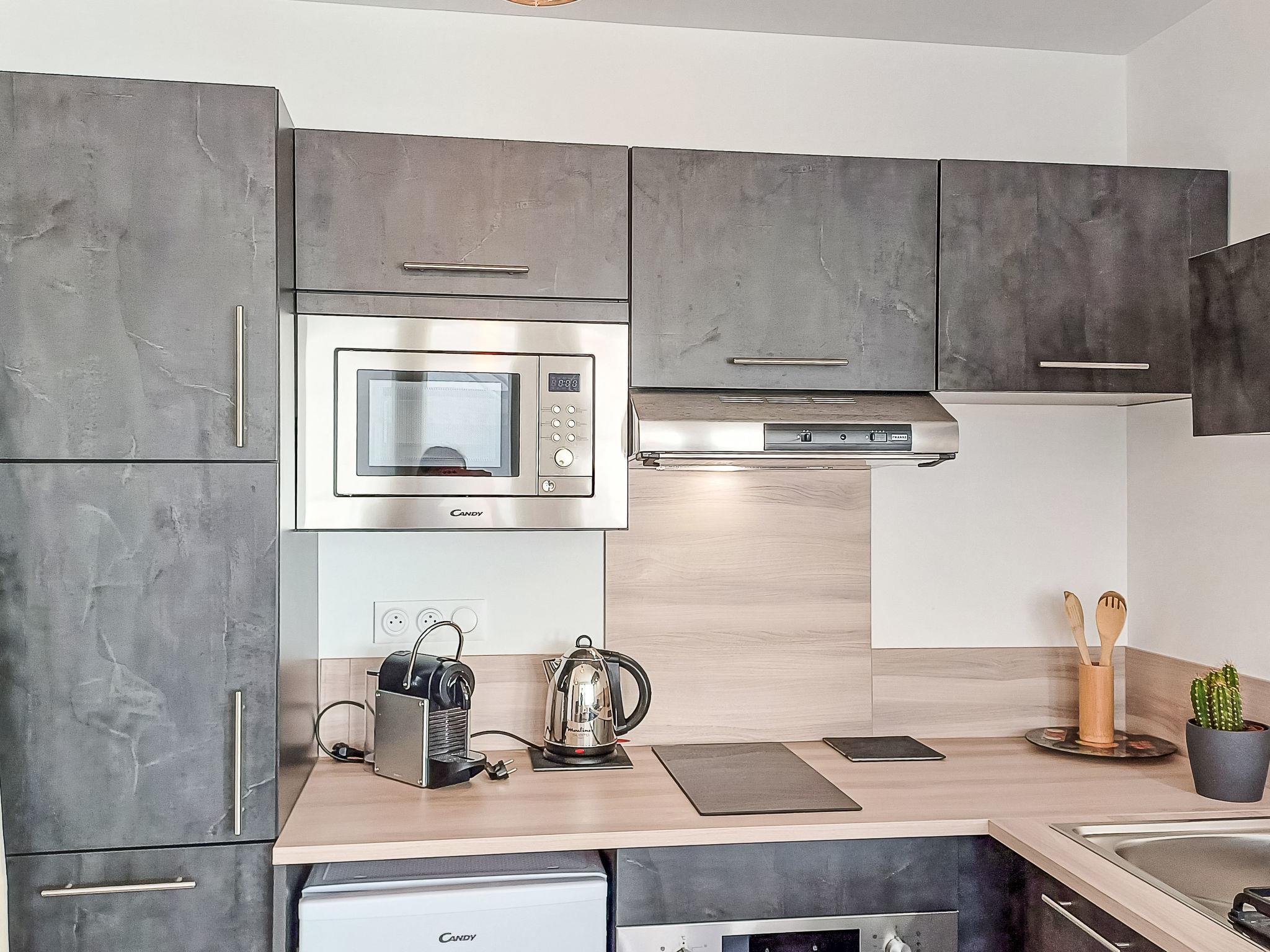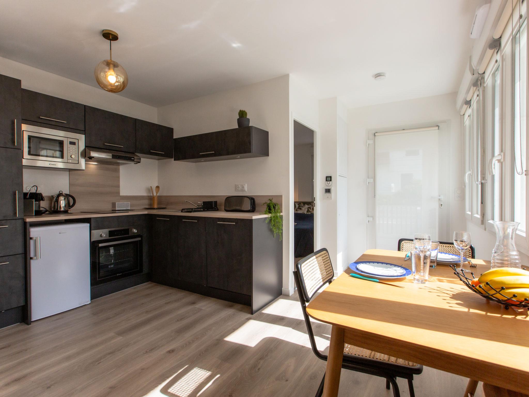2-room apartment 32 m2, on the upper ground floor. Modern and cosy furnishings: living/dining room with TV (flat screen). Exit to the terrace. 1 room with 1 french bed (140 cm, length 190 cm). Open kitchen (oven, dishwasher, 2 induction hot plates, toaster, kettle, microwave, electric coffee machine). Shower/WC. Electric heating. Terrace 4 m2, roofed. Terrace furniture. Facilities: washing machine, hair dryer. Internet (WiFi, free). Please note: non-smokers only. Offer by a private individual according to Art. 155, IV of CGI. 40065001446PM